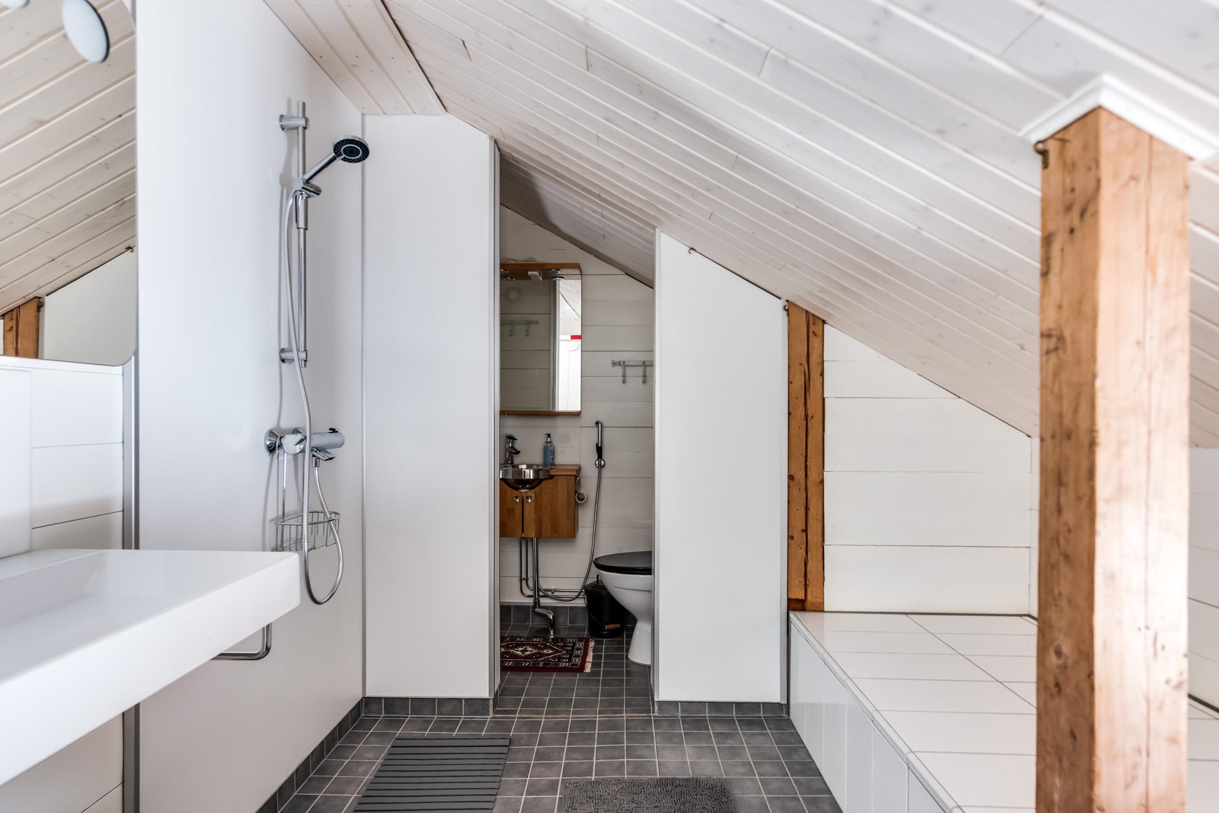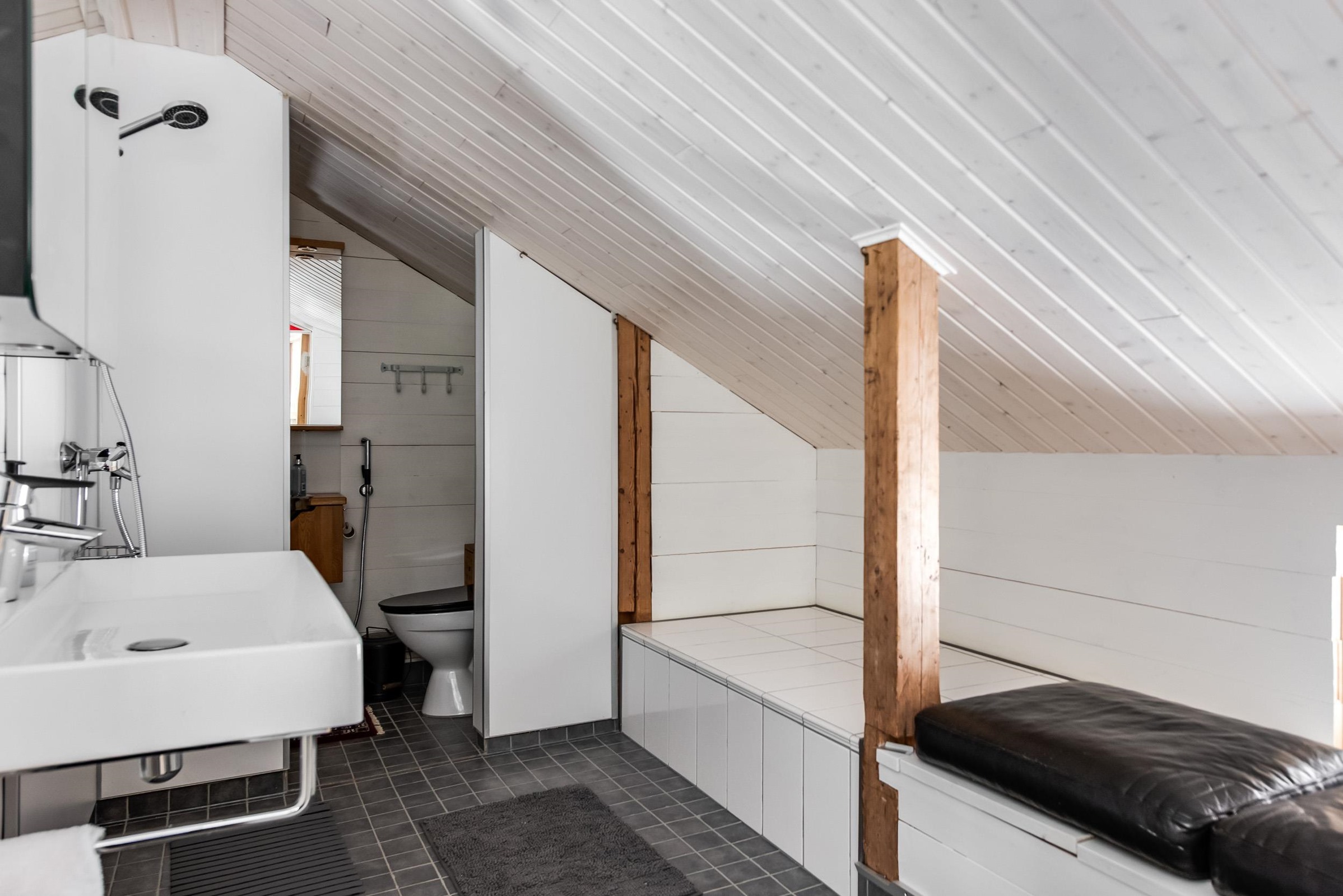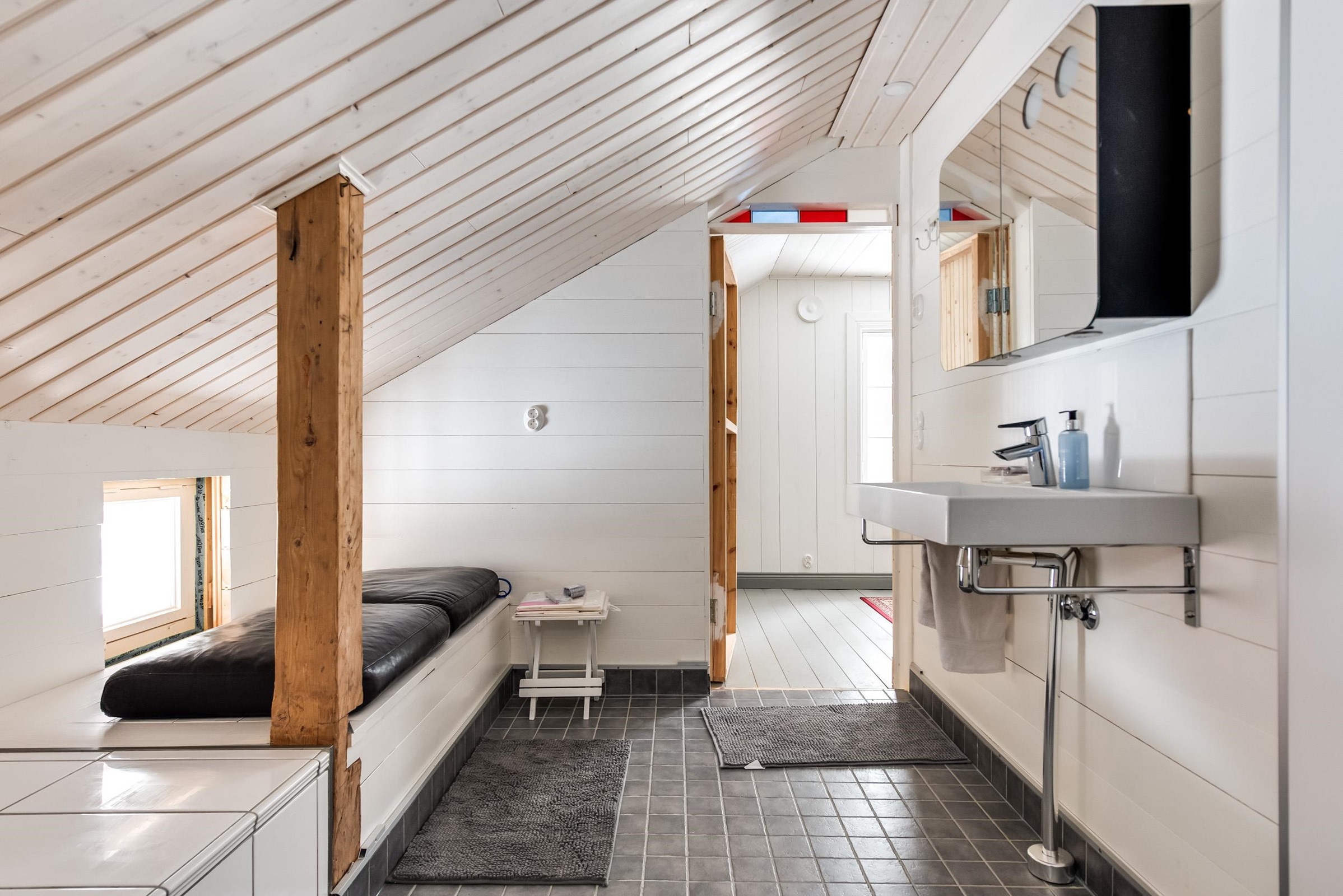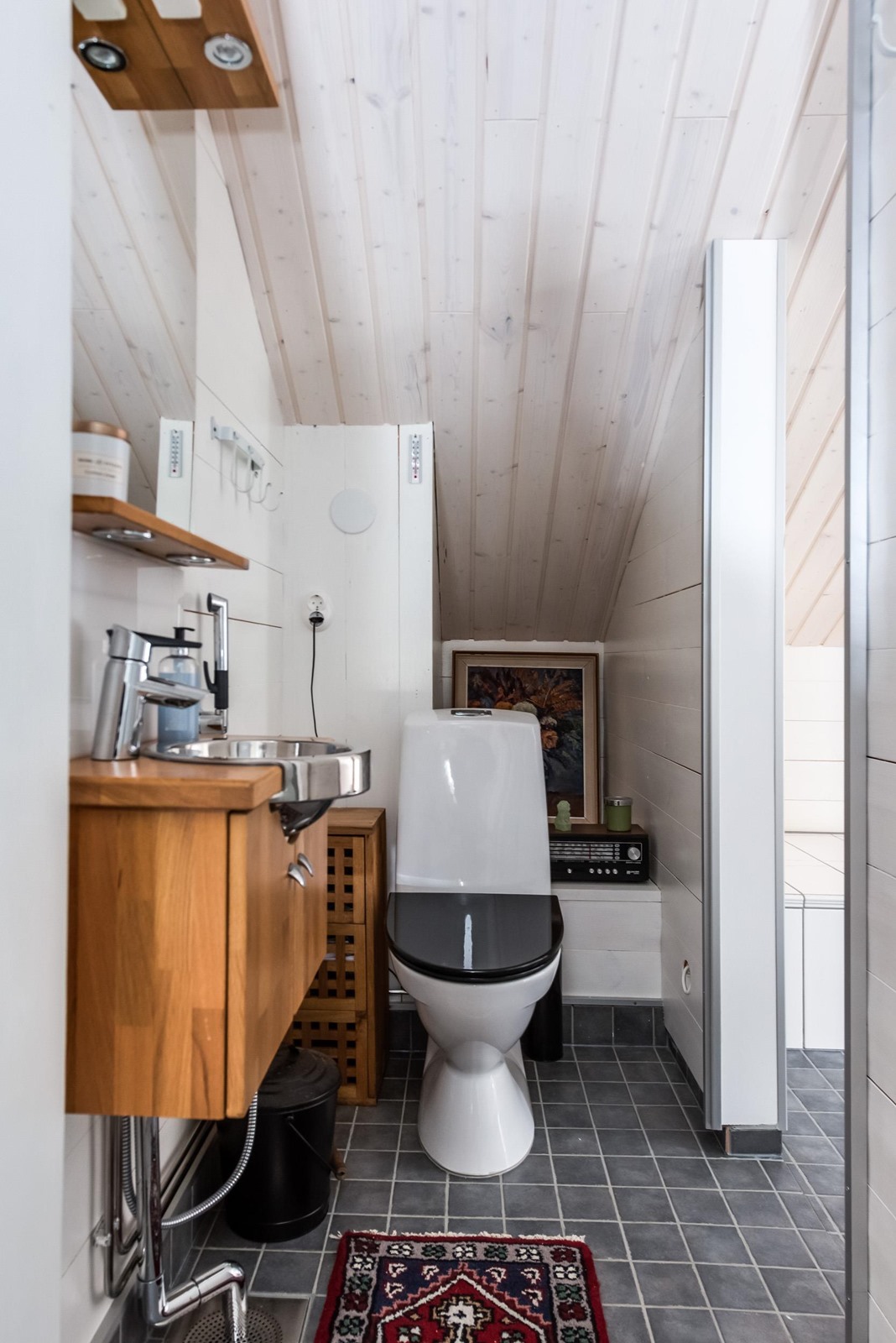 - Sauna, sähkökiuas, kylpyhuone, erillinen wc, peilit, kaapit, allaskaappi, pesukoneliitäntä, lattialämmitys (saunassa, pukuhuoneessa ja wc:ssä).