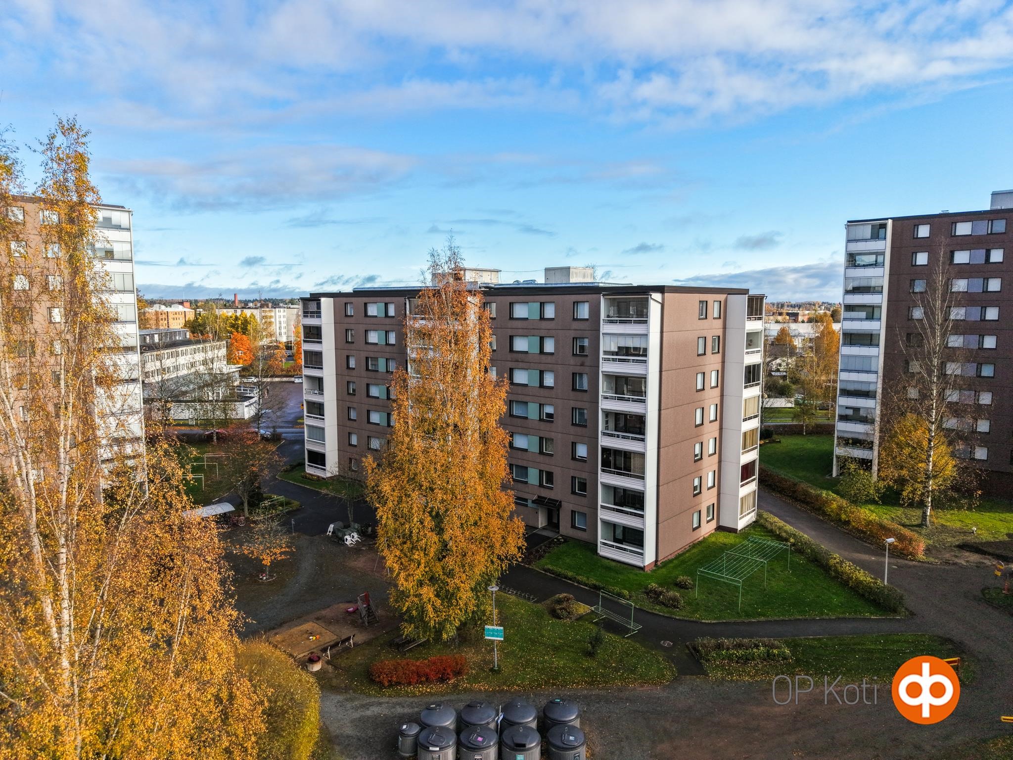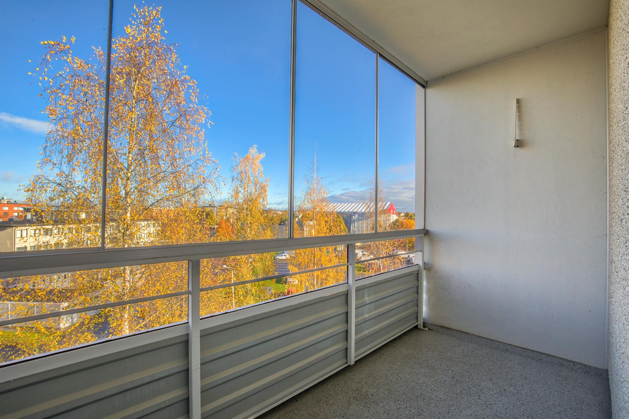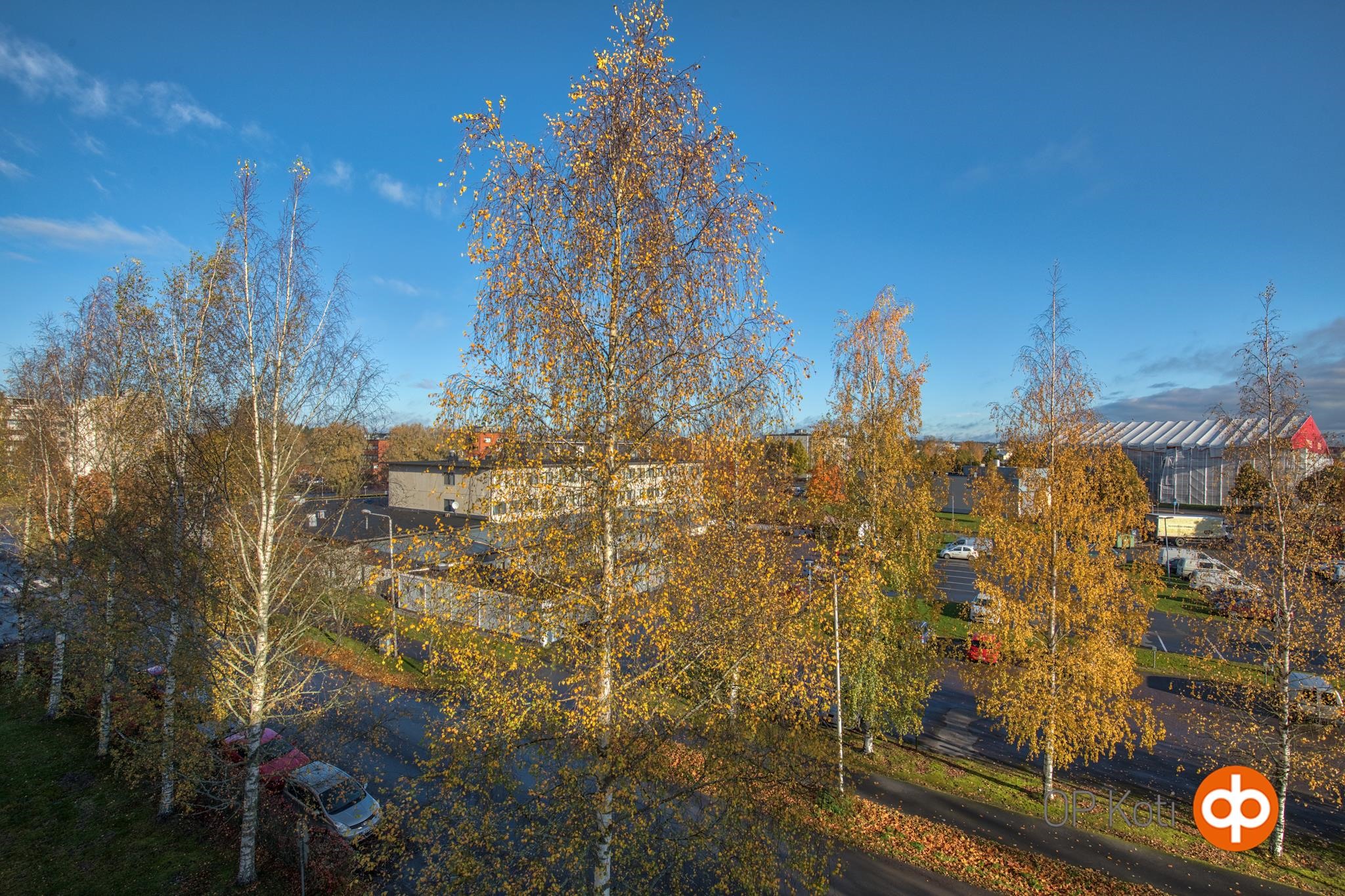 Asunto on viidennessä kerroksessa, joten lasitetulta parvekkeelta avautuvat hyvät, avarat maisemat pitkälle horisonttiin. Kylpyhuone on remontoitu nykyaikaiseksi vuonna 2015. Muilta osin asunto on lähes alkuperäisessä asussaan, mutta todella siisti.