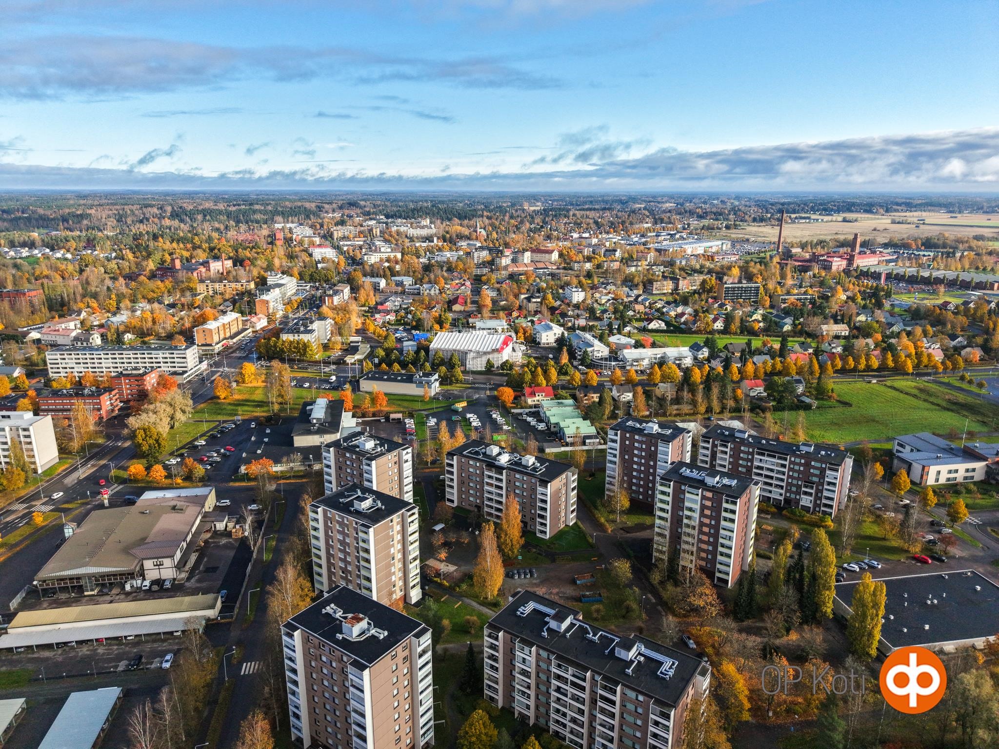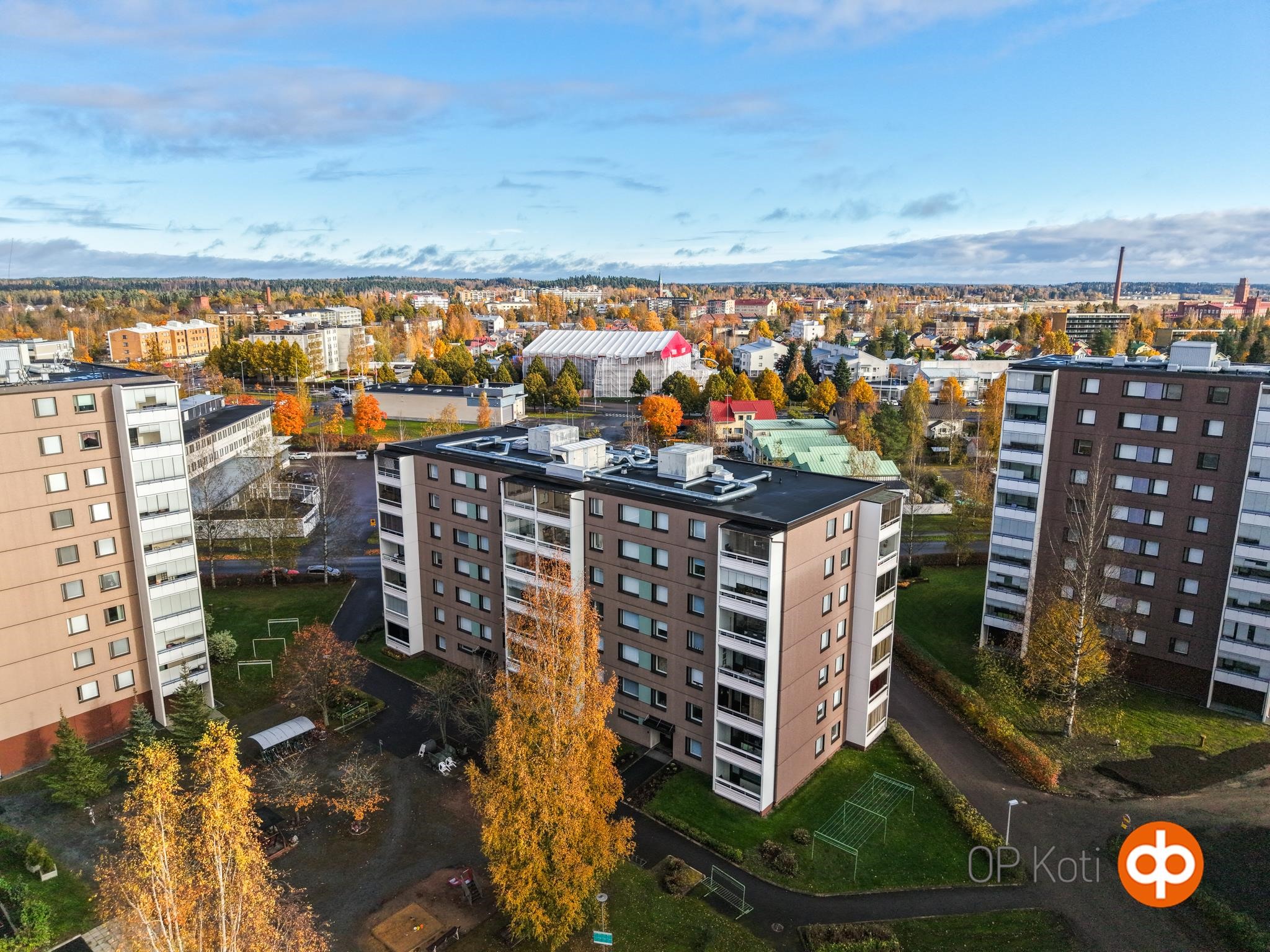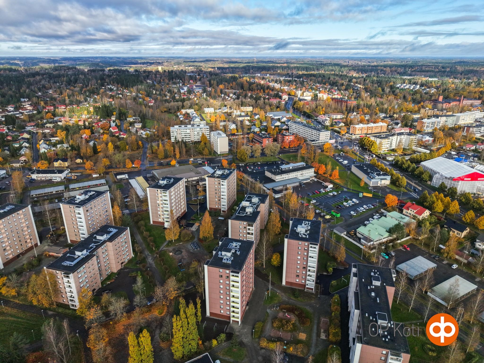 Asunto on viidennessä kerroksessa, joten lasitetulta parvekkeelta avautuvat hyvät, avarat maisemat pitkälle horisonttiin. Kylpyhuone on remontoitu nykyaikaiseksi vuonna 2015. Muilta osin asunto on lähes alkuperäisessä asussaan, mutta todella siisti.