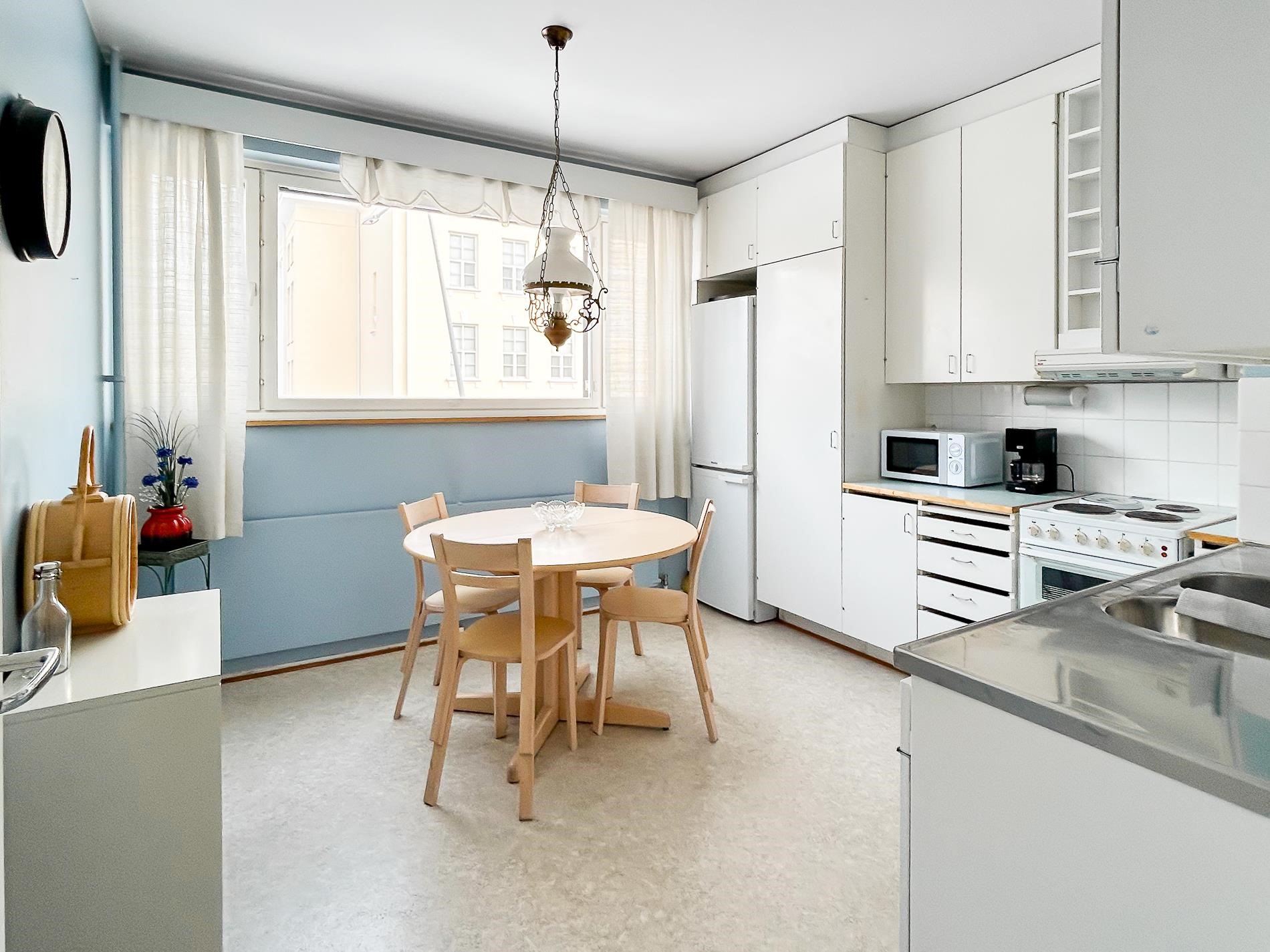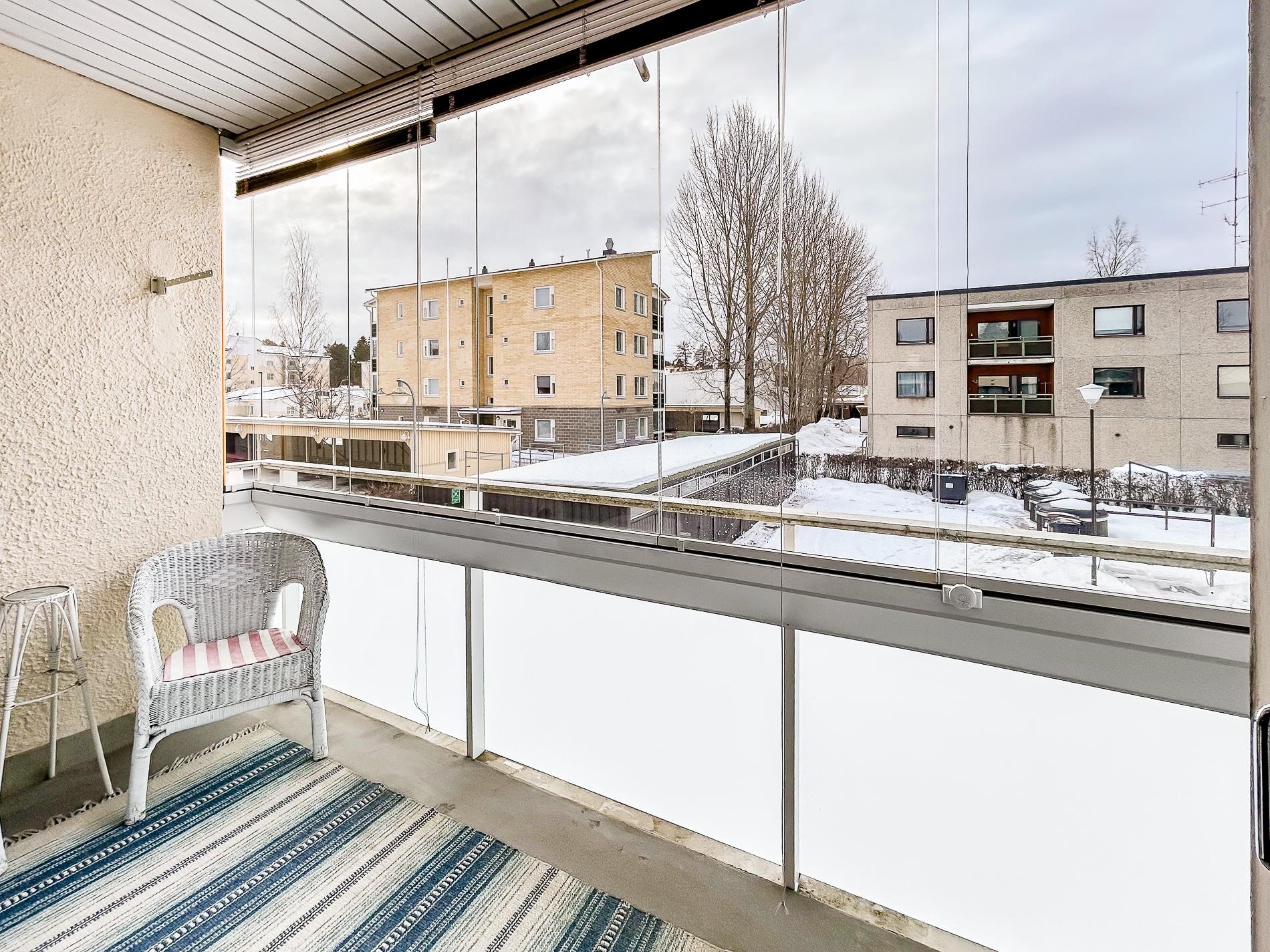 Tämä viehättävä ja tilava kolmio sijaitsee aivan keskustan tuntumassa. Aurinkoinen lasitettu parveke avautuu länteen. Keittiö on tilava ja sinne mahtuu hyvin ruokailemaan pöydän ääreen. Tässä kolmiossa on hulppeasti säilytystilaa tilavan vaatehuoineen ansiosta. Varaa oma esittelyaikasi ja ihastut tähän valoisaan kotiin.