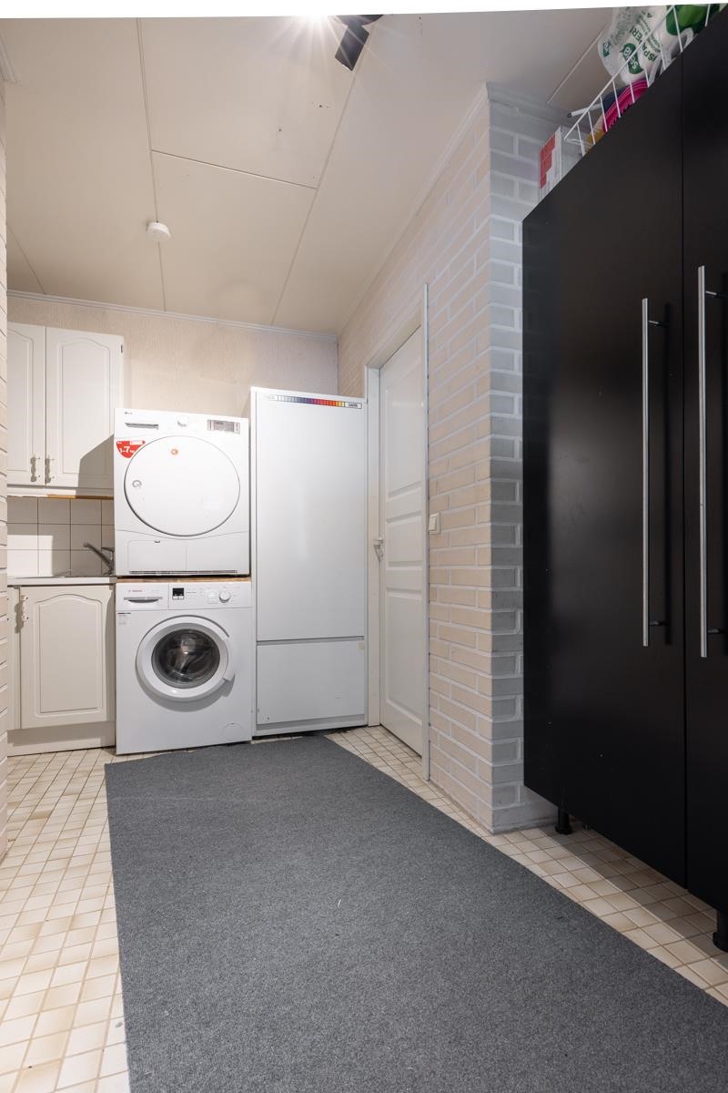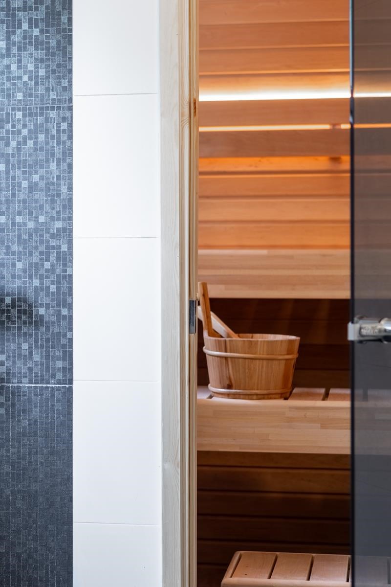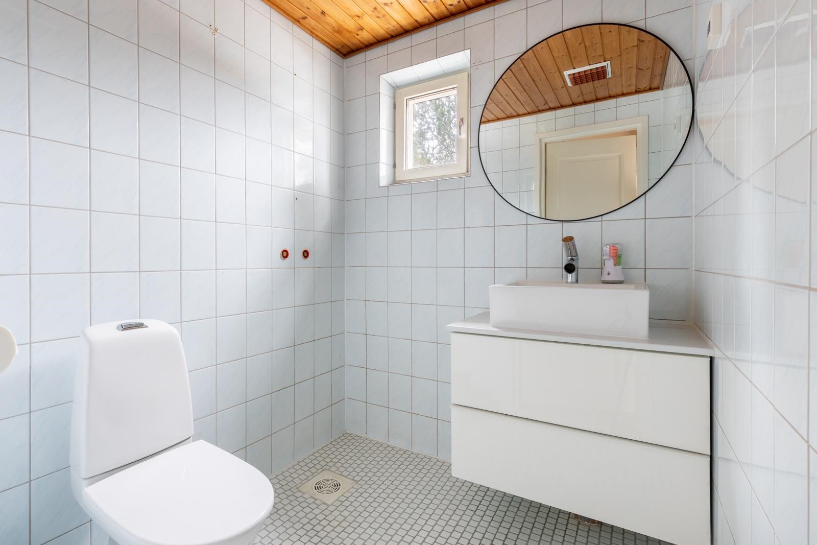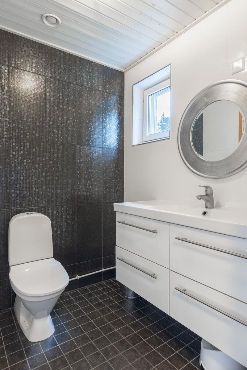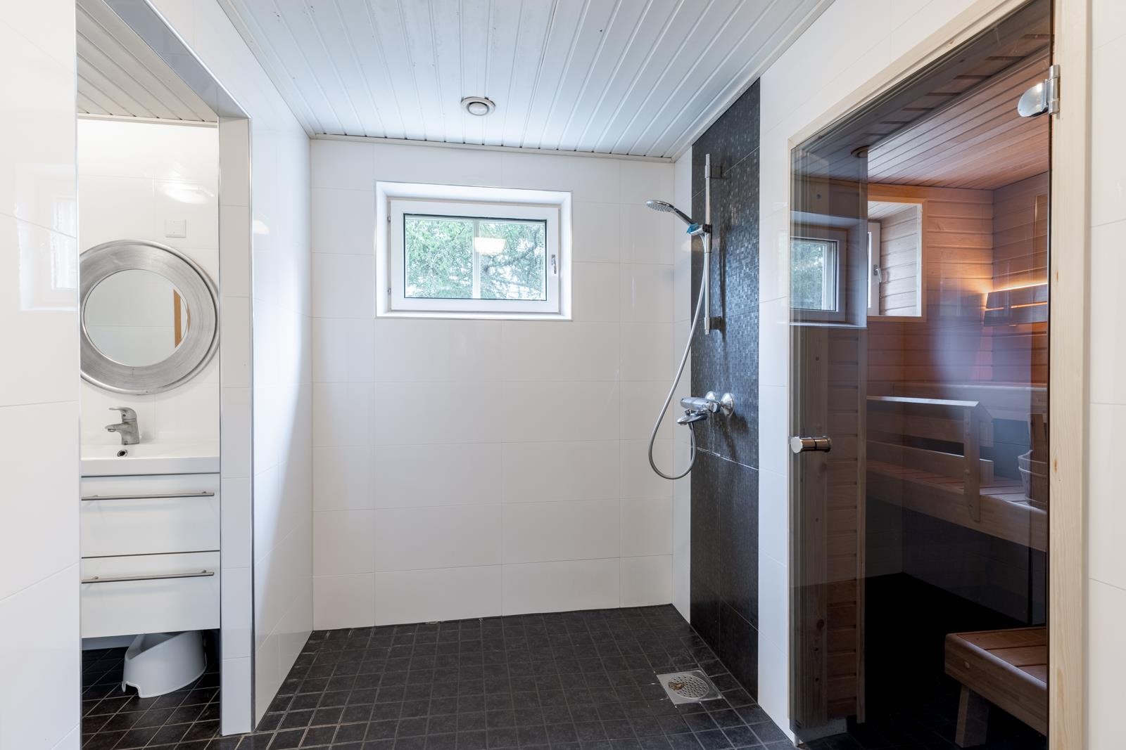 - Sauna, sähkökiuas, kylpyhuone, erillinen wc, suihku, peilit kph ja wc, kaapit kph, allaskaappi kph ja wc, pesukoneliitäntä khh, lattialämmitys kph+wc, kiinteät valaisimet. Sauna uusittu (ei lattia) 2026. Tuplarimoitus paneeleiden taakse, jotta ilma kiertää hyvin. Samalla kiuas ja ovi uusittiin. Kylpyhuone uusittu 2010/2011 (myös saunan lattia, saunan seinän nousussa vanha kaakeli alla)