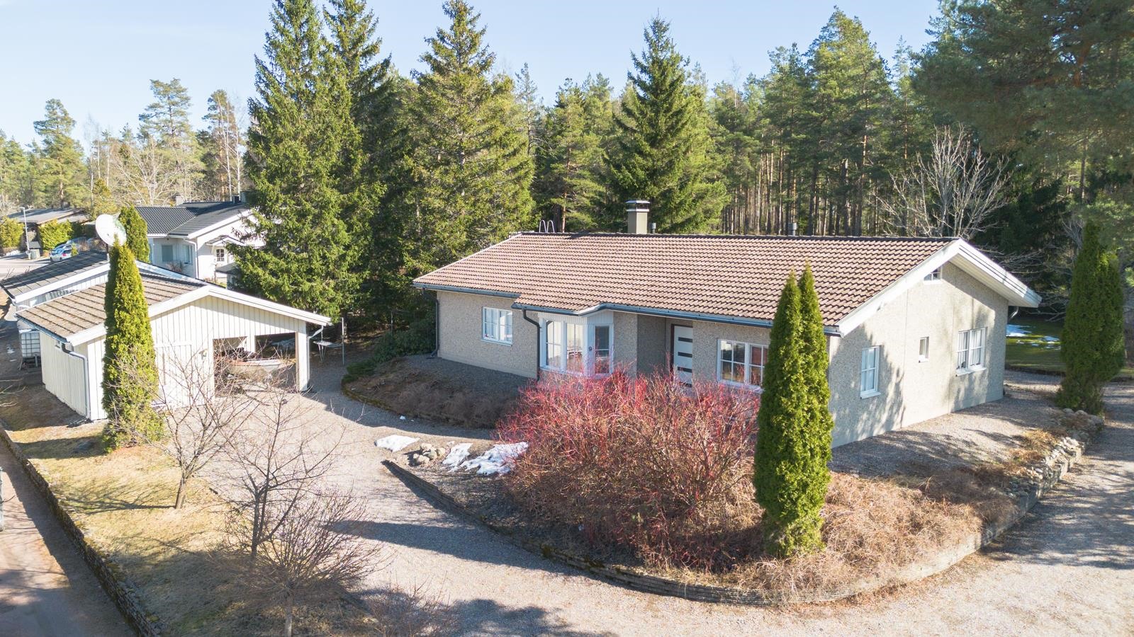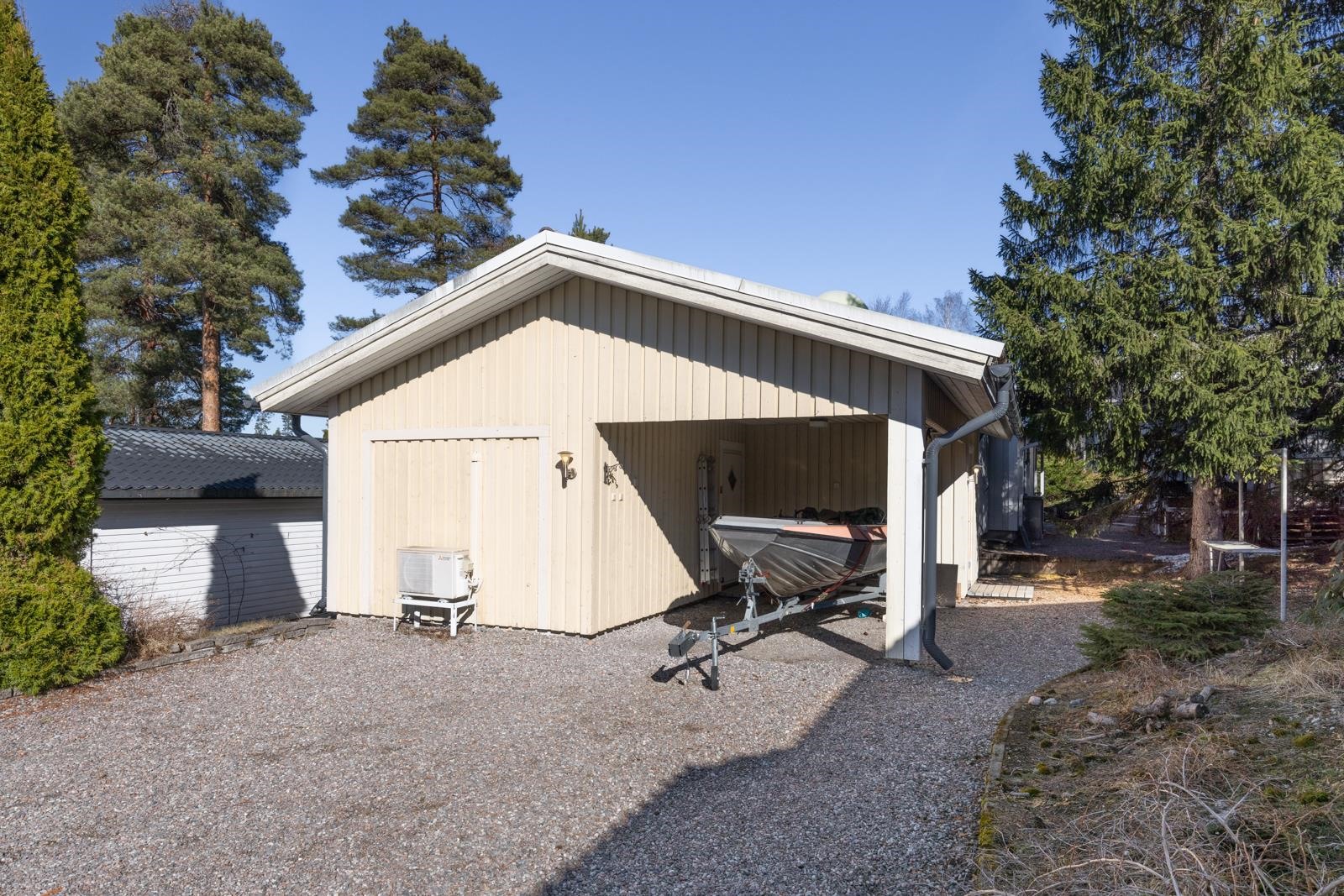 Uppvärmt uteförråd och biltak ger extra bekvämlighet i vardagen. Detta är ett hem som kombinerar kvalitet, funktion och rofylld omgivning.