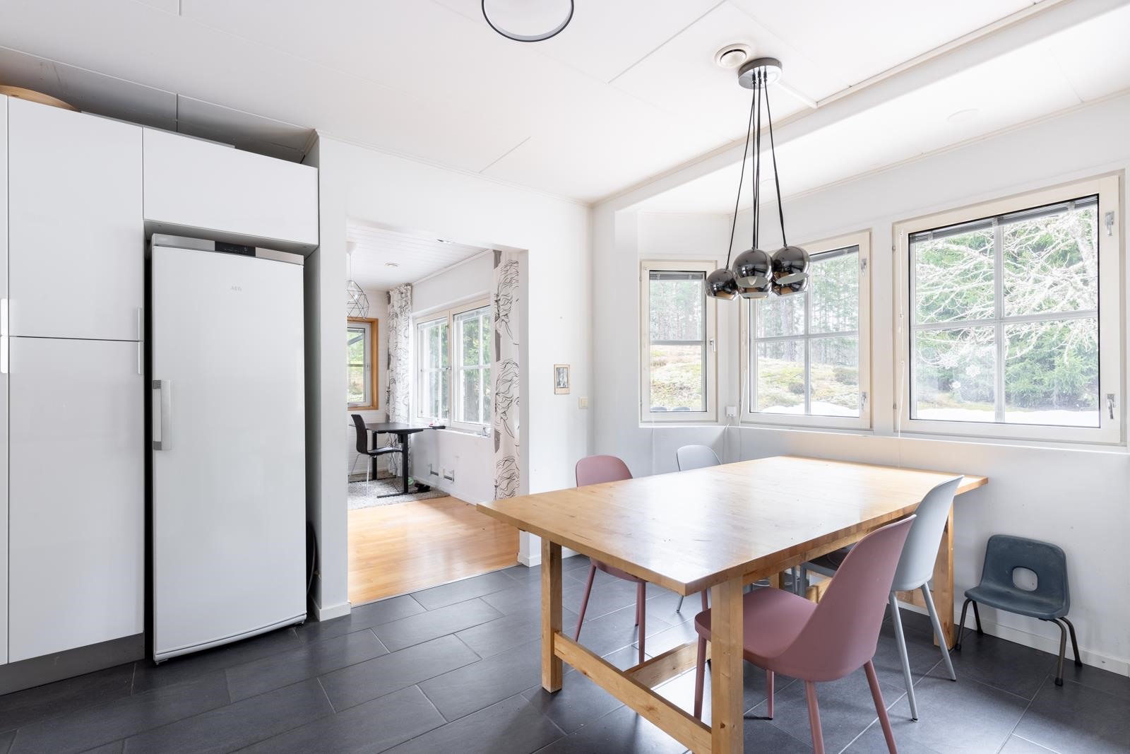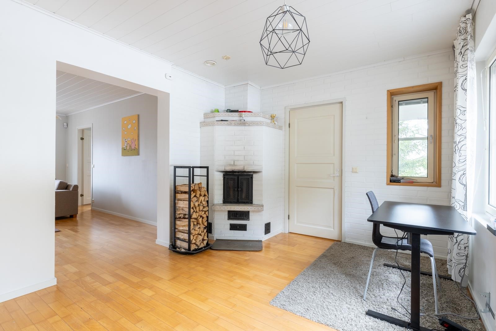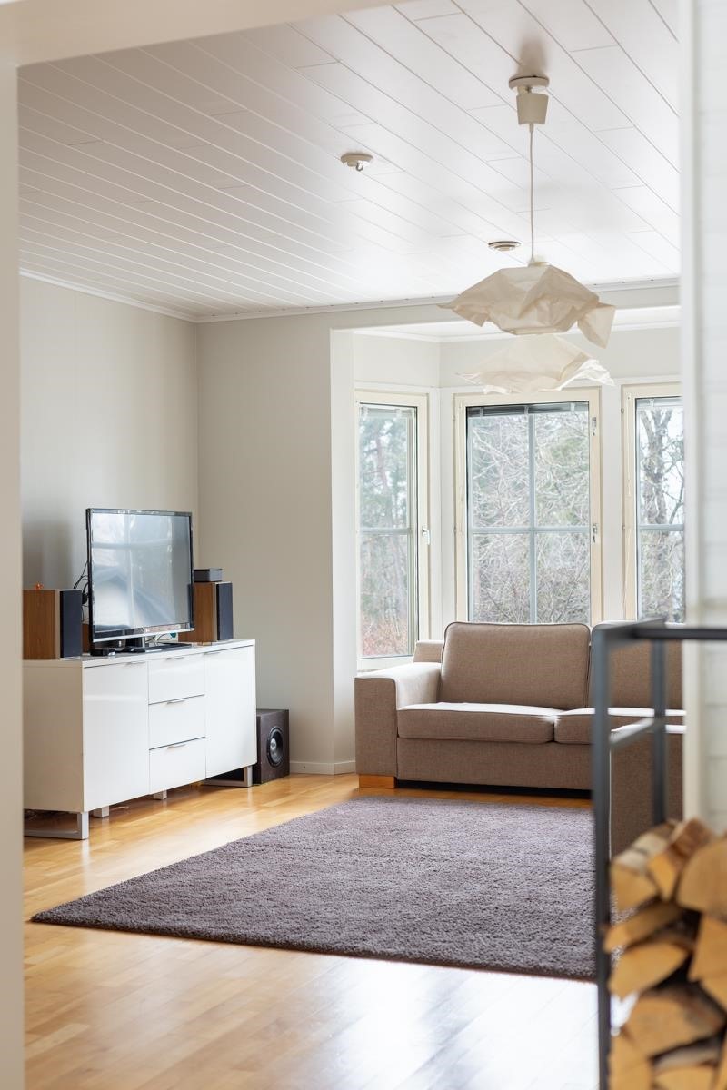 Huset har tre sovrum, hjälpkök, ett badrum med bastu samt en extra separat toalett. Vardagsrummet, det öppna köket och det mysiga eldstadsrummet bildar en inbjudande och funktionell helhet som passar både vardag och umgänge.