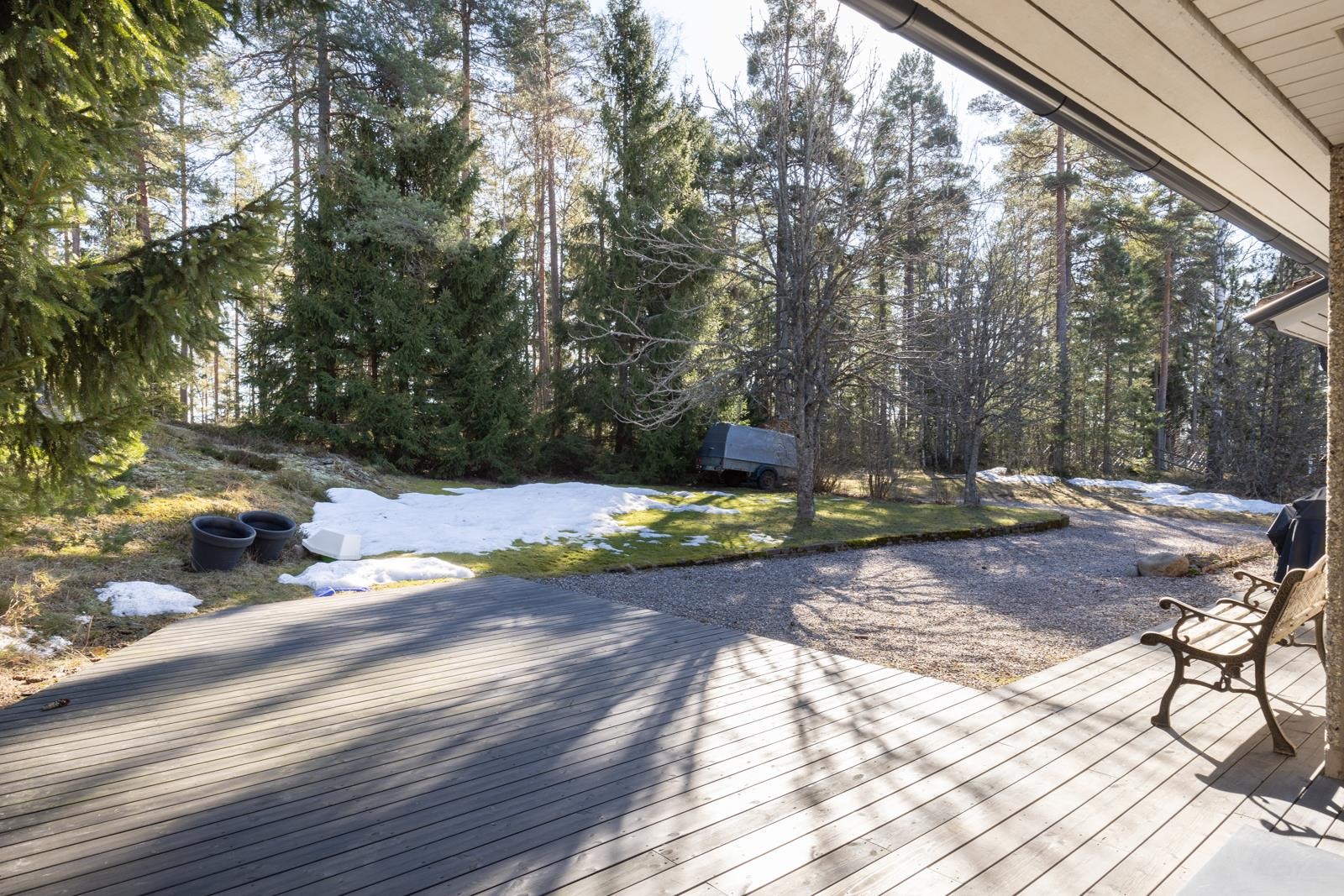 Terrassen och den skyddade bakgården erbjuder fina möjligheter till avkoppling i en grönskande miljö. För den som uppskattar friluftsliv finns ett motionsspår nära.