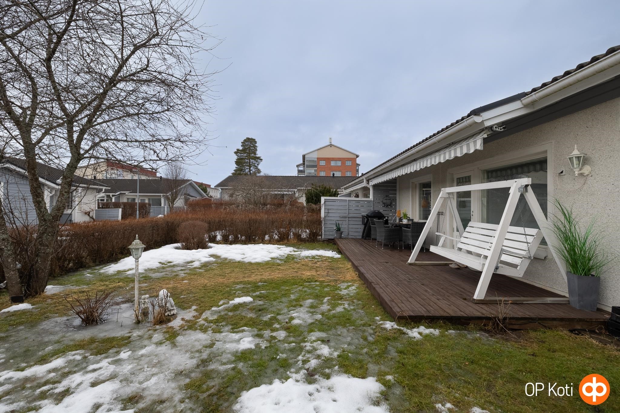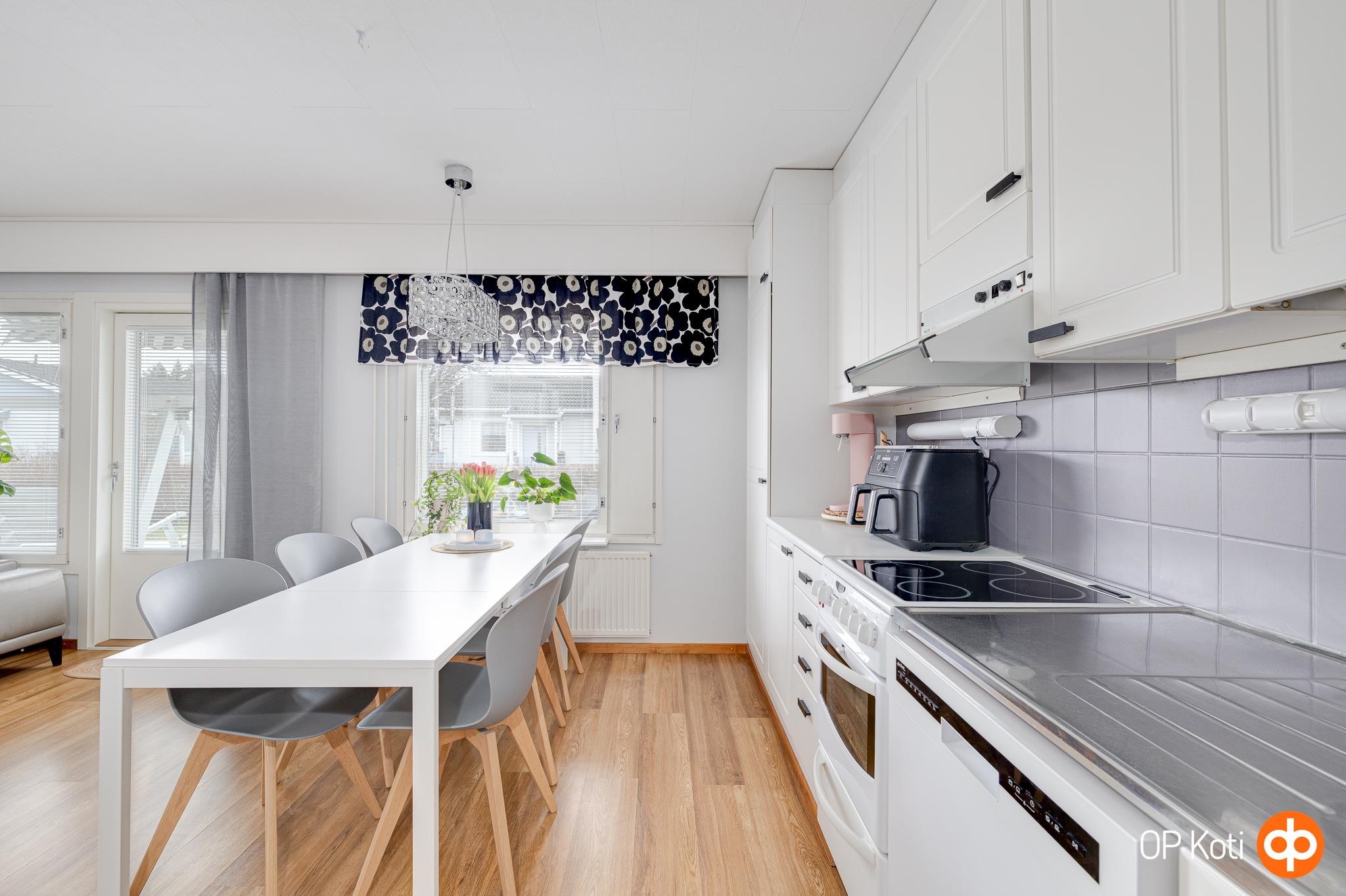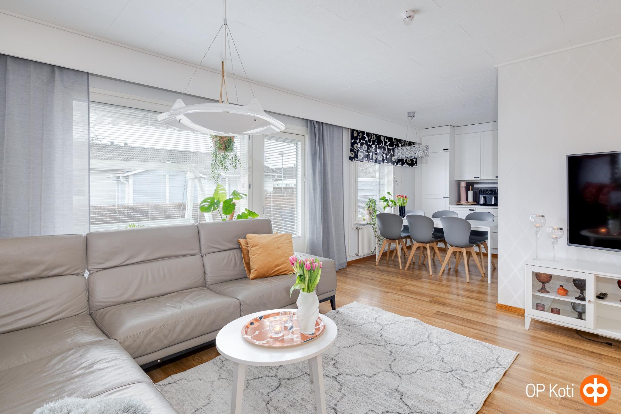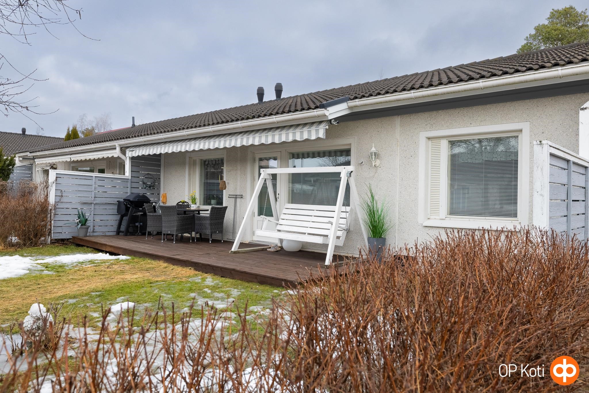 Tämän rivitalokodin selkeä pohjaratkaisu tekee tiloista avarat ja helposti muunneltavat - kolme makuuhuonetta mahdollistavat niin lastenhuoneet, työtilat kuin vierashuoneenkin. Olohuoneesta avautuu näkymä suojaisalle pihalle, jossa on tilaa lasten leikeille, puutarhanhoidolle tai rauhallisille grilli-illoille. Terassi ja sähkömarkiisi tekevät ulkotilasta viihtyisän läpi kesän. Saunassa rentoudut omassa rauhassa, ja arkea helpottavat kodinhoitohuone, vaatehuone sekä ulkovarasto.