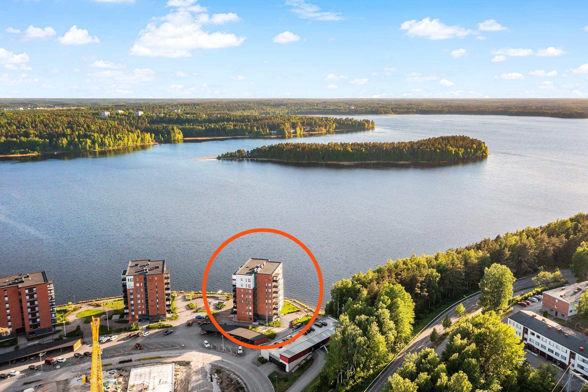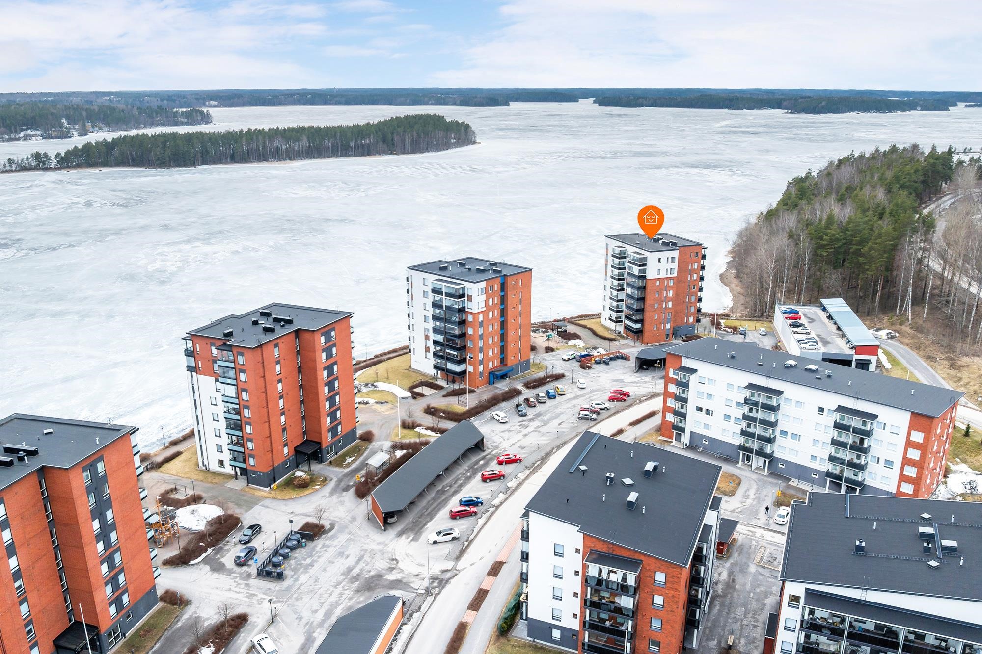 Lasitetulta parvekkeelta avautuva esteetön viidennen kerroksen Saimaa-näkymä tekee tästä kodista erityisen. Maisema ja valo luovat rauhallisen tunnelman, johon on helppo ihastua. Samassa yhteydessä on mahdollisuus ostaa myös autopaikka.