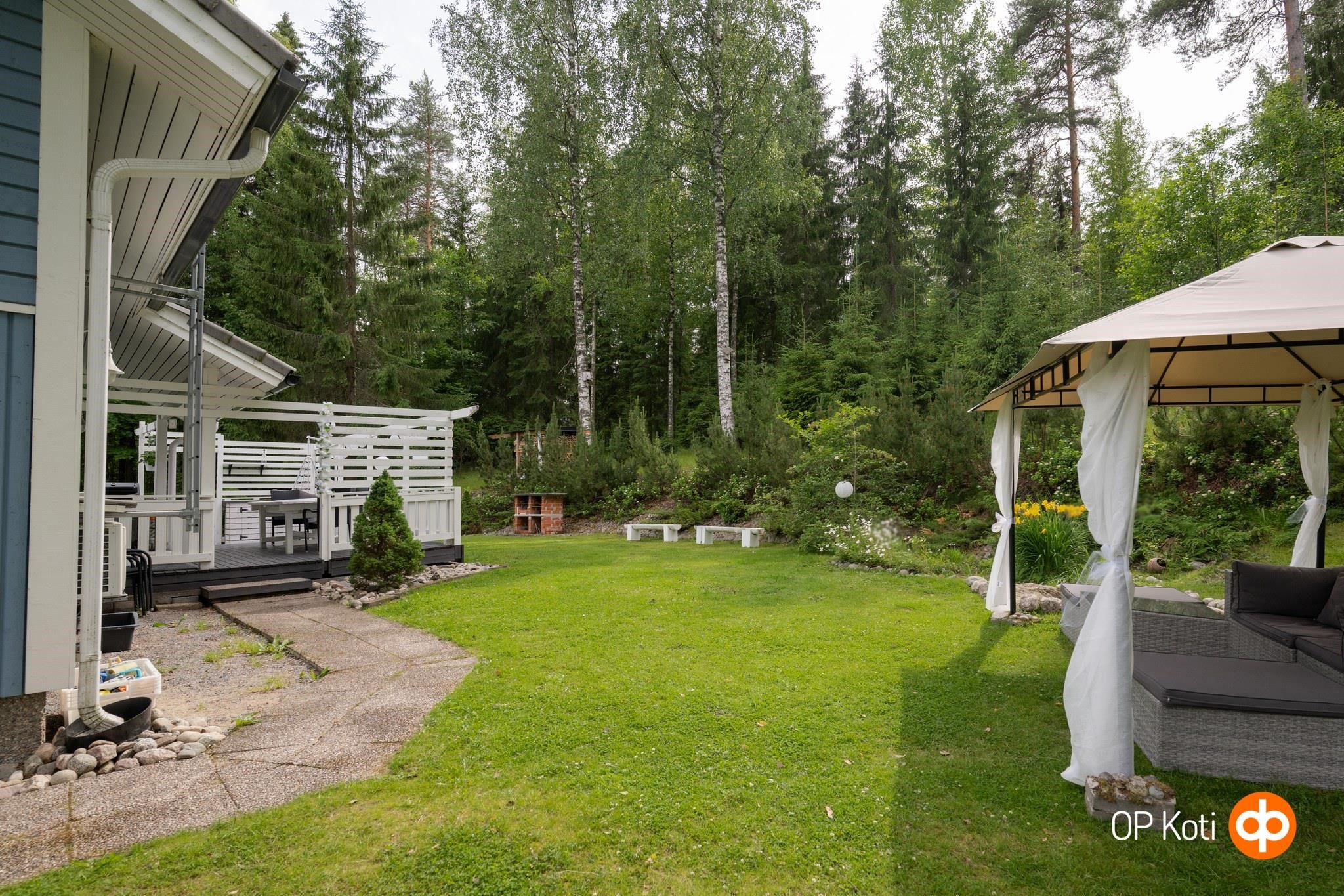 - Piha valtaosin nurmikolla, autotallin / talon edusta pihakiveystä ja osin soraa. Tontti on rinnetontti. Alapihalla on reilusti tasaista tilaa, jossa istutuksia. Myös yläpihalla ja pääsisäänkäynnin yhteydessä tasaista pihaa.