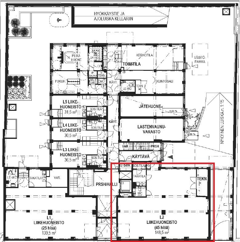 Asunto Oy Status Artis, Helsinki Liikehuoneisto 2 pinta-ala 148,5 m² Vuokra 5940 € /kk + alv Vuokrasopimus voidaan tehdä määräaikaisena tai toistaiseksi voimassaolevana, jossa ensimmäinen mahd. irtisanomisajankohta 12 kk kohdalla vuokrasopimuksen alkamisesta. Vuokran lisäksi vuokralainen vastaa: Sähkö, vesi ja tietoliikenneyhteyksien kustannuksista. Vuokravakuuus 2-4 kk alv:sta vuokraa vastaava summa. Vuokralaisella tulee olla liiketoiminasa ja irtaimiston osalta vakuutus koko vuokrasuhteeen ajan. Rakennus on valmistunut alkujaan 1953. Uudisrakentamiseen verrattava rakennuksen saneeraus toimistotiloista asuinrakennukseksi valmistui 2025. Yhtiöllä oma tontti.1428 m² Rakennuksen bruttoala7596 br-m² kerrosala 5732 k-m² tilavuus 21 880 m³ Yhtiössä osakeomisteisia: asuntoja 58 kpl. Liiketiloja 5 kpl. Autopaikkoja 15 kpl Moottoripyöräpaikkoja 2 kpl. Huoneistojen ilmanvaihtojärjestelmä on huoneistokohtainen, koneellinen, lämmön talteenotolla varustettu tulo-/poistoilmanvaihtojärjestelmä. Huoneiston ilmanvaihtoa voidaan ohjata huoneistossa sijaitsevasta käyttöpaneelista. Kaukolämpö, huoneistoissa vesikiertoinen lattialämmitys. Kiinteisö liitetty kaukokylmäverkkoon, huoneistoja voidaan viilentää lattiaviilennysjärjestelmällä. Valokuitukaapeli yleiseen televerkkoon, ja rakennus varustetaan tiedonsiirron yleiskaapelointijärjestelmällä ja kaapeli-TV-liittymä.