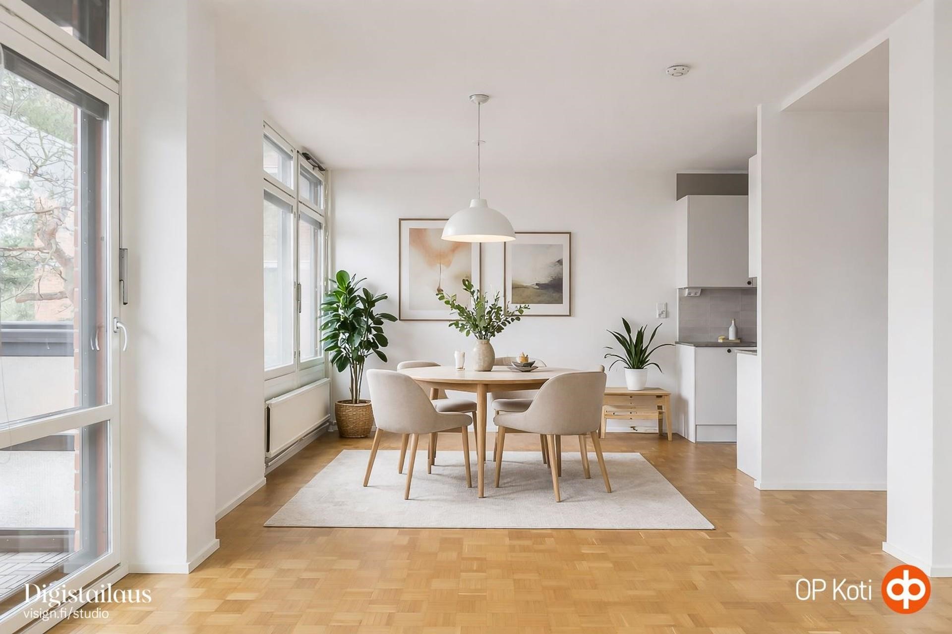 Tämä kaunis ja erinomaisesti suunniteltu koti on juuri valmistunut koko yhtiön käsittävästä perinteisestä linjasaneerauksesta ja asunnon kaikki pinnat on uudistettu tyylikkäästi sekä hyvällä maulla. Keittiö on remontoitu kokonaan vaaleilla, ajattomilla materiaaleilla ja tilaratkaisut on suunniteltu huolellisesti- säilytystilaa on runsaasti ja toiminnallisuus palvelee monenlaisia elämäntilanteita. Asunto sijaitsee rauhallisella Olarin alueella talon toisessa kerroksessa. Olohuoneen ja ruokailutilan suurista ikkunoista sekä parvekkeelta avautuvat vehreät, puistomaiset näkymät. Kaikki arjen palvelut ovat aivan lähellä, ja sijainti tarjoaa sekä keskuspuiston loistavat ulkoilumahdollisuudet, että nopean yhteyden urbaanin Matinkylän kattaviin palveluihin. Myös Olarin keskuksen palvelut, kuten ruokakauppa ja apteekki ovat kävelyetäisyydellä. Taloyhtiön Linjasaneerauksen kustannuksia ei ole vielä jyvitetty, eikä remontin osuutta ole sisällytetty myyntihintaan. Arvio saneerauksen kokonaiskustannuksesta on noin 1 040 euroa/m². Lainan voi halutessaan maksaa pois kokonaisuudessaan tai lyhentää kuukausittain rahoitusvastikkeen muodossa. Tähän asuntoon on todella helppo ihastua! Tervetuloa tutustumaan ja ihastelemaan. Varaa oma esittelyaikasi: Heini Paassola Myyntineuvottelija, sisustussuunnittelija 0405399390 heini.paassola@op.fi