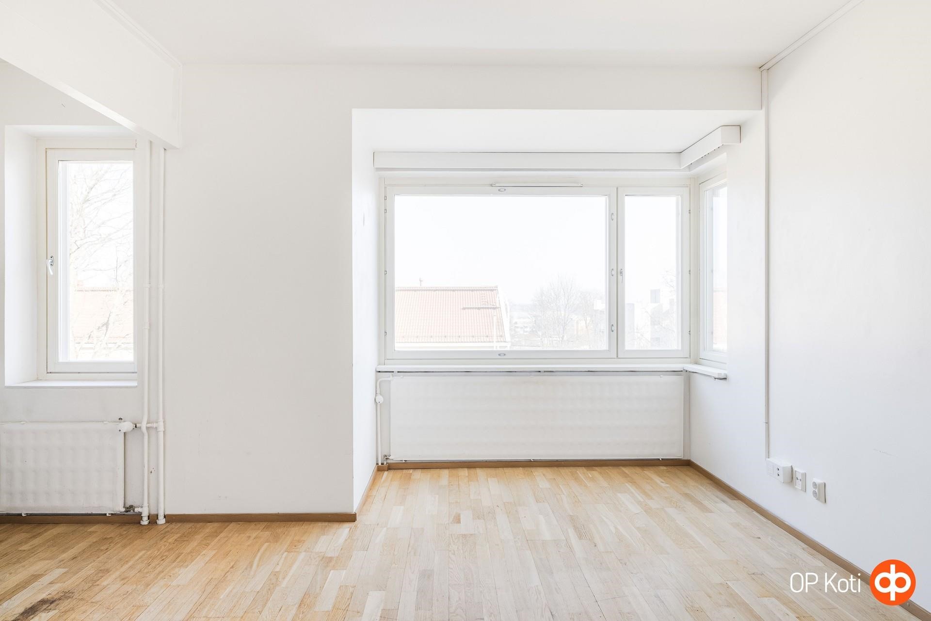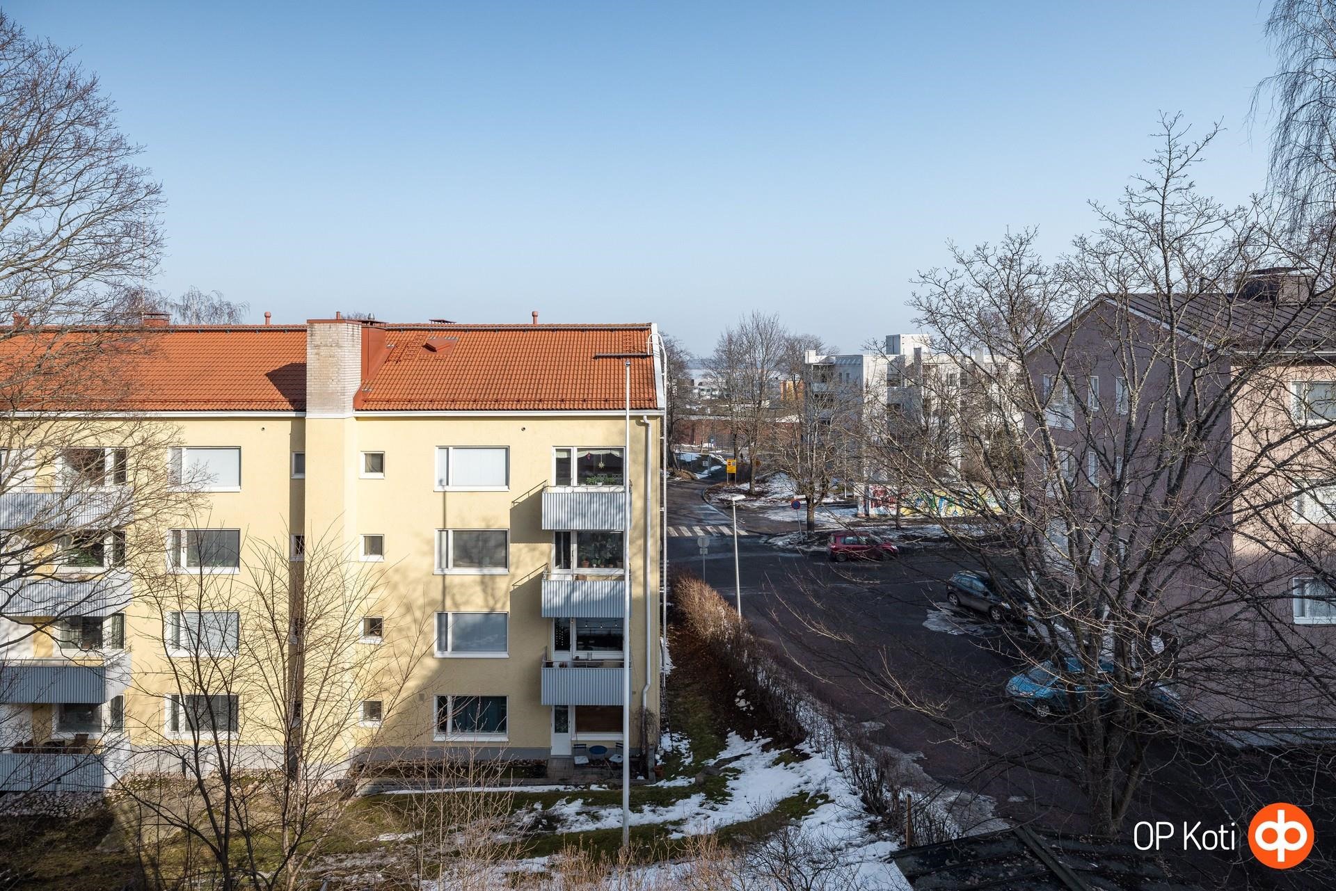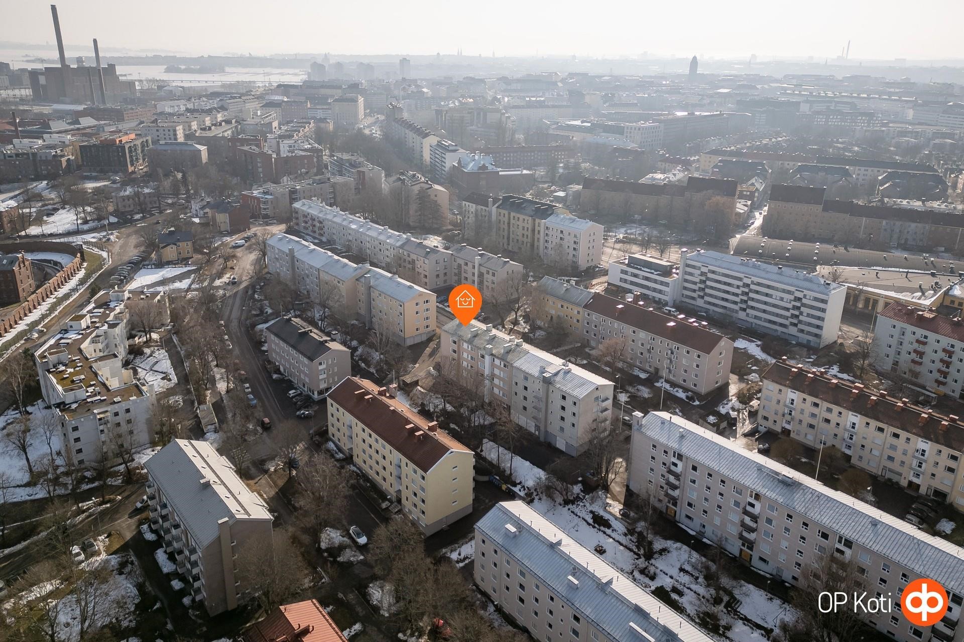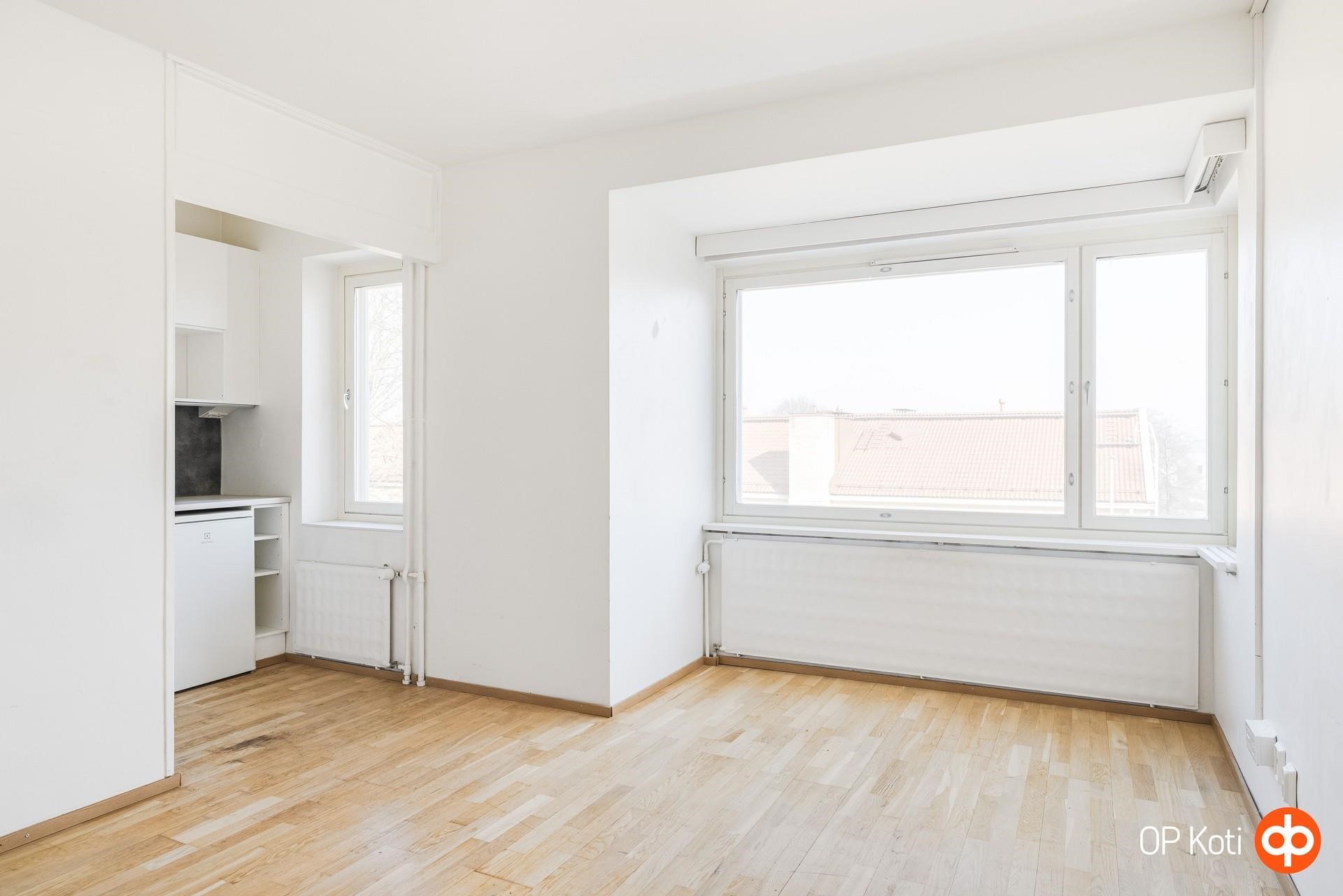 Kompakti yksiö putkiremotoidusta 50-lukuisesta yhtiöstä halutusta Hermannista. Tästä 3. kerroksen pihanpuolen asunnosta merikin pilkottaa. Mukavanmallinen pohja, jossa erkkerimäinen ikkunasyvennys.