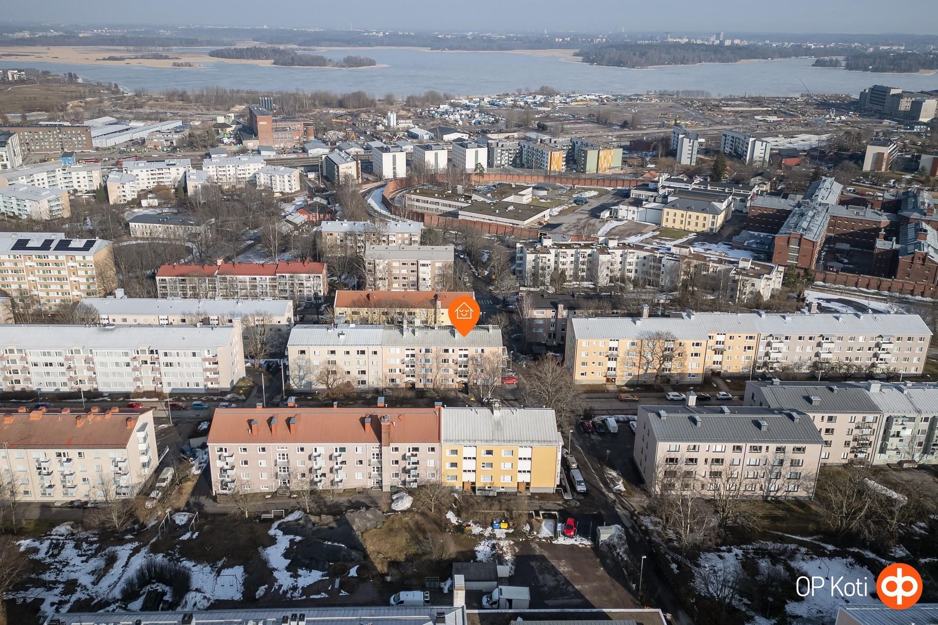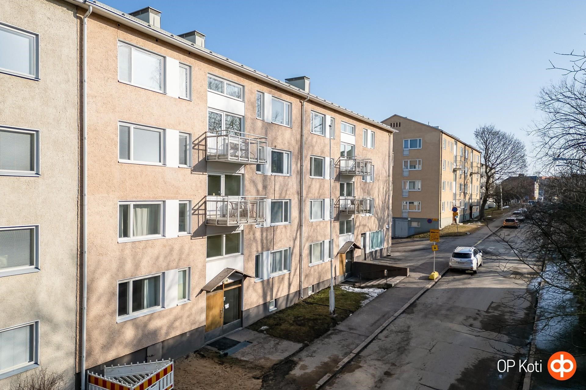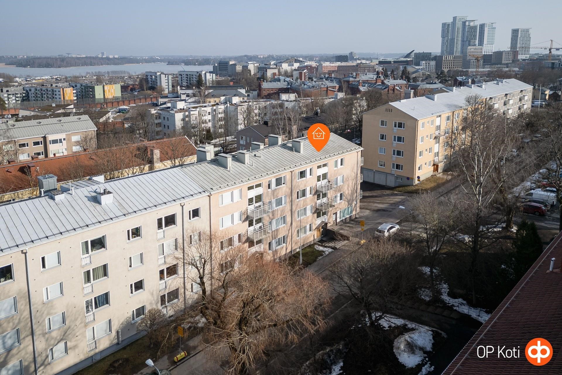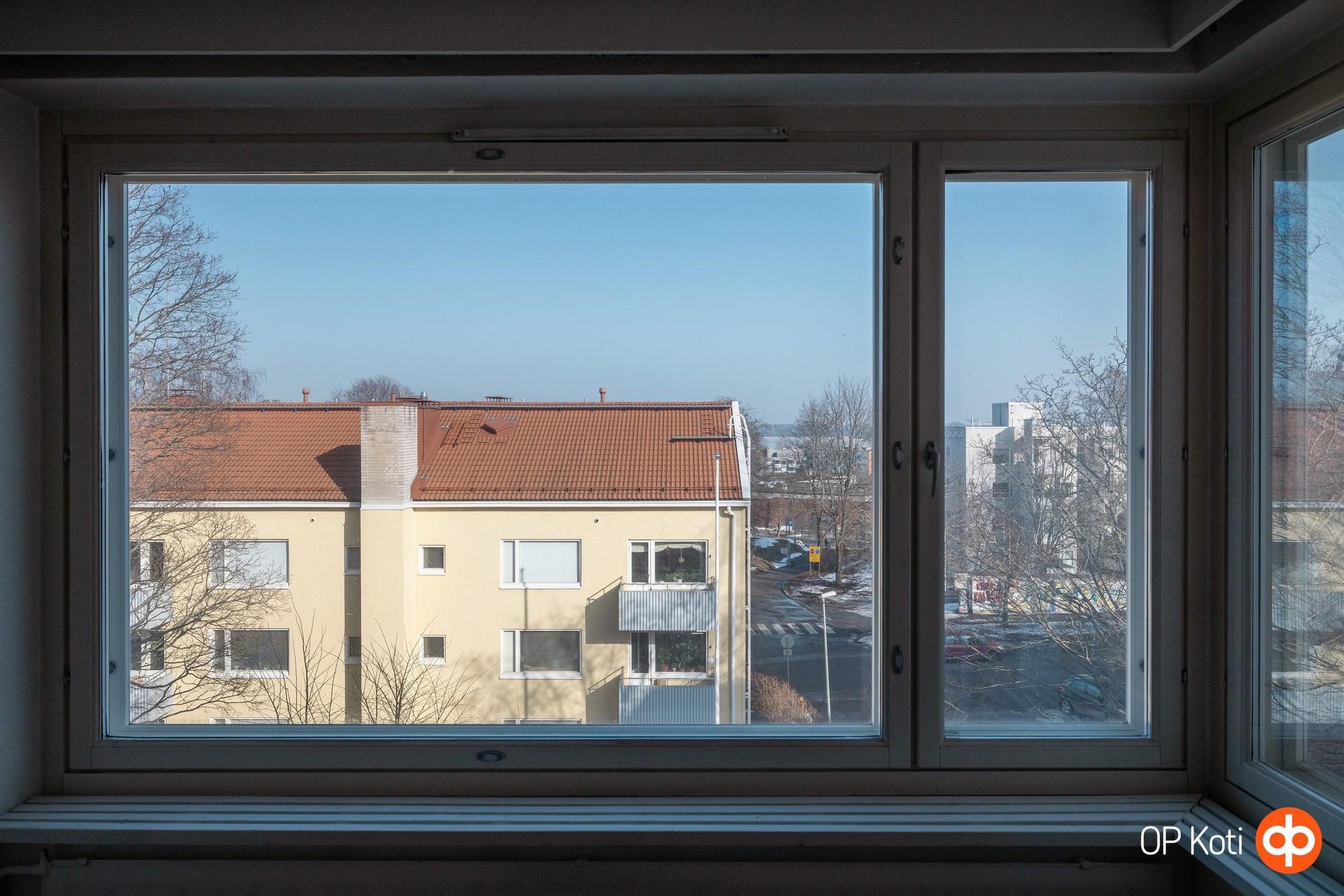 Kompakti yksiö putkiremotoidusta 50-lukuisesta yhtiöstä halutusta Hermannista. Tästä 3. kerroksen pihanpuolen asunnosta merikin pilkottaa. Mukavanmallinen pohja, jossa erkkerimäinen ikkunasyvennys.