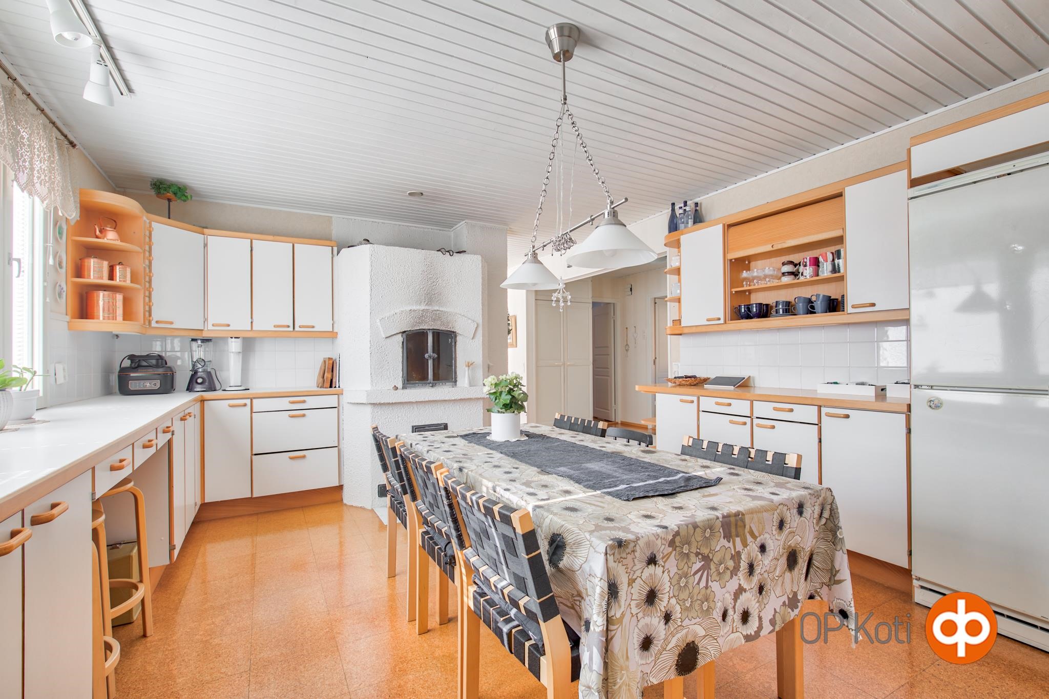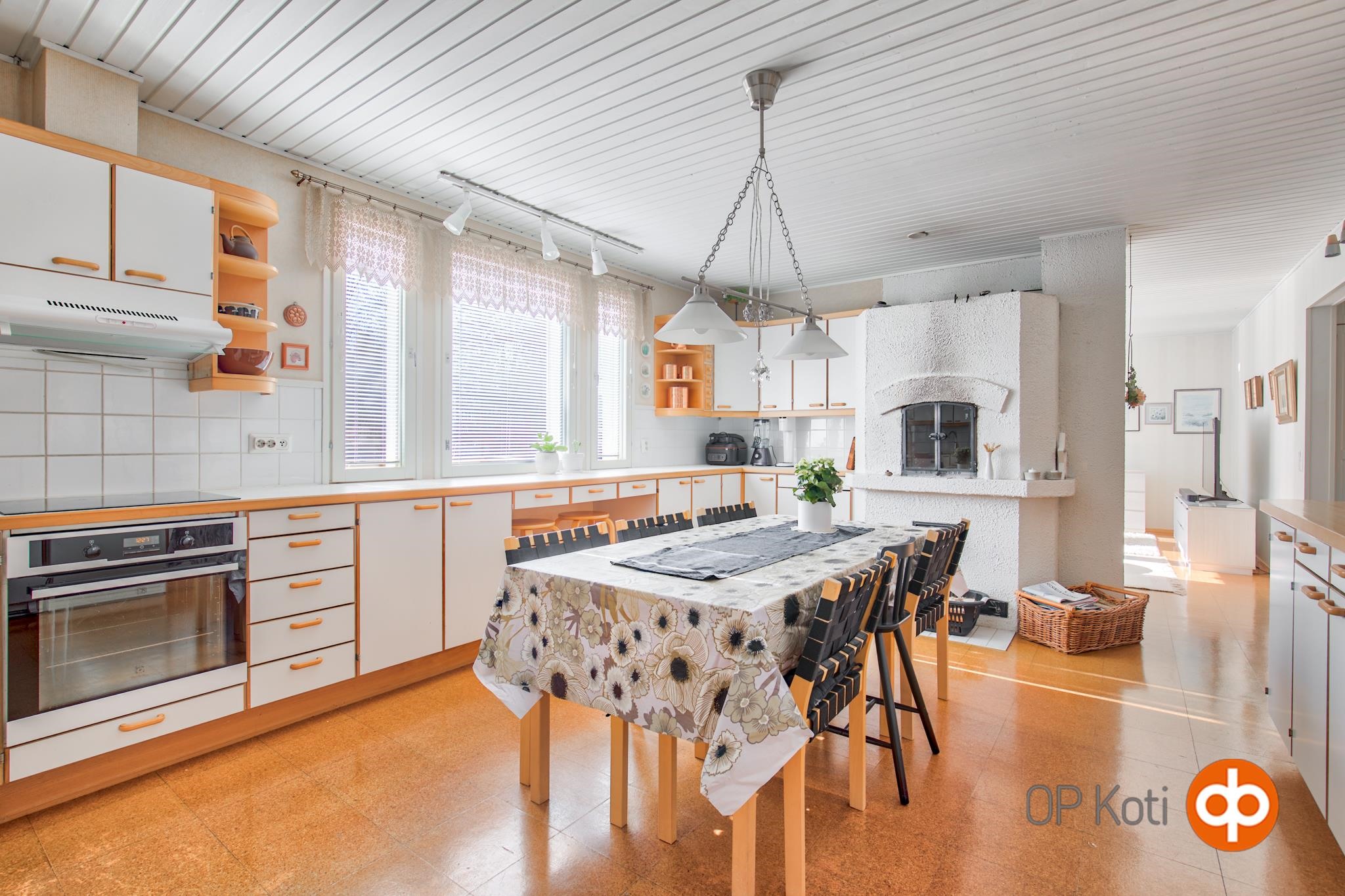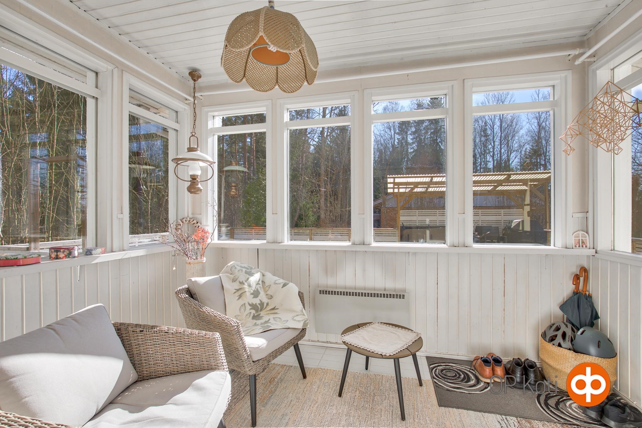 Tämä kolmen makuuhuoneen koti tarjoaa toimivan ja viihtyisän arjen puitteet. Tilava keittiö toimii kodin sydämenä, ja erillinen kodinhoitohuone helpottaa arjen sujuvuutta. Kylpyhuone ja sauna on saneerattu nykypäivän standardein, tuoden asumiseen raikkautta ja mukavuutta. Avara ja vaalea olohuone kokoaa perheen yhteen, ja puolilämmin lasitettu kuisti tarjoaa monipuolisen lisätilan - se muuntuu tarpeen mukaan arkieteiseksi tai viihtyisäksi paikaksi nauttia kevään ja syksyn päivistä. Iso terassi tarjoaa runsaasti oleskelutilaa, ja katettu keitto- ja grillauserkkeri tekee ulkona kokkaamisesta helppoa. Kylmä ullakkotila tuo lisää säilytysmahdollisuuksia kaappitilojen ja ulkovaraston lisäksi, ja erillinen autotalli katoksella viimeistelee kokonaisuuden tuoden arkeen ripauksen luksusta.