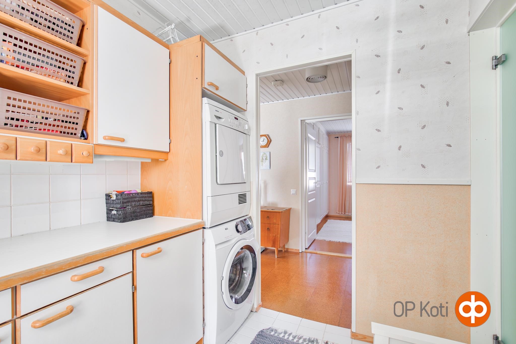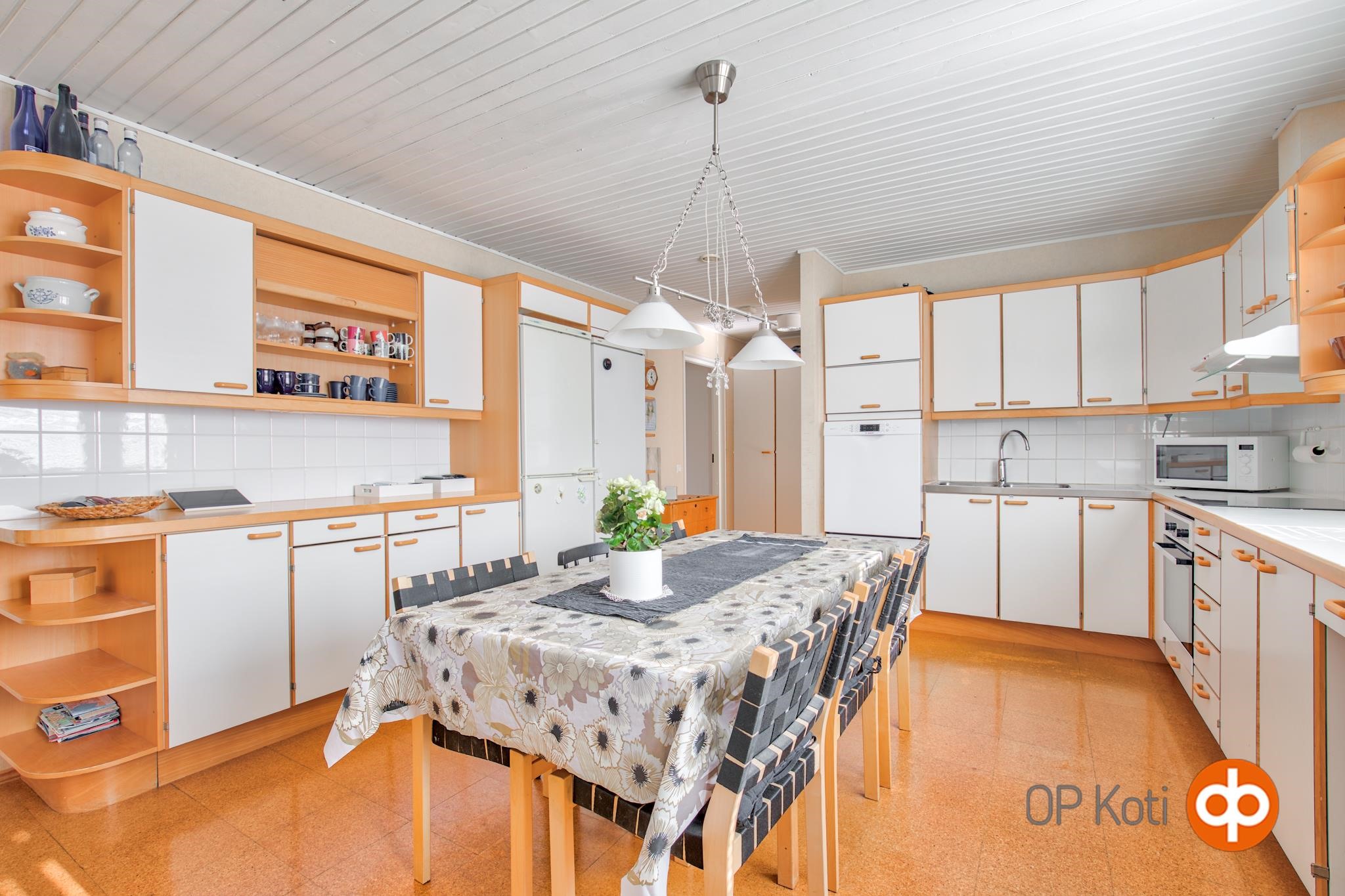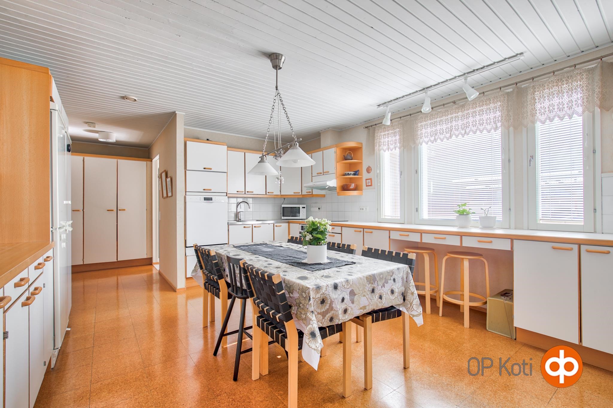Tämä kolmen makuuhuoneen koti tarjoaa toimivan ja viihtyisän arjen puitteet. Tilava keittiö toimii kodin sydämenä, ja erillinen kodinhoitohuone helpottaa arjen sujuvuutta. Kylpyhuone ja sauna on saneerattu nykypäivän standardein, tuoden asumiseen raikkautta ja mukavuutta. Avara ja vaalea olohuone kokoaa perheen yhteen, ja puolilämmin lasitettu kuisti tarjoaa monipuolisen lisätilan - se muuntuu tarpeen mukaan arkieteiseksi tai viihtyisäksi paikaksi nauttia kevään ja syksyn päivistä. Iso terassi tarjoaa runsaasti oleskelutilaa, ja katettu keitto- ja grillauserkkeri tekee ulkona kokkaamisesta helppoa. Kylmä ullakkotila tuo lisää säilytysmahdollisuuksia kaappitilojen ja ulkovaraston lisäksi, ja erillinen autotalli katoksella viimeistelee kokonaisuuden tuoden arkeen ripauksen luksusta.