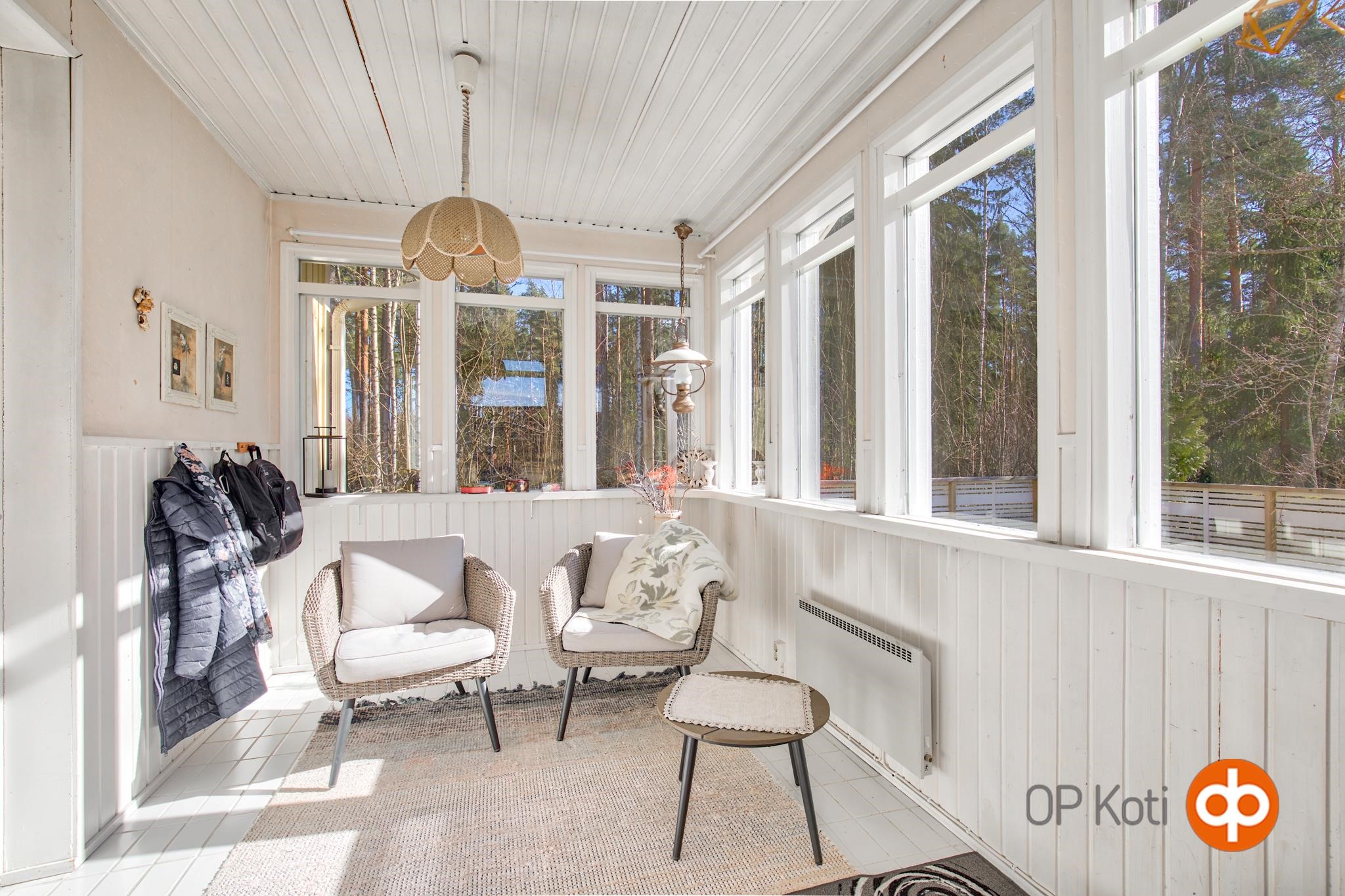 - 10 m2Muut tilat: Puolilämmin lasikuisti, rakennuspiirustusten mukainen rakennusala 10m².