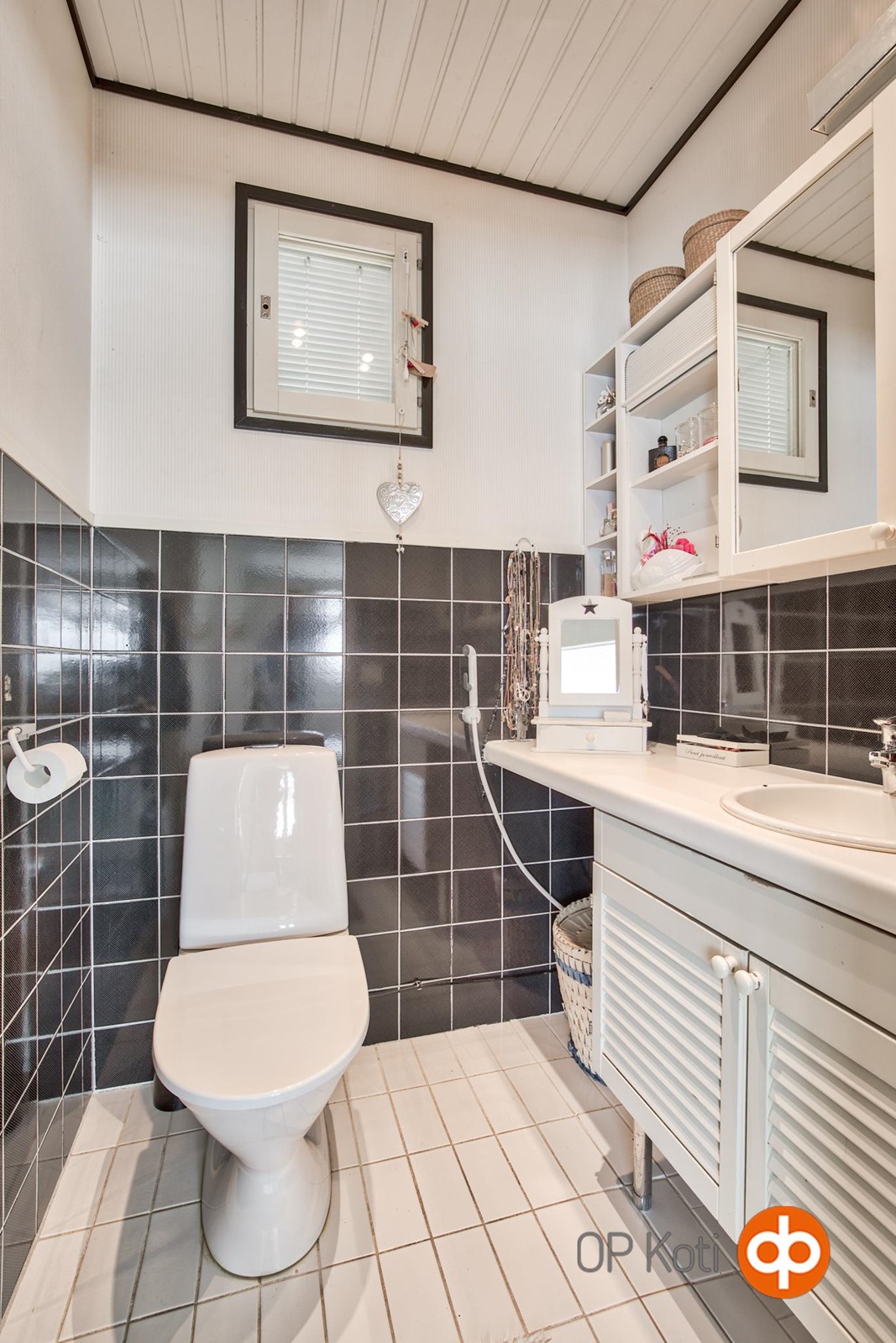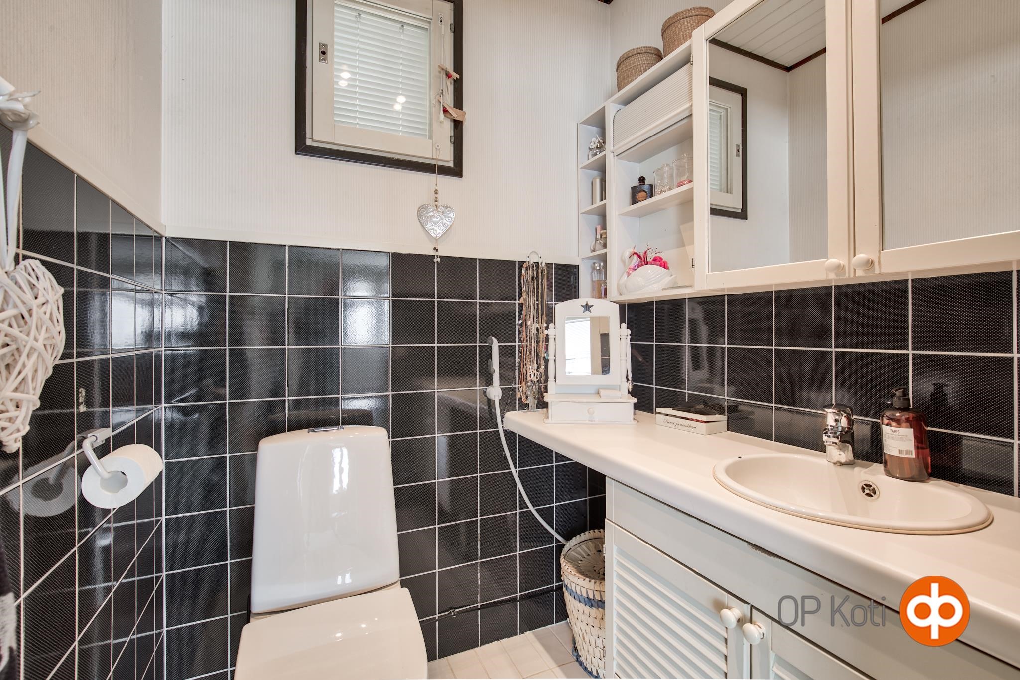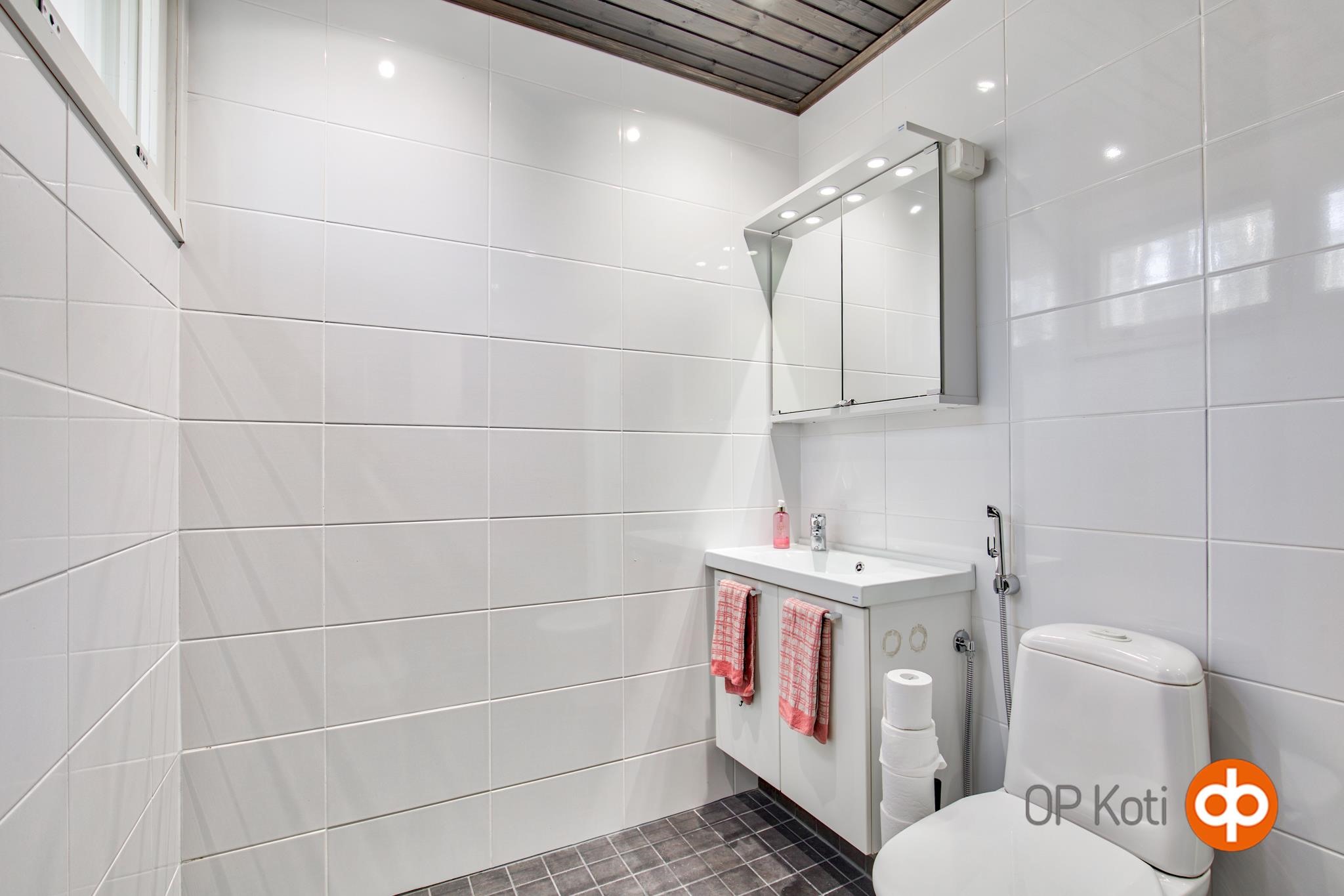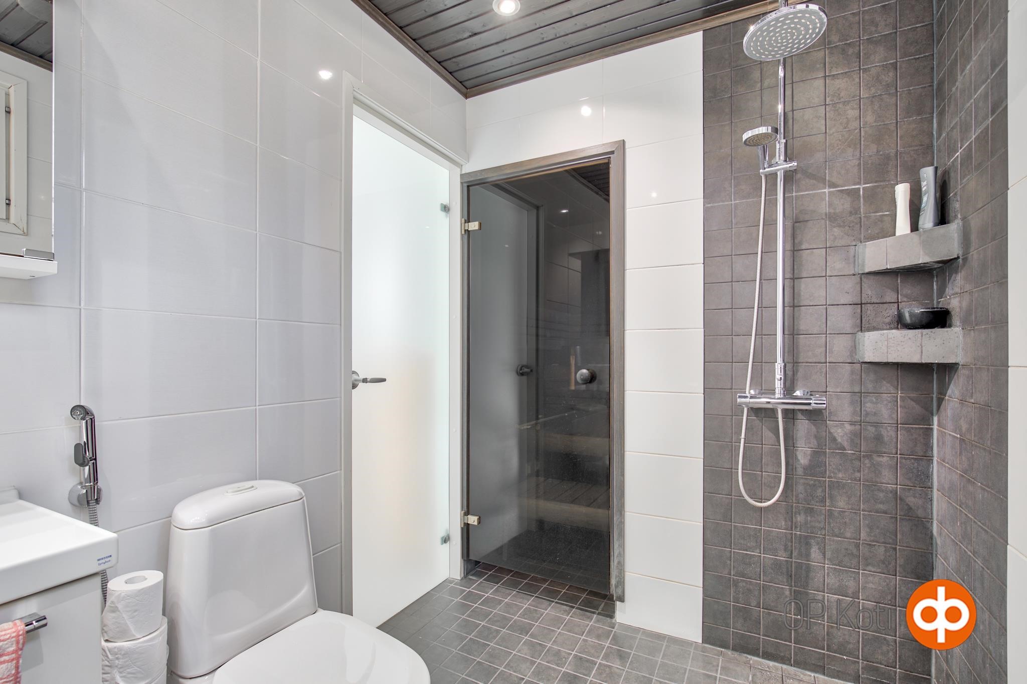 - Sauna, sähkökiuas, kylpyhuone, erillinen wc toinen wc istuin kph., suihku, peilikaappi, kaapit, allaskaappi, pesukoneliitäntä khh, lattialämmitys (kph, s, khh, erill.wc, tuulikaappi), kiinteät valaisimet.