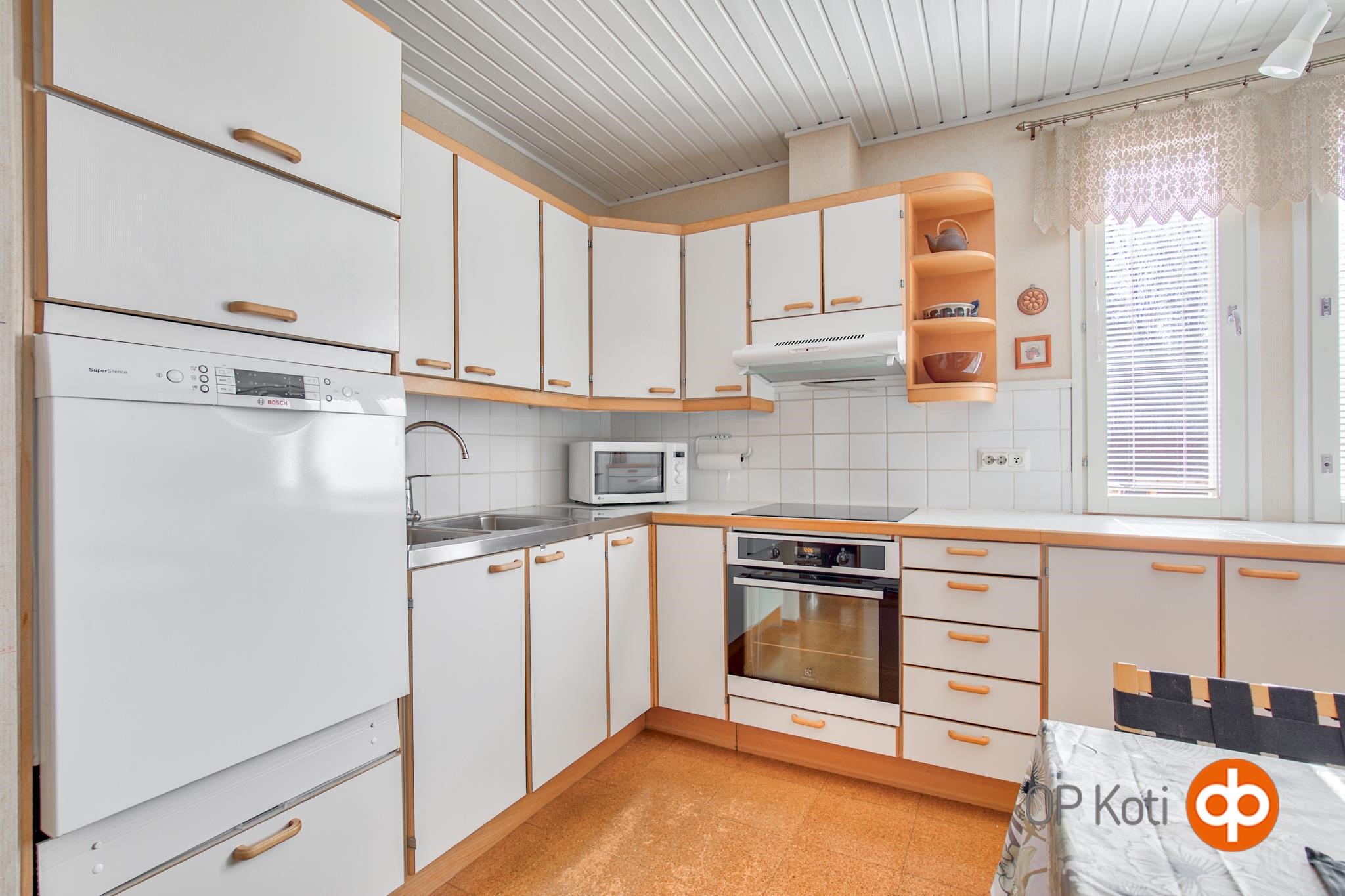 - Jääkaappi, jääkaappipakastin, erillisuuni, liesitaso induktio, liesituuletin hormiin, astianpesukone, kaapistot, kiinteät valaisimet.