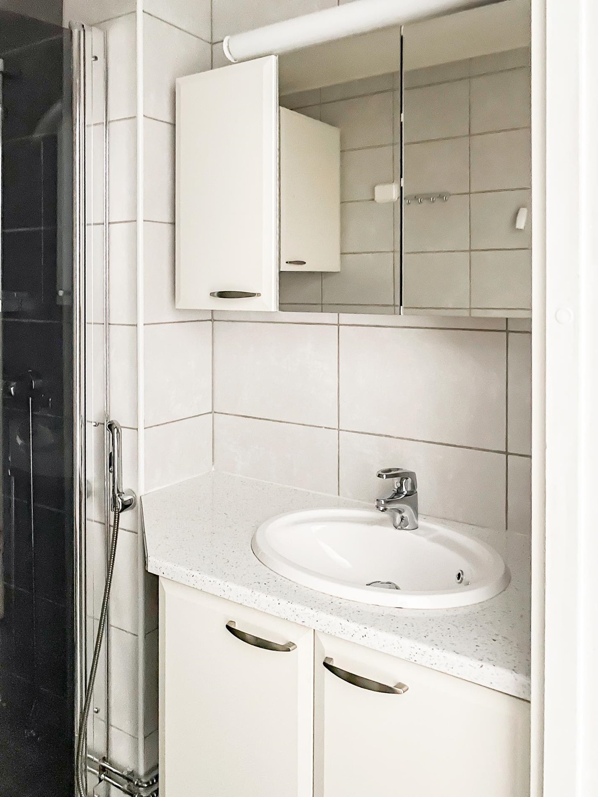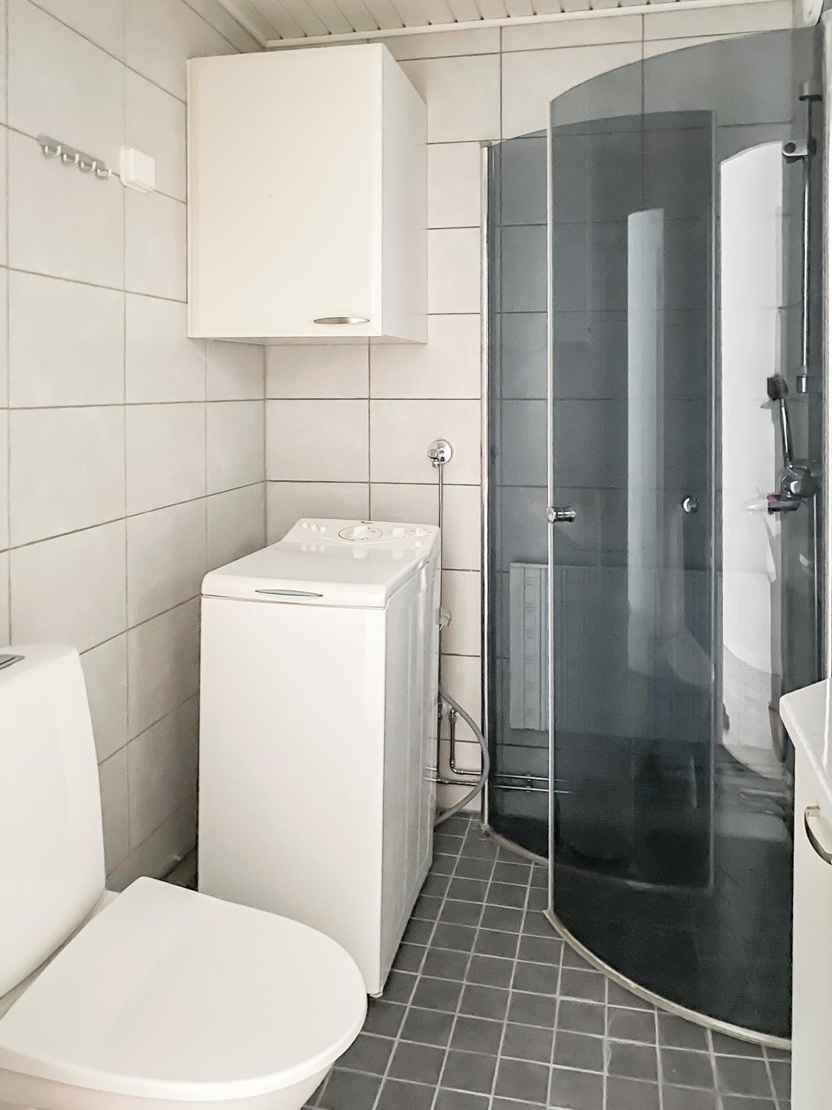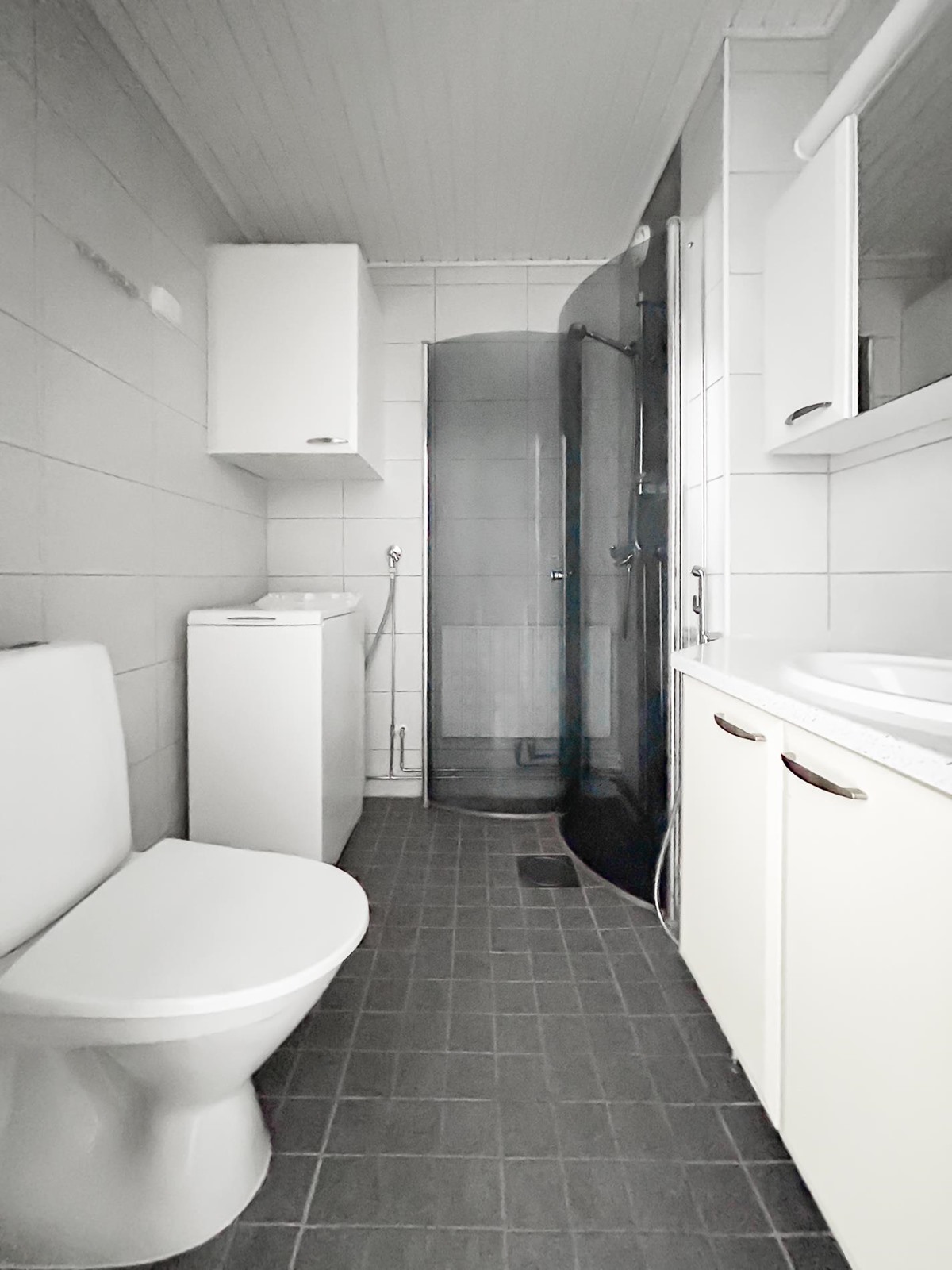 - Kylpyhuone, suihku, suihkukaappi, peilikaappi, pesukoneliitäntä, kiinteät valaisimet.