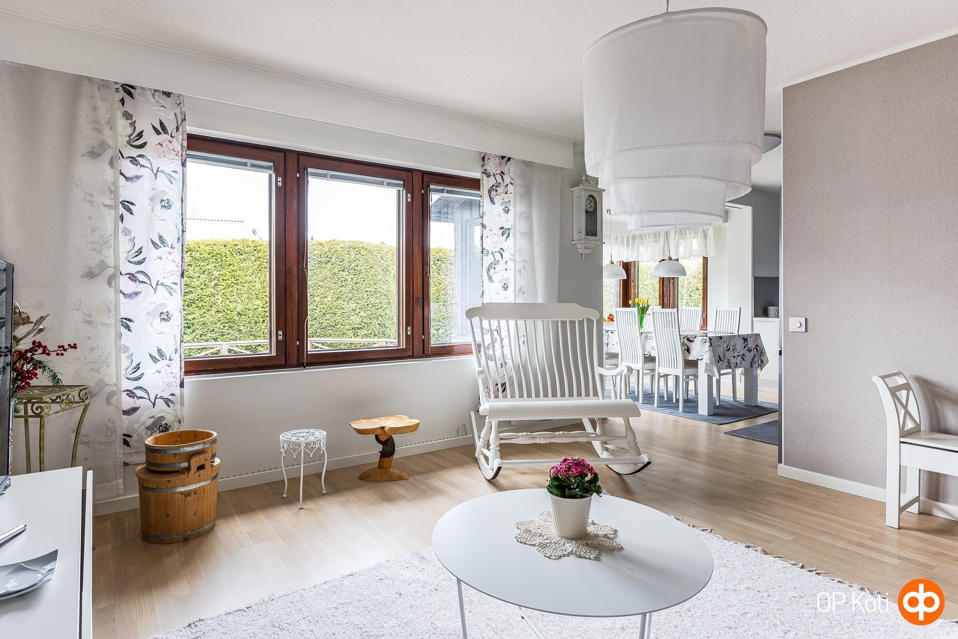 Lähellä ovat kaikki tärkeät palvelut sekä ulkoilureitit. Hyvät kulkuyhteydet ja oma autokatospaikka tuovat arkeen helppoutta. Taloyhtiö on pieni ja yhteisöllinen, ja asuminen on huoletonta omasta rauhasta tinkimättä.Tämä koti on nähtävä paikan päällä, sillä tunnelma välittyy parhaiten astumalla ovesta sisään. Soita ja sovi yksityisesittely! Leena Mähönen, Kiinteistönvälittäjä, YKV,LKV. Puh. 0400415107. Sp. leena.mahonen@op.fi Kiinteistönvälitystä yli 37 vuoden kokemuksella!