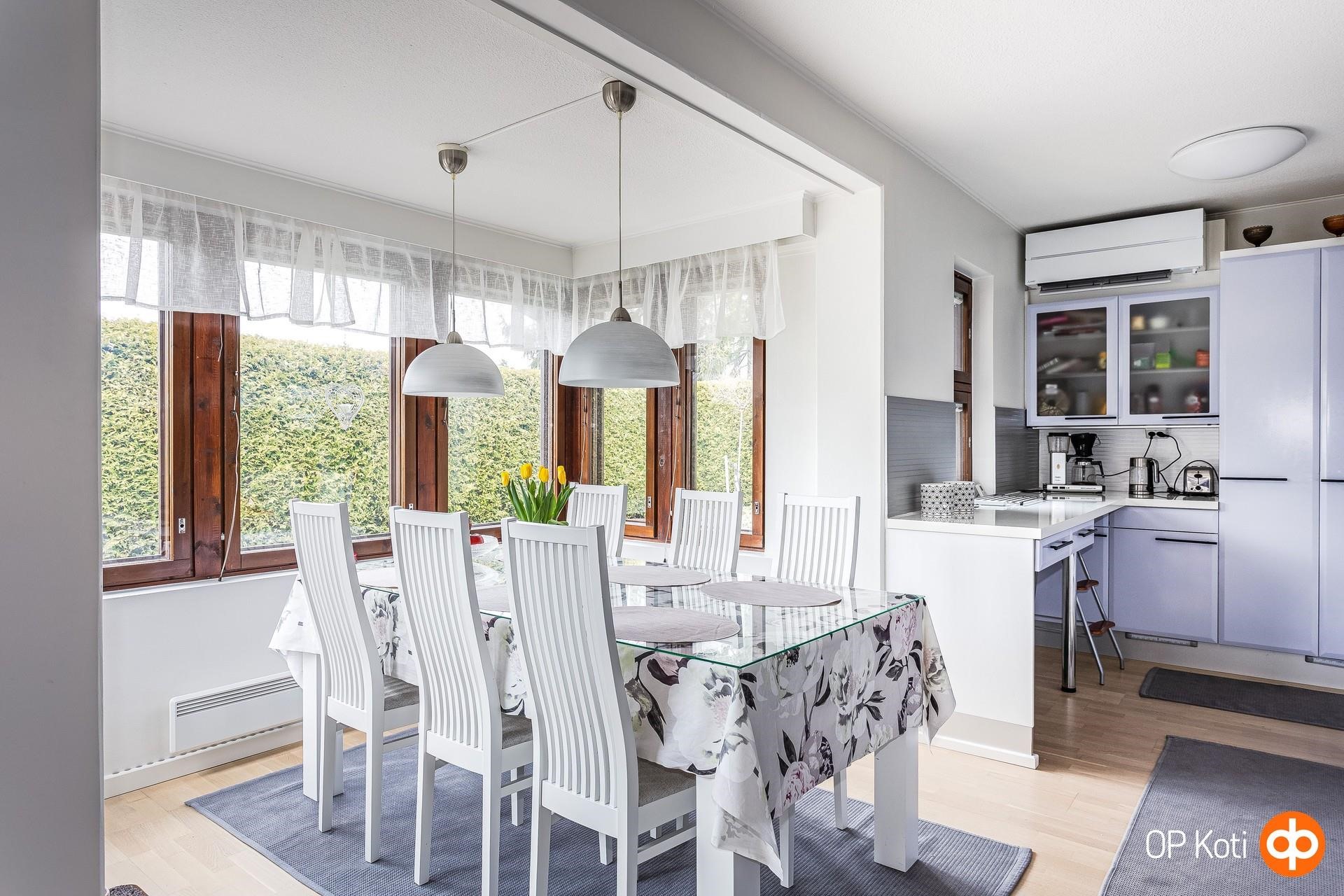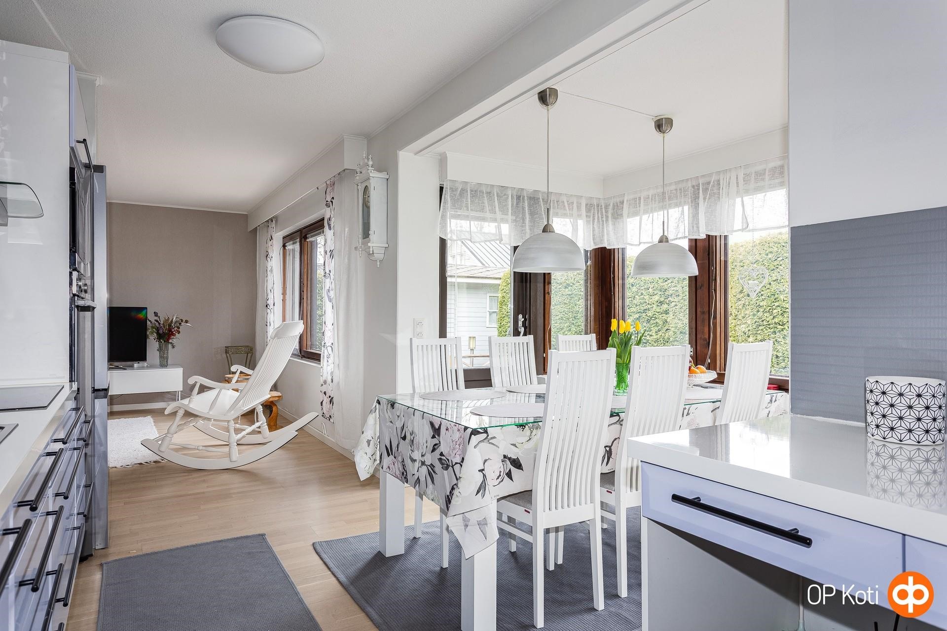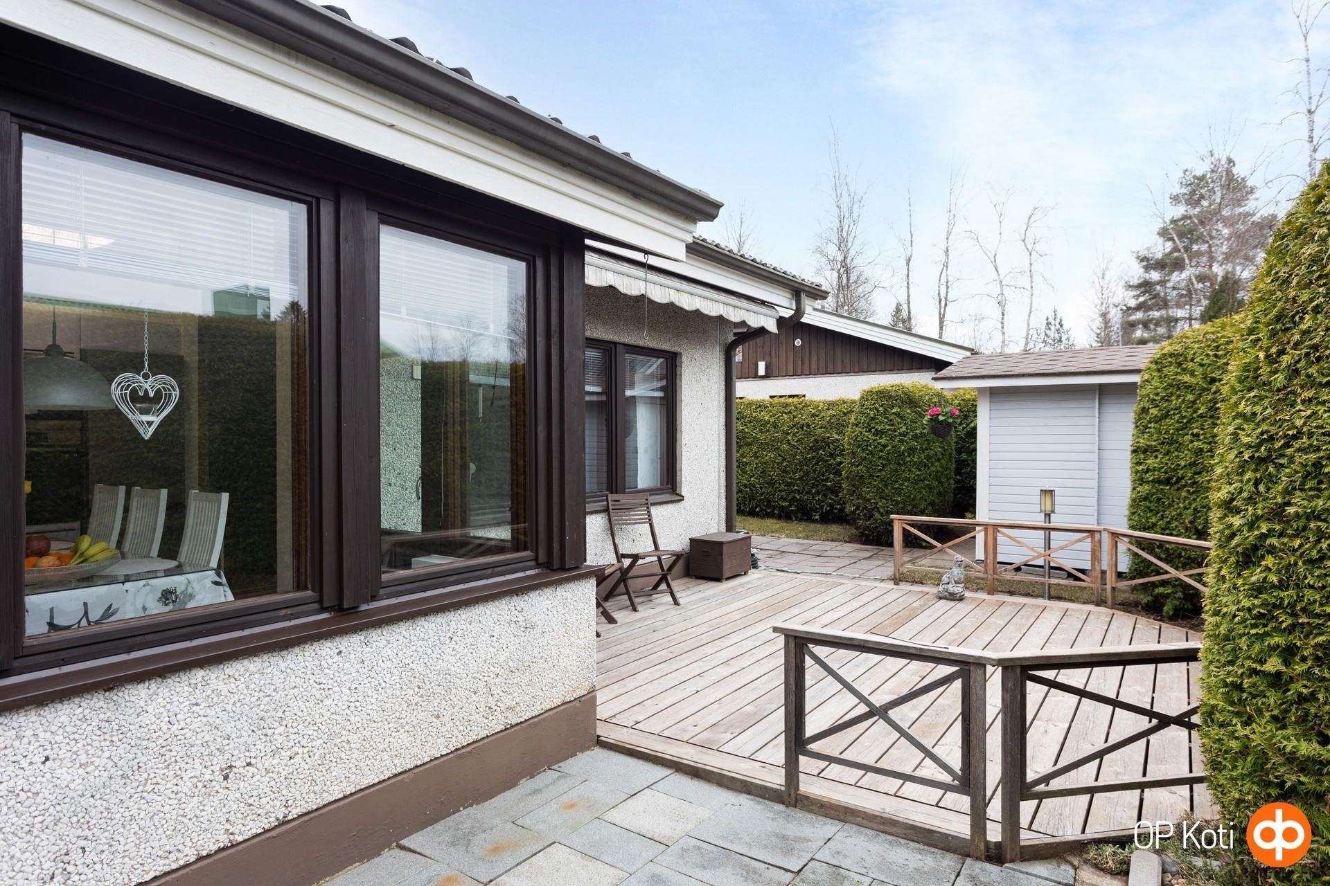 Tervetuloa tutustumaan tähän kauniisti remontoituun erillistaloon Järvenpään Isokydössä. Koti tarjoaa omakotitalomaista asumisen rauhaa ja tilaa, mutta huolettomasti taloyhtiössä. Valoisa, avara ja lämminhenkinen sisustus yhdistettynä laadukkaasti tehtyihin remontteihin tekee tästä kodista todellisen helmen. Toimiva ja kaunis keittiö on kodin sydän. Keittiö on suunniteltu arjen sujuvuuteen ja vaivattomaan kokkailuun. Uusitut kodinkoneet, kauniit kaapistot ja selkeästi mietitty työskentelytila tekevät kokonaisuudesta toimivan ja tyylikkään. Kolme apteekkarinkaappia tarjoavat runsaasti helppokäyttöistä säilytystilaa, joka on aina arvokas lisä modernissa kodissa. Täällä ruoanlaitto on inspiroivaa ja vaivatonta.Sisätilojen vaaleat sävyt ja ajattomat materiaalit luovat ihastuttavan kodikkaan tunnelman. Etelä/länsisuuntainen piha tarjoaa yksityisyyttä, kauneutta ja oleskelutilaa moniin hetkiin. Runsaat istutukset, hortensiat, ruusupensaat, alppiruusut, perennat, tuija-aita ja huolitellut yksityiskohdat tekevät pihasta kuin pienen oman puutarhan. Upea laadukkaasta lehtikuusesta rakennettu terassi kutsuu nauttimaan kesäpäivistä ja kiireettömistä illoista. Piha on kirjaimellisesti viimeisen päälle tehty kokonaisuus, joka hurmaa jokaisen vierailijan.