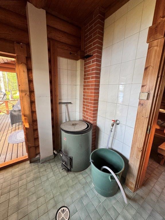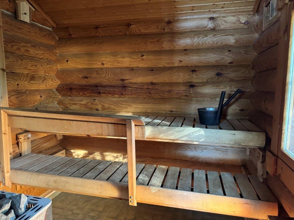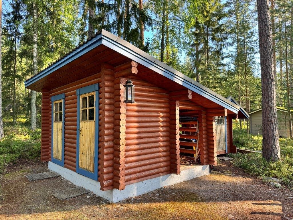 Rannassa sijaitsee tunnelmallinen pyöröhirsinen rantasauna, jonka tuvassa on varaava takka. Saunaillat järvimaisemassa kruunaavat mökkielämyksen. Pihapiirissä on lisäksi varastorakennus kahdella lukittavalla varastolla ja puuliiterillä.