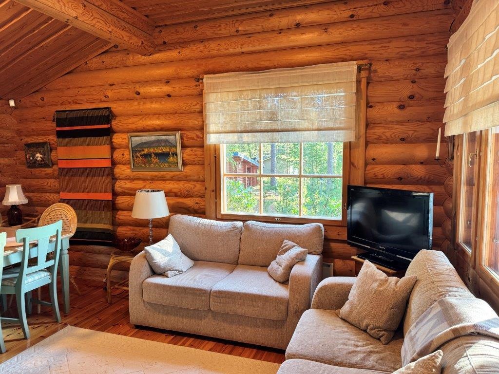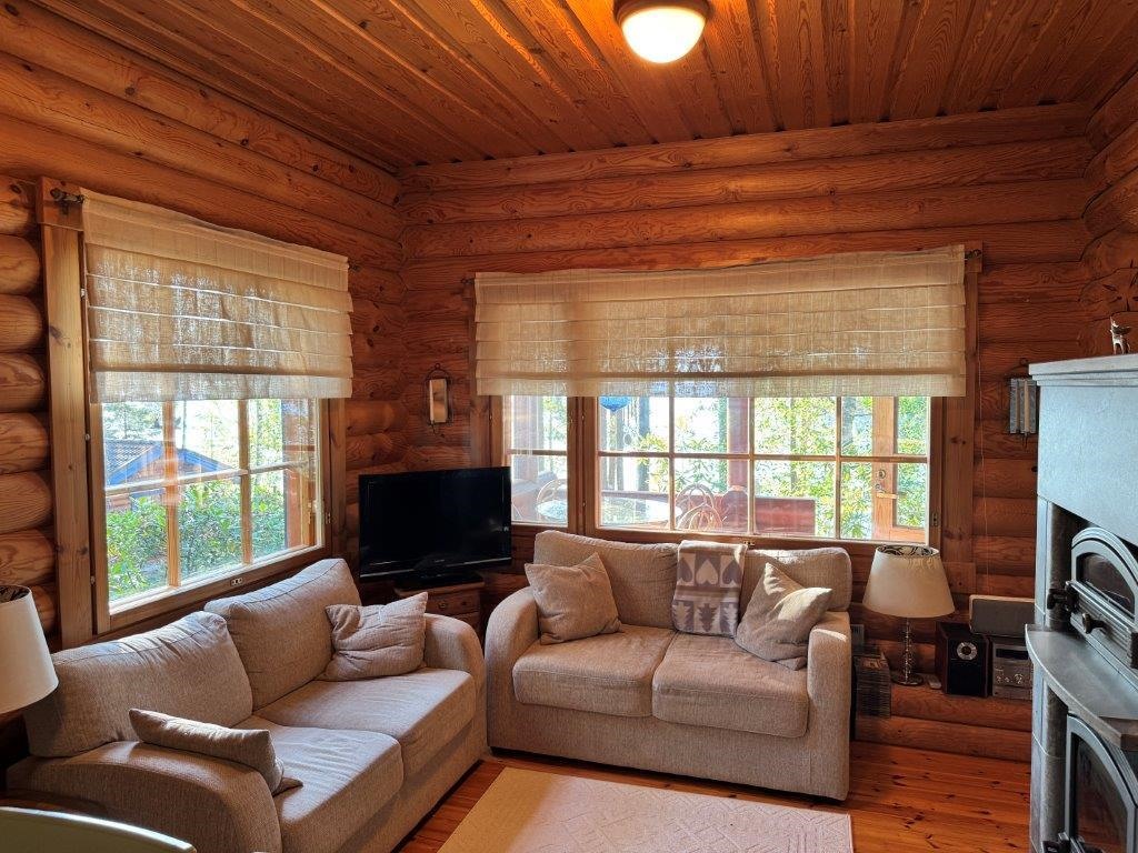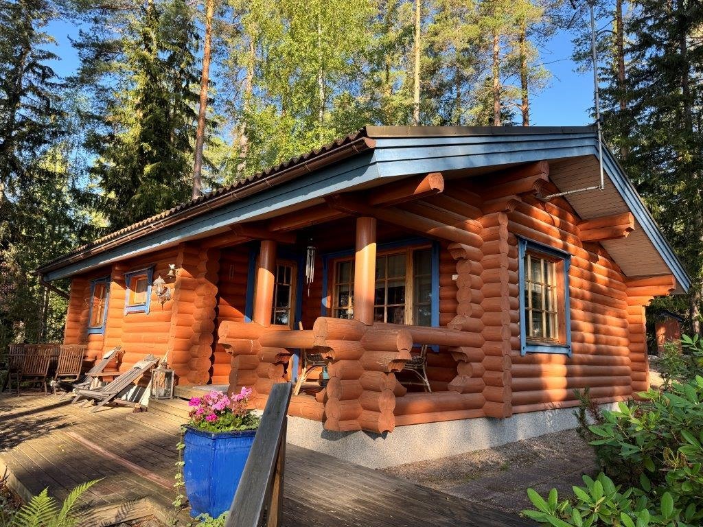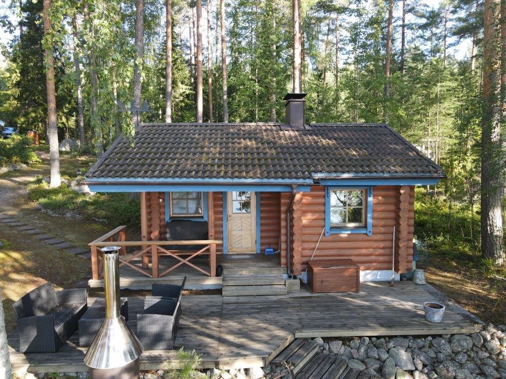 Myynnissä laadukas Honkarakenteen pyöröhirsimökki Päijänteen rannalla Kuhmoisissa. Tämä talviasuttava rantamökki tarjoaa viihtyisät puitteet ympärivuotiseen käyttöön kirkasvetisen Päijänteen rannalla.