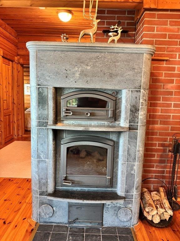 - Puu. Varaava takka ja ilmalämpöpumppu.