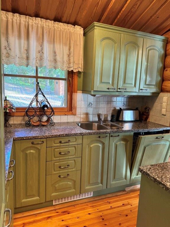 - Puukiuas, erillinen wc, suihku, peilikaappi, allaskaappi, kiinteät valaisimet, Pata.