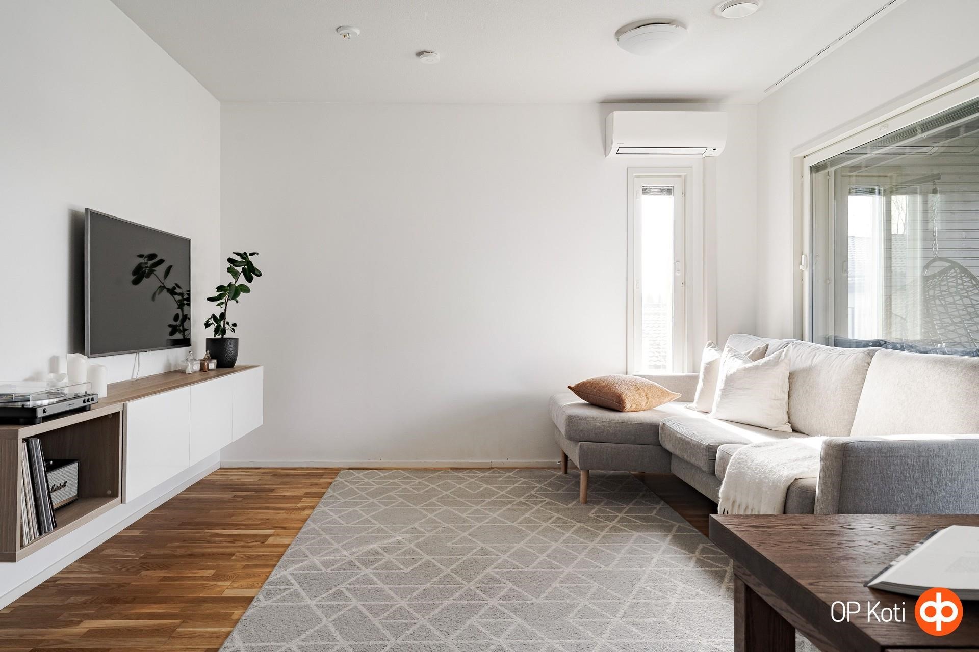 Lisämukavuutta arkeen tuo ilmalämpöpumppu, joka huolehtii mukavasta lämpötilasta läpi vuoden. Yhtiöjärjestyksen mukaan huoneisto käsittää saunan, mutta tämän edellinen osakas päätti korvata vaatehuoneella rakennusvaiheessa.