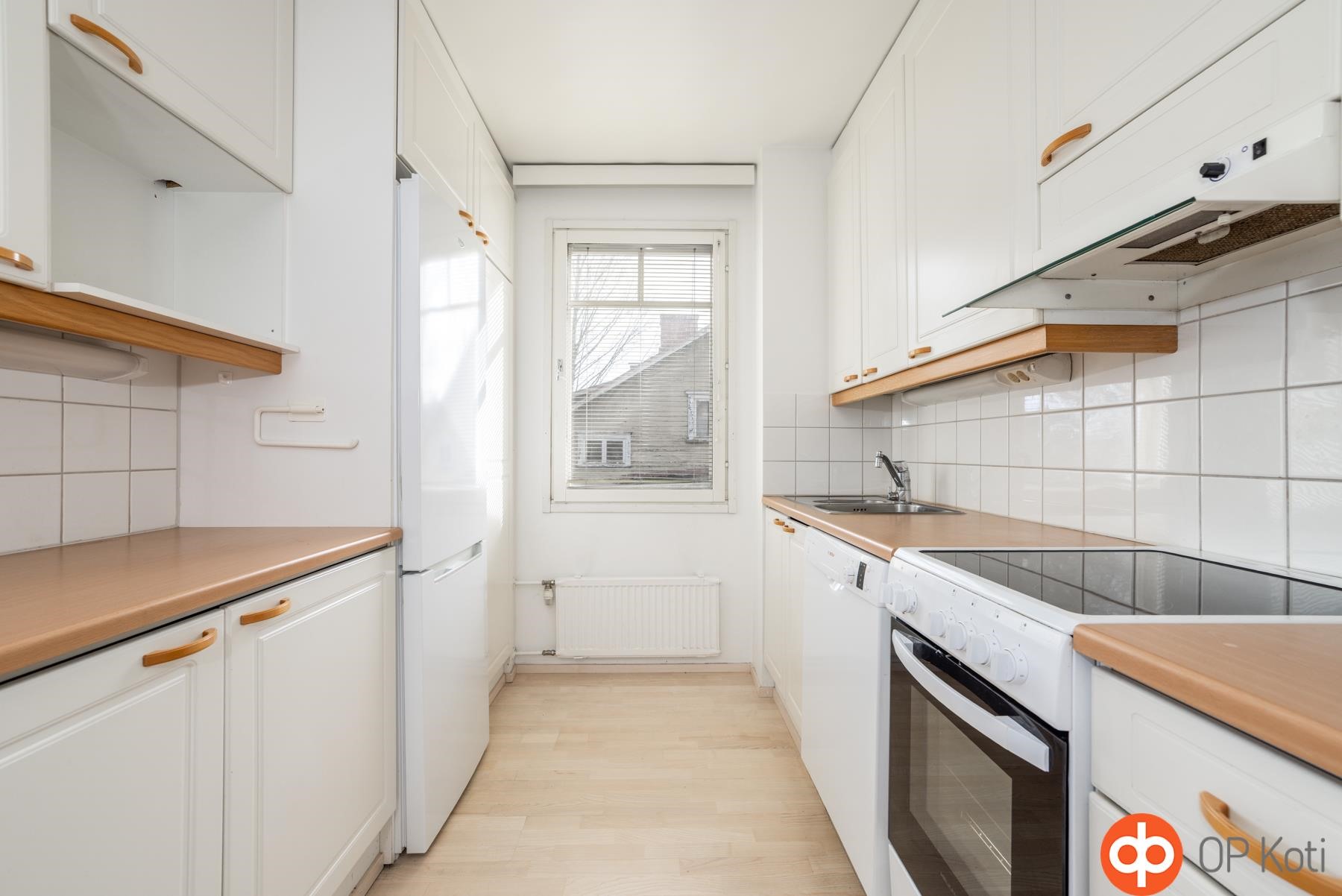 - Jääkaappipakastin, keraaminen liesi, liesituuletin, astianpesukone, kiinteät valaisimet.