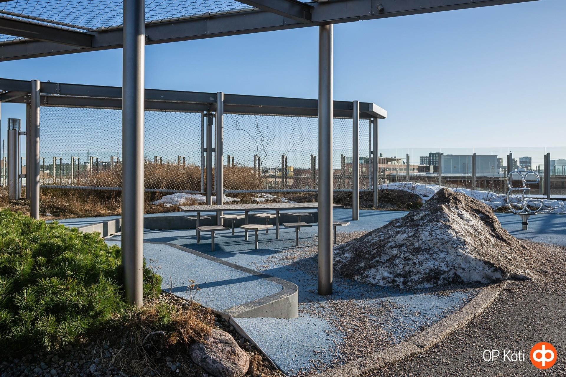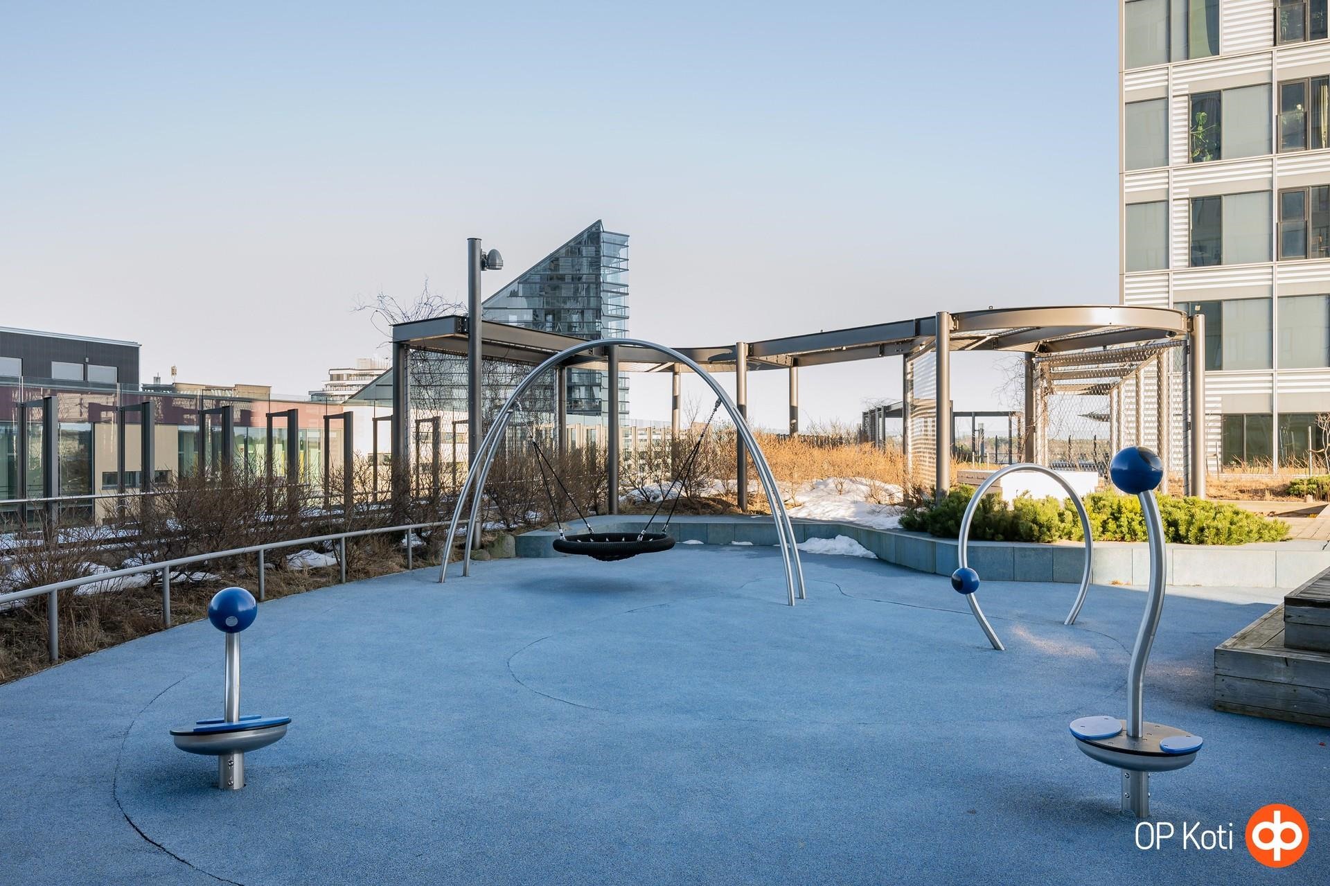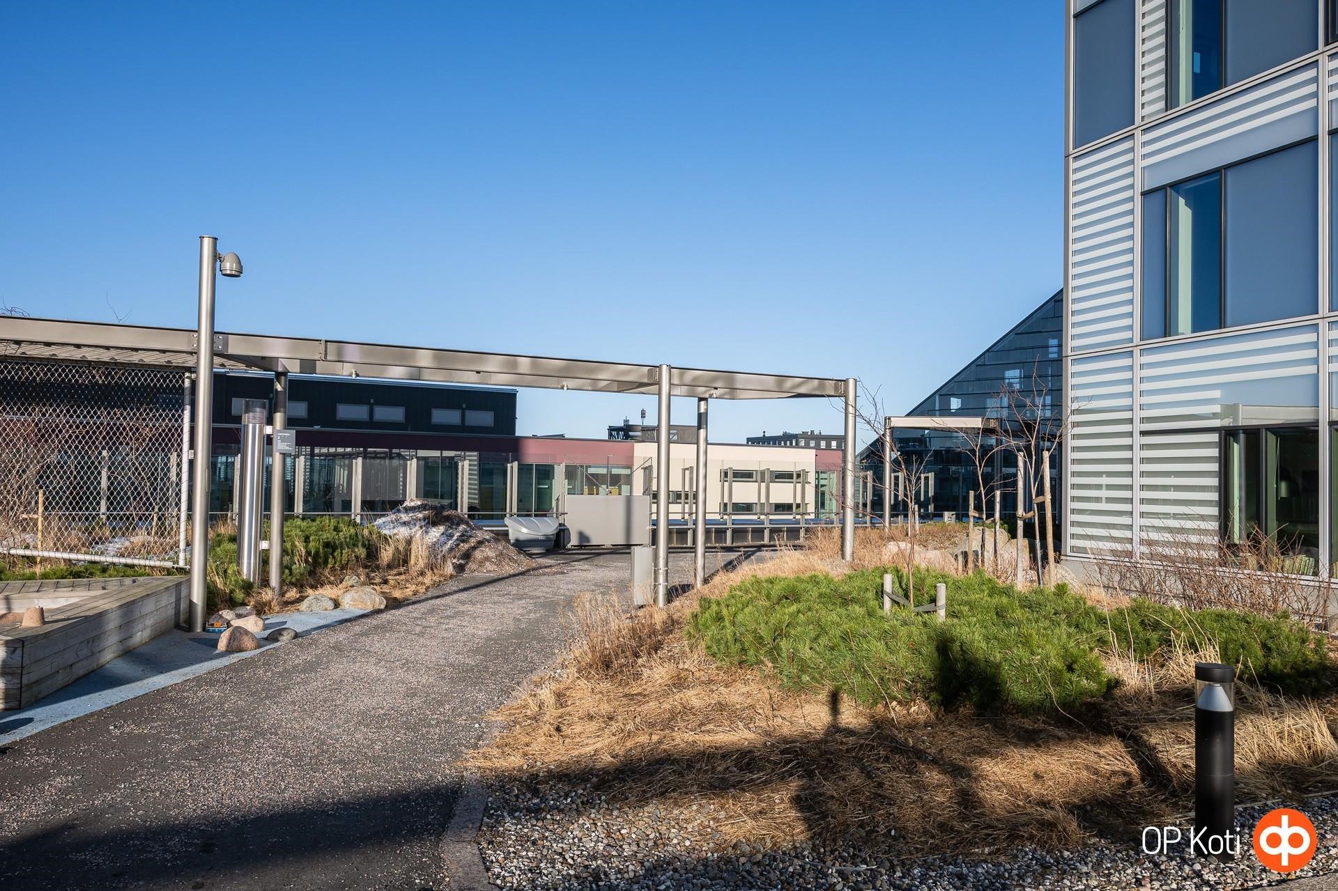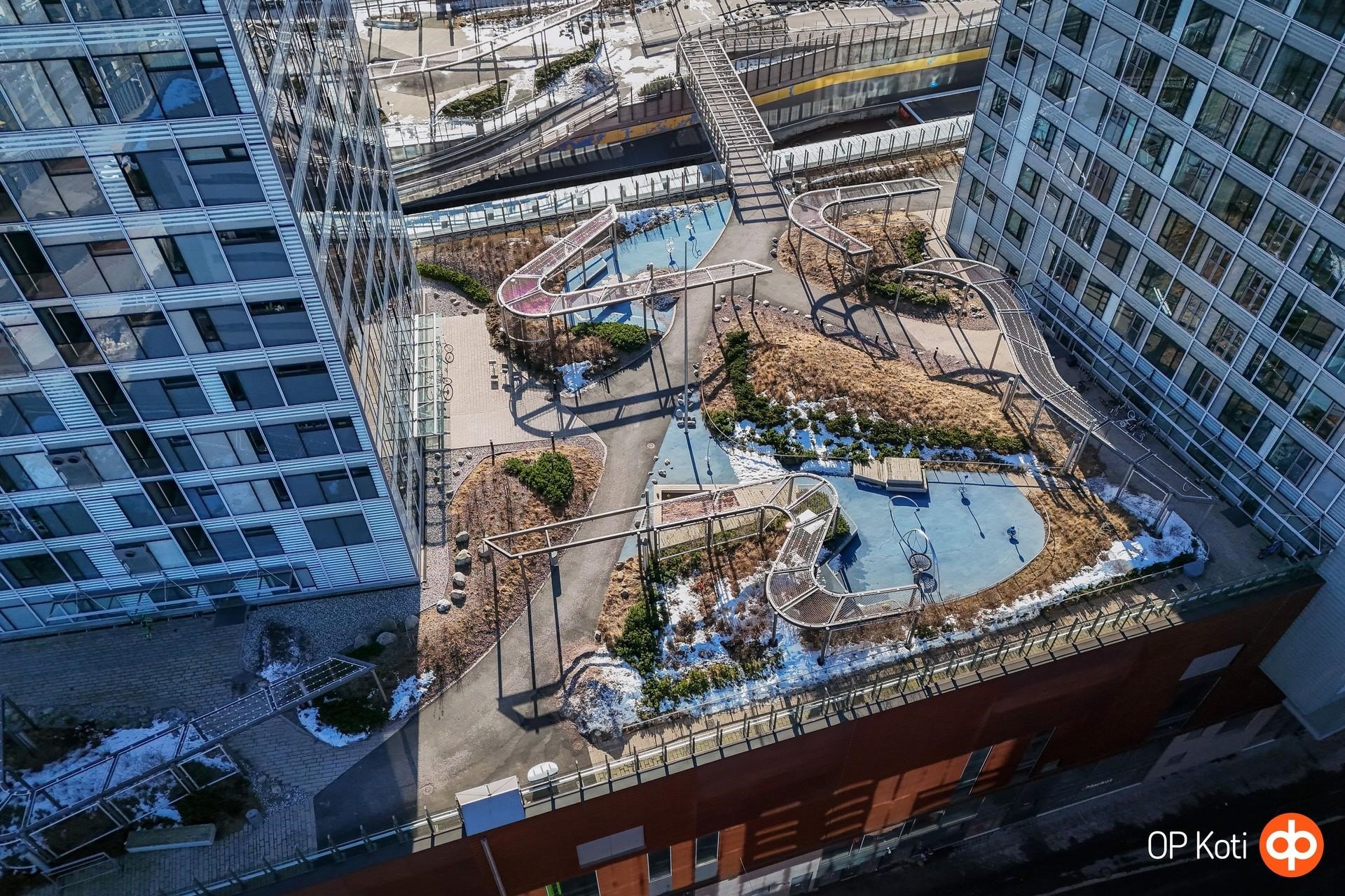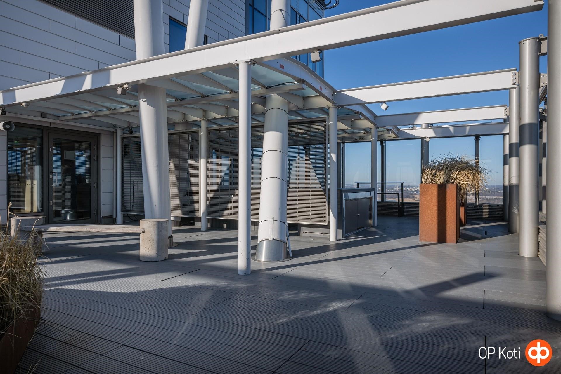 Taloyhtiön puitteet nostavat asumisen aivan omalle tasolleen. Upeat kattoterassit porealtaineen tarjoavat paikan rentoutumiseen ja ehkäpä kaupungin hienoimpien maisemien ihailuun korkealta kaiken yläpuolella. Laadukkaat saunatilat ja oma kuntosali tuovat arkeen luksusta ja helppoutta. Lisäksi yhtiön palvelut ja yhteiset tilat tekevät asumisesta sujuvaa ja huolettoman vaivatonta.
