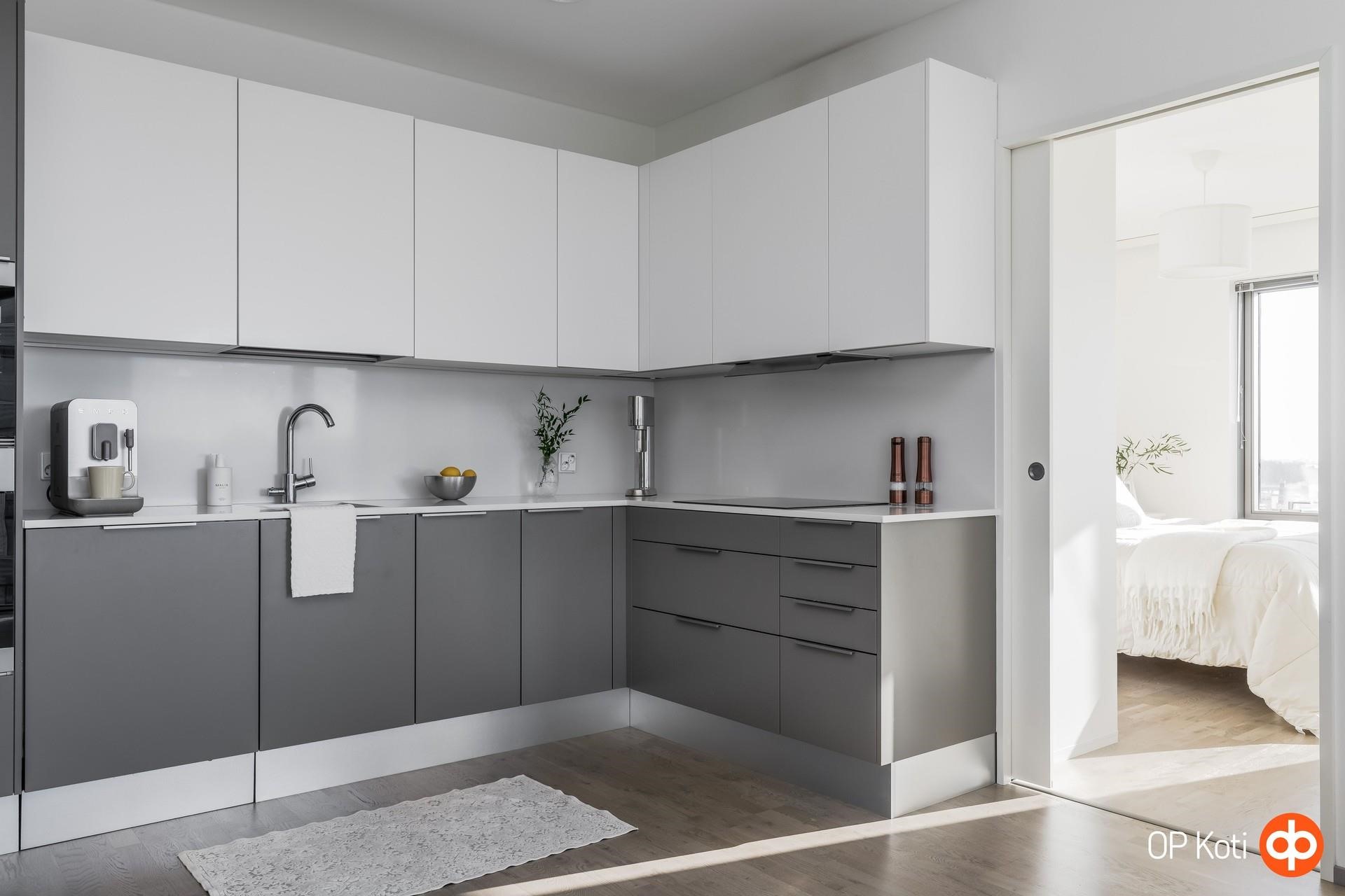 Olohuone ja keittiö muodostavat avaran ja sujuvan kokonaisuuden, jossa arki toimii vaivattomasti. Molemmat makuuhuoneet ovat sopivan kokoisia ja helposti kalustettavia. Kylpyhuone on moderni sekä käytännöllinen kokonaisuus, joka tarjoaa miellyttävän yhdistelmän toimivuutta ja viihtyisyyttä.
