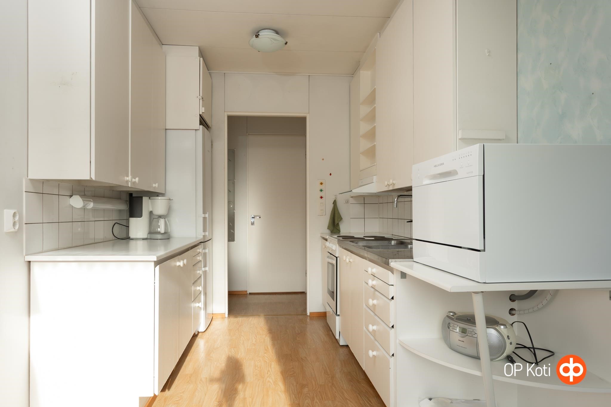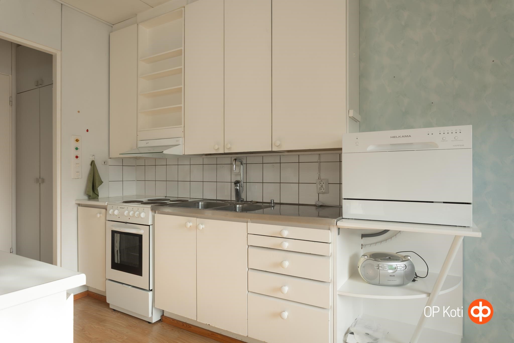 - Jääkaappipakastin, sähköliesi, liesituuletin, kaapistot, kiinteät valaisimet.