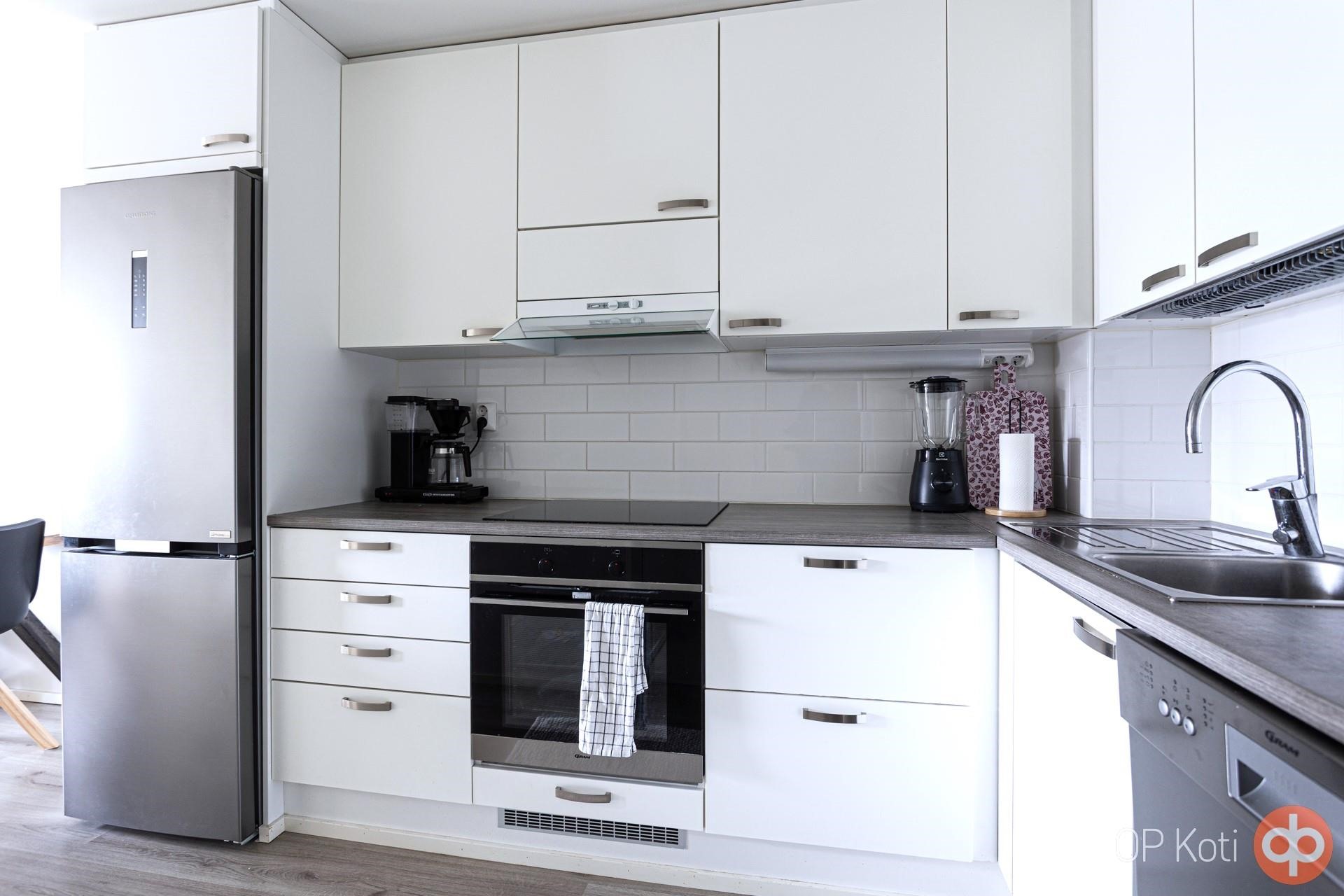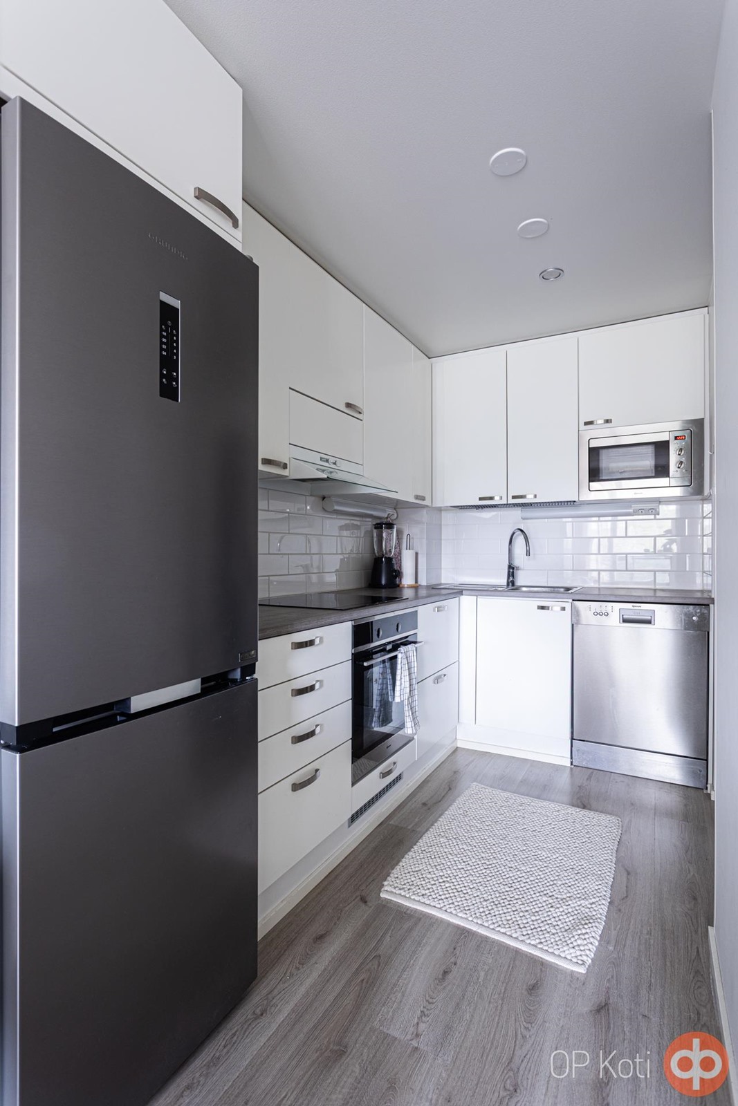 - Jääkaappipakastin 2025, keraaminen liesi, liesituuletin, mikroaaltouuni, astianpesukone, kiinteät valaisimet.