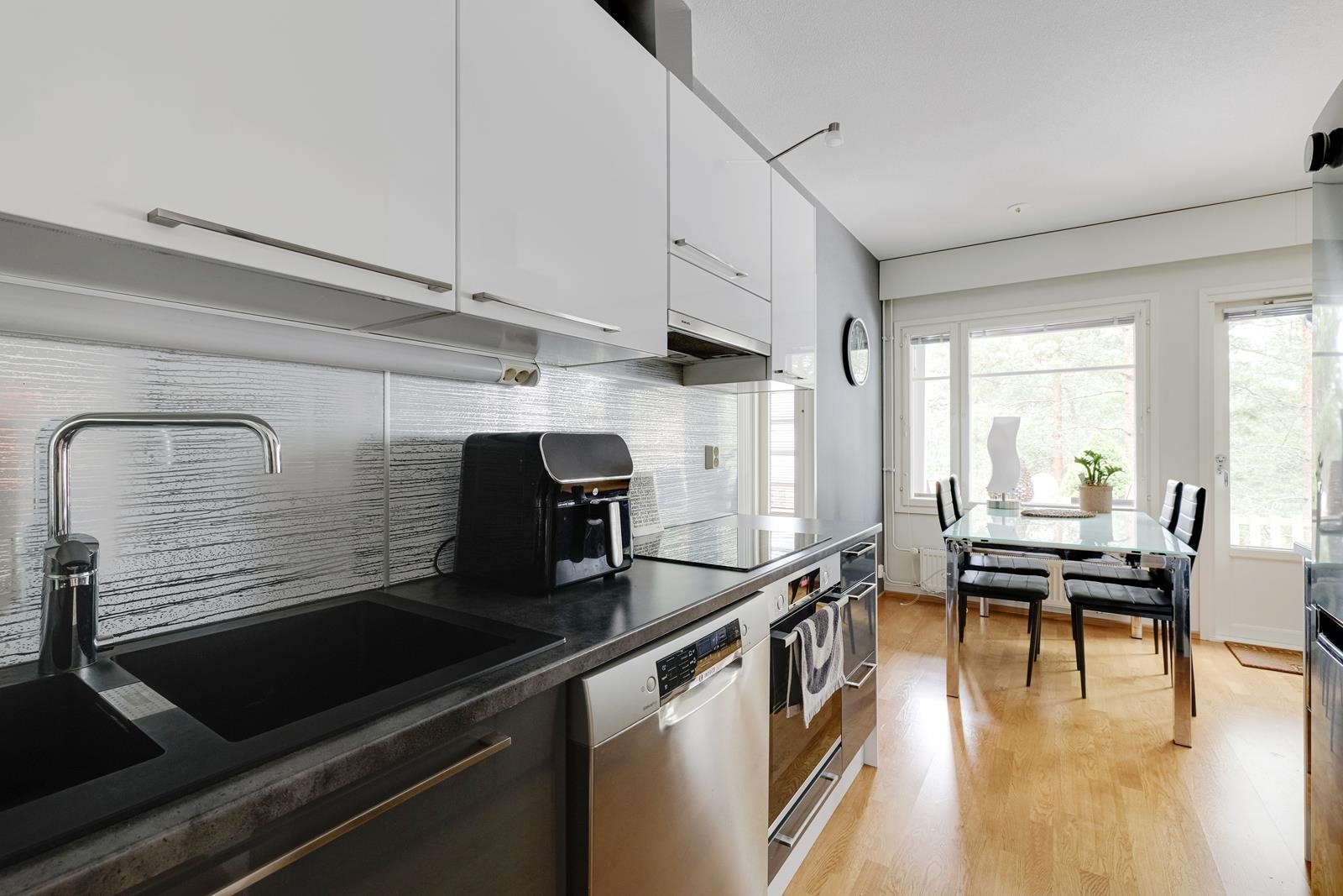 Tähän kauniiseen ja valoisaan kotiin voit muuttaa ilman remonttihuolia! Tämän kodin sydän on upea keittiö.
