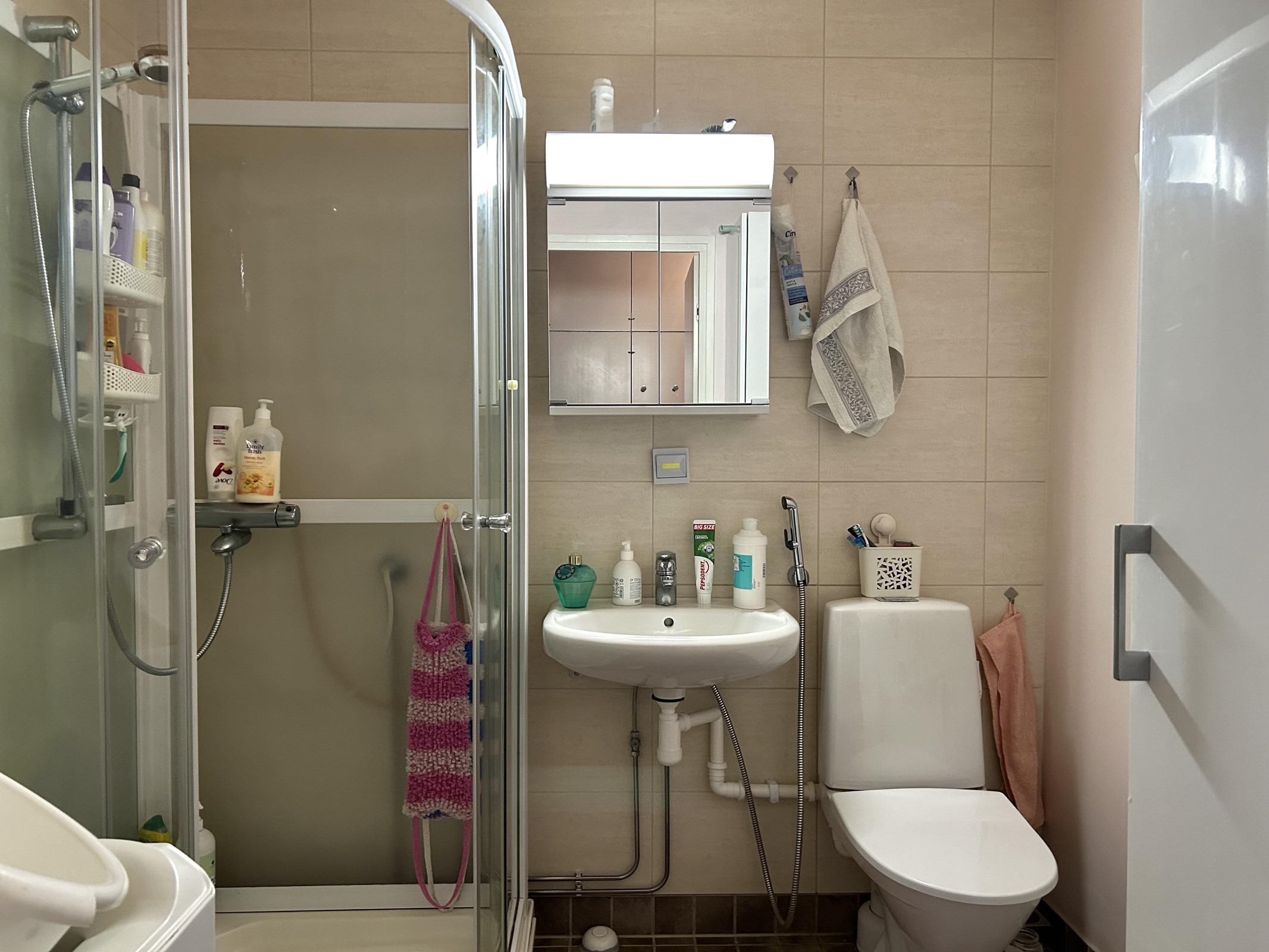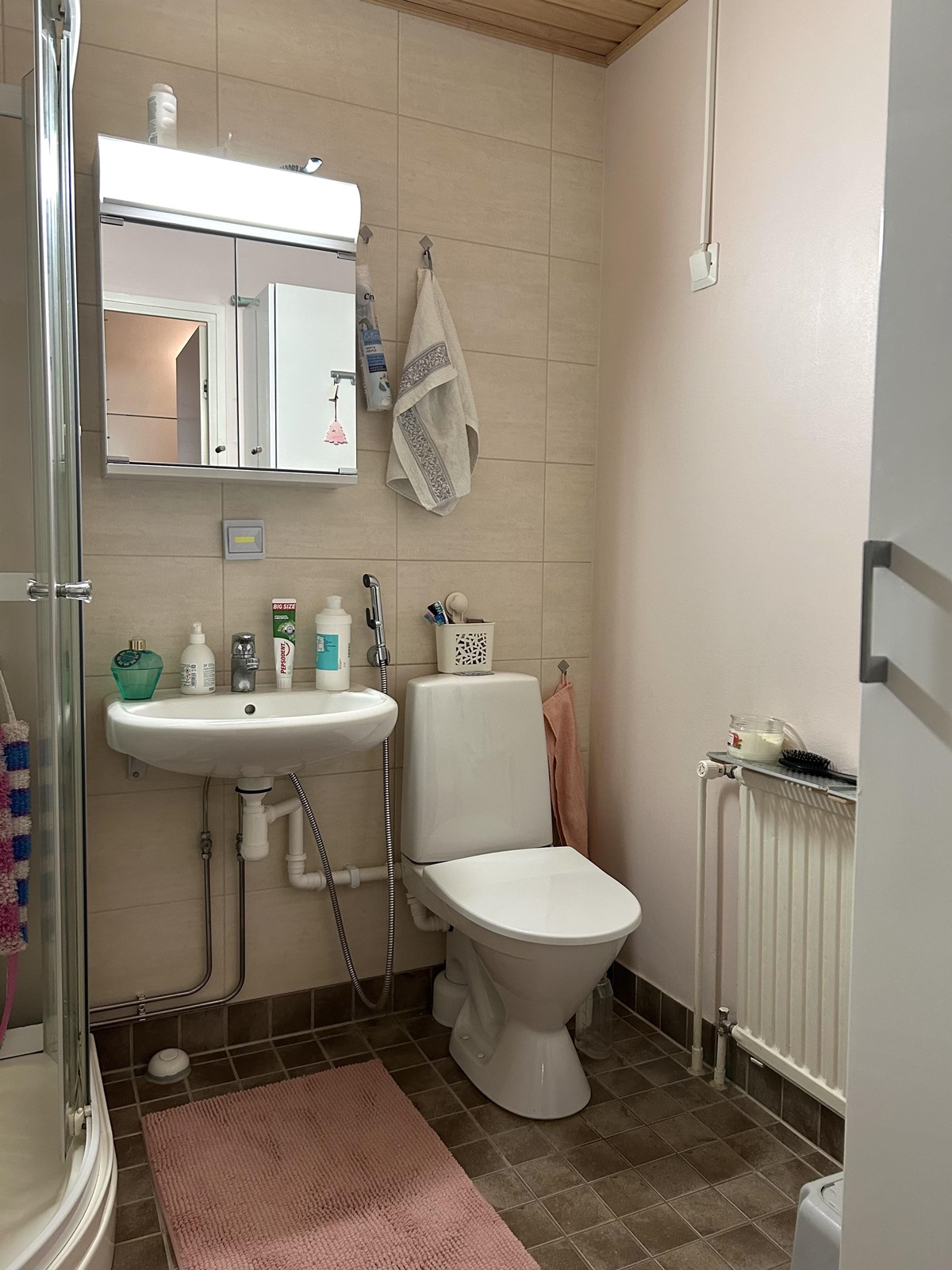 - Kylpyhuone, suihkukaappi, peilikaappi, pesukoneliitäntä, lattialämmitys, kiinteät valaisimet. Kylpyhuone remontoitu 2015