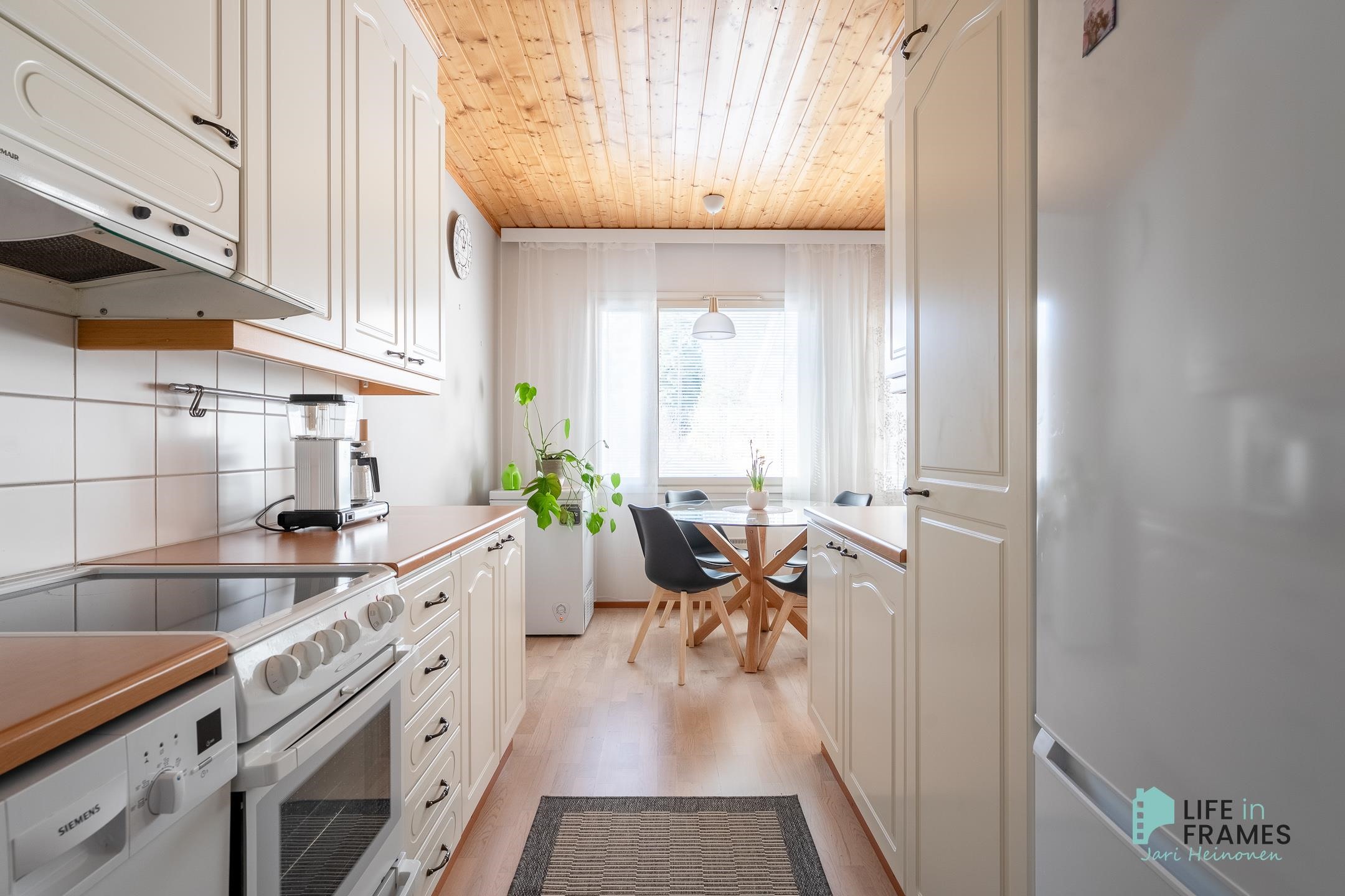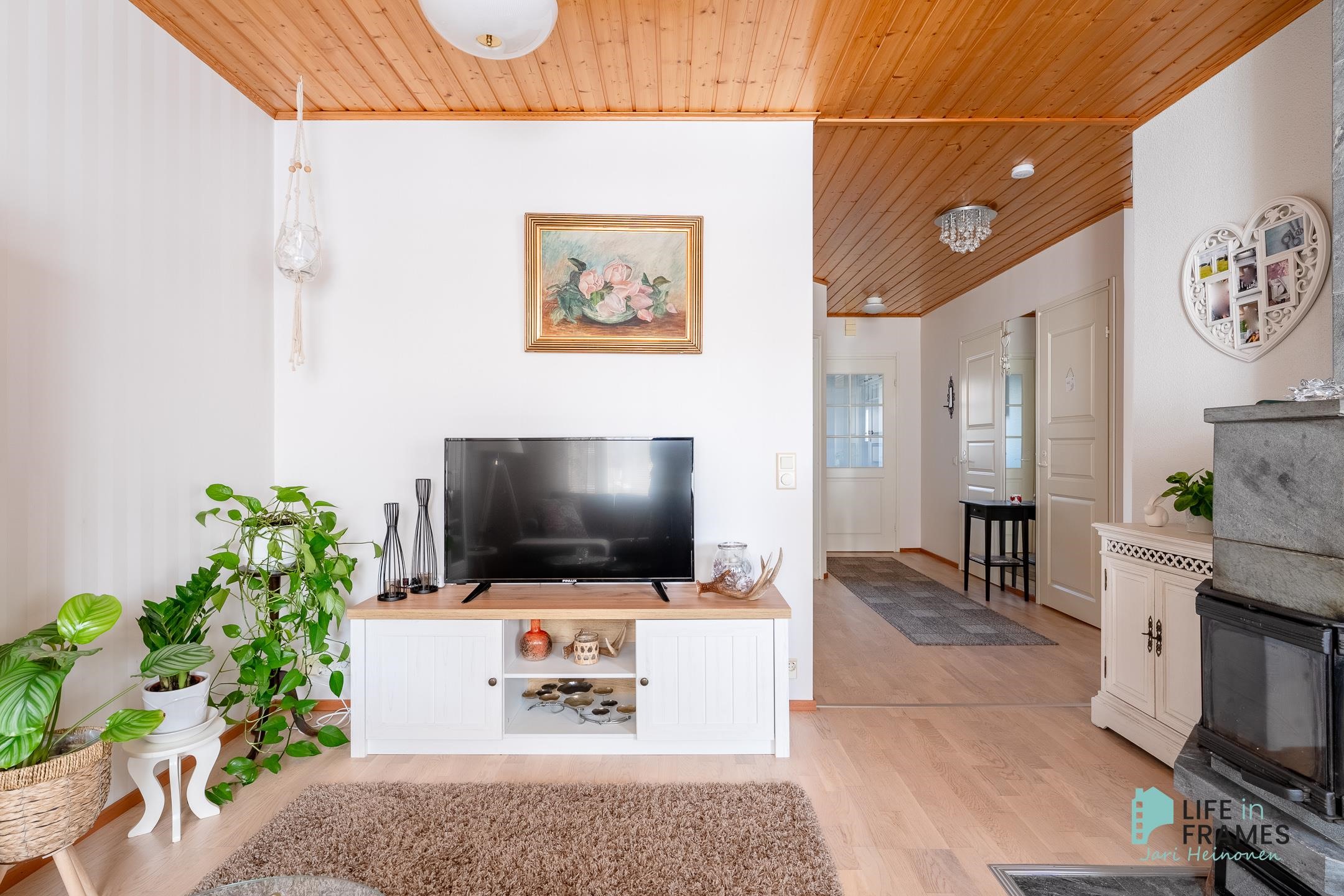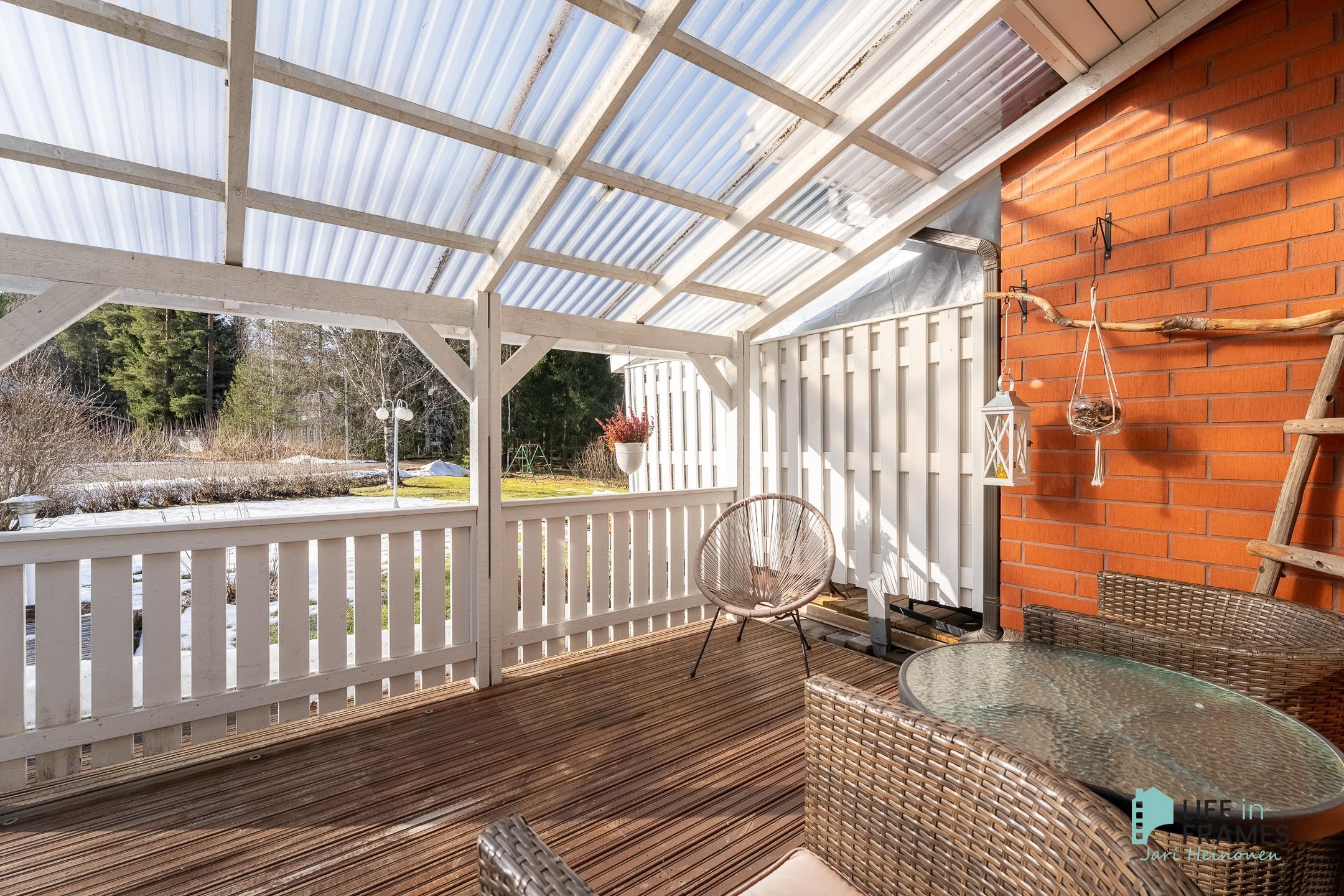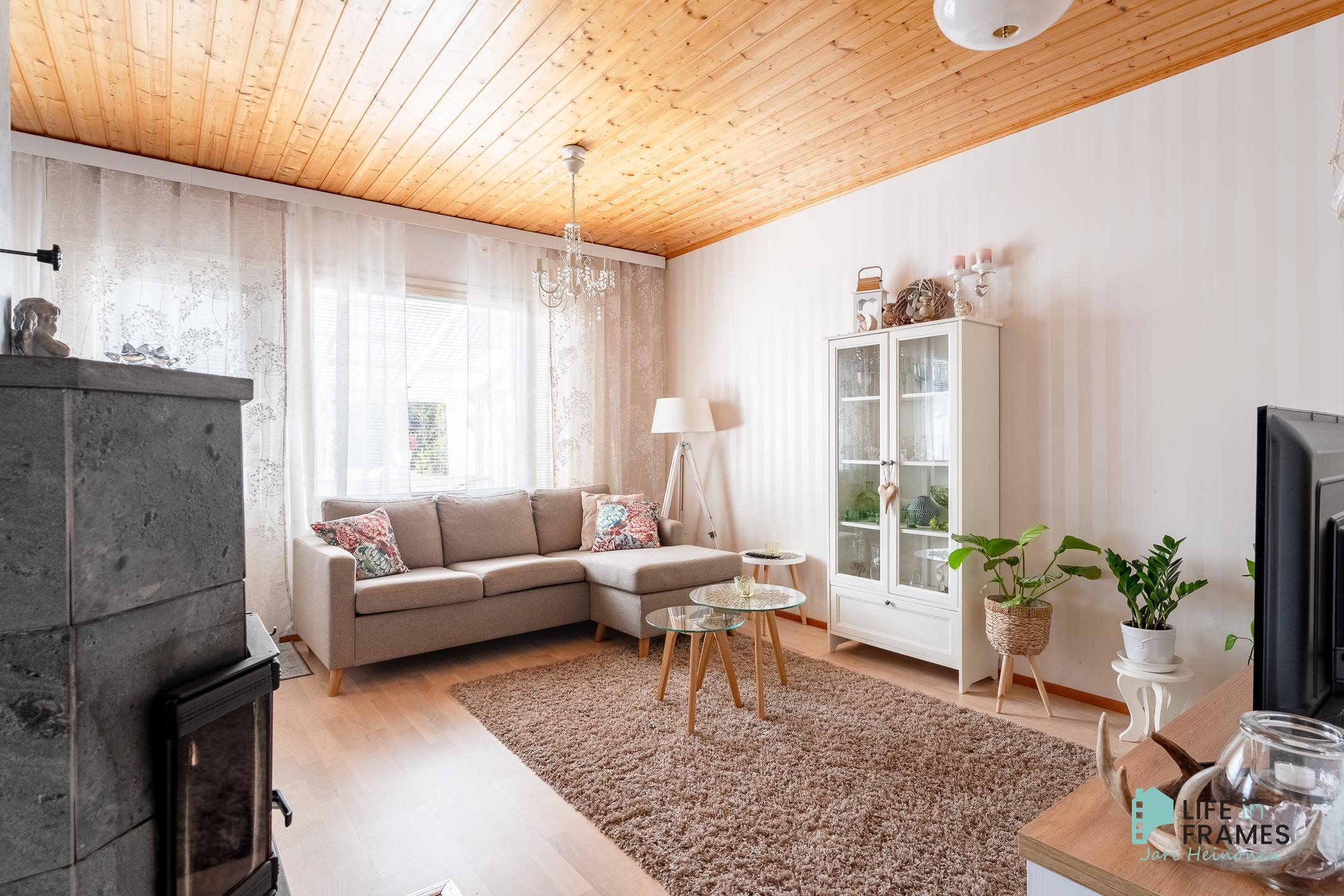 Tässä vuonna 1998 valmistuneessa rivitaloasunnossa on hyvä pohjaratkaisu - valoisat huoneet, paljon säilytystilaa ja jokaiselle toiminnolle omat tilat. Keittiö on siisti ja nykyaikainen ja ruokapöydälle on oma paikka ikkunan ääressä. Olohuone on keittiön ja ruokailutilan yhteydessä ja oleskelutilat jatkuvat reilunkokoiselle katetulle terassille. Olohuoneen varaava takka tuo sekä lämpöä että tunnelmaa asuntoon. Aamuauringon puolella sijaitsevan makuuhuoneen yhteydessä on hyvänkokoinen vaatehuone ja lisää säilytystilaa on myös eteisen kaapistoissa. Omassa saunassa kelpaa rentoutua päivän päätteeksi. Asuntoon kuuluu myös autokatospaikka ja ulkovarasto.