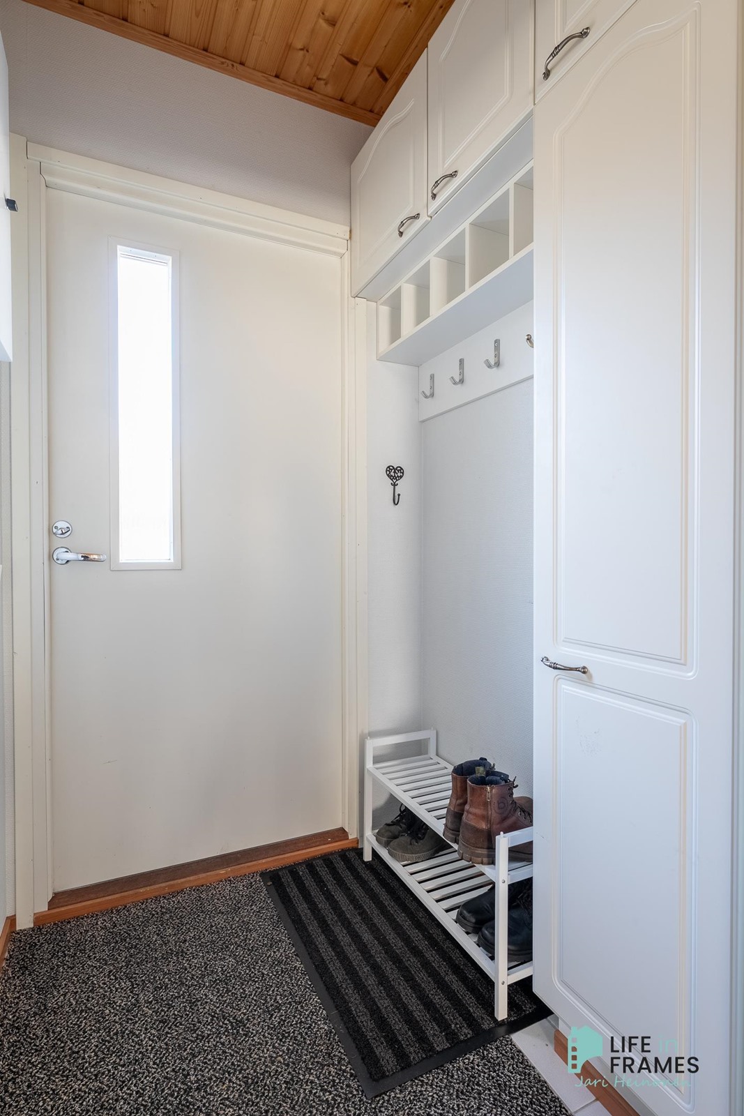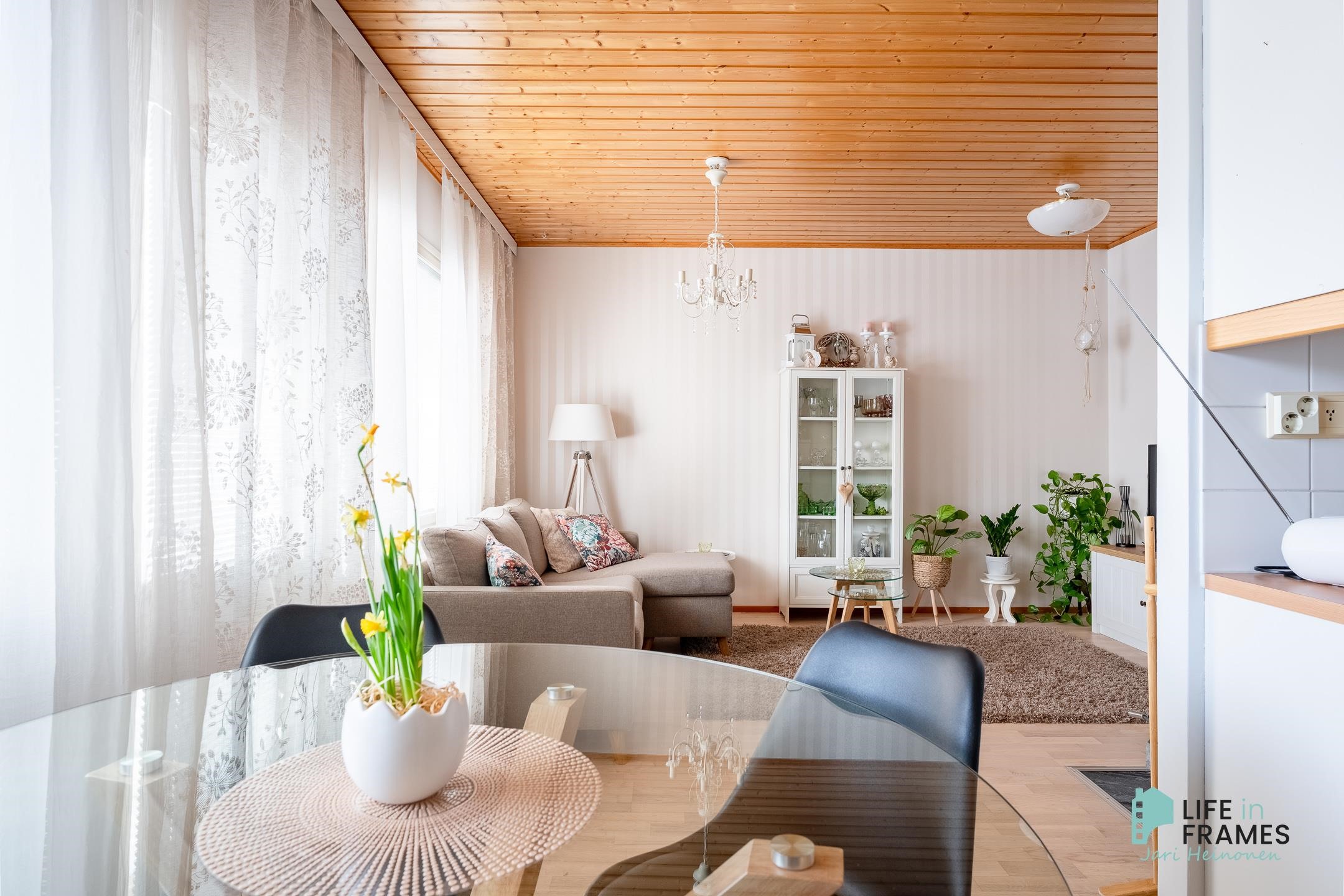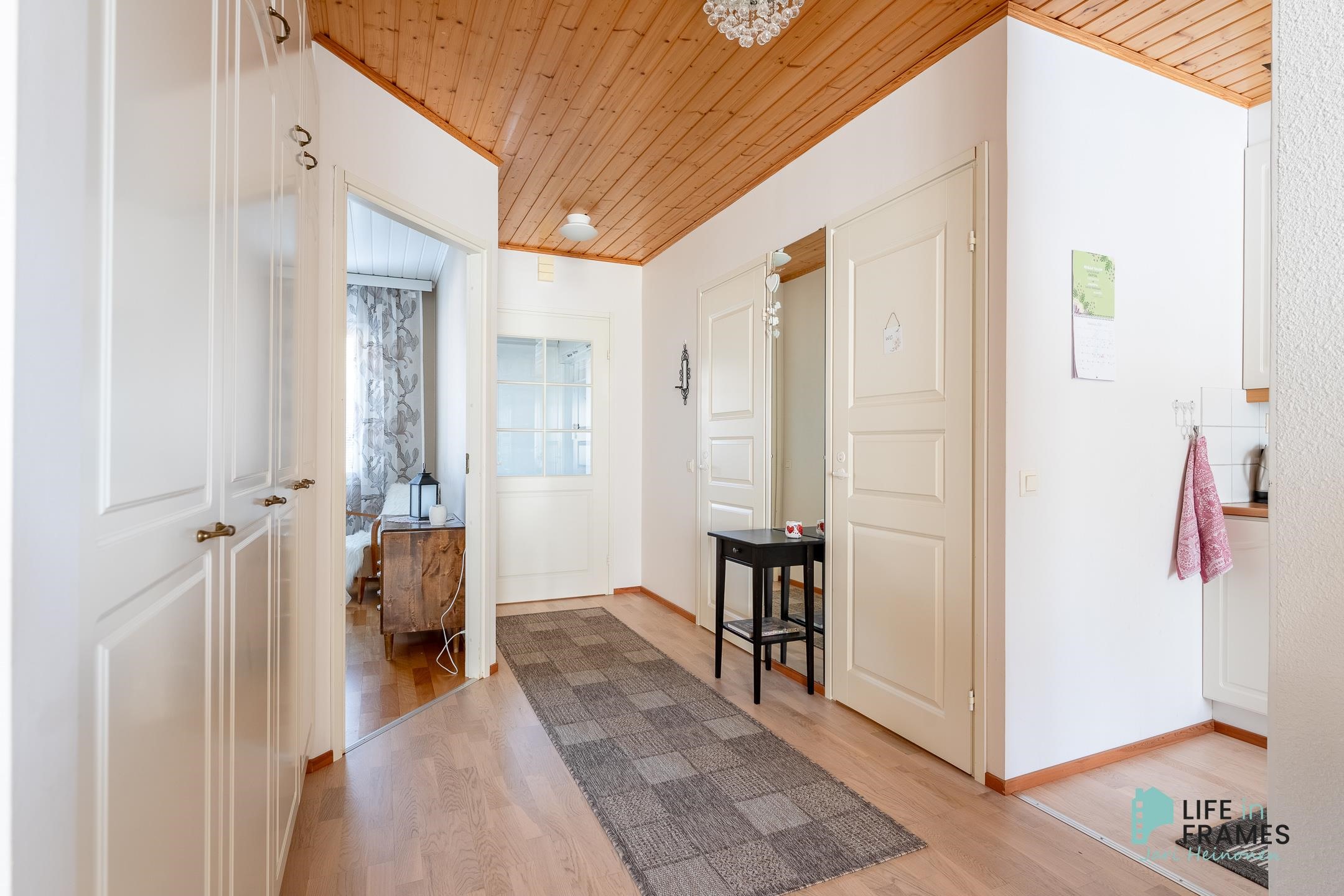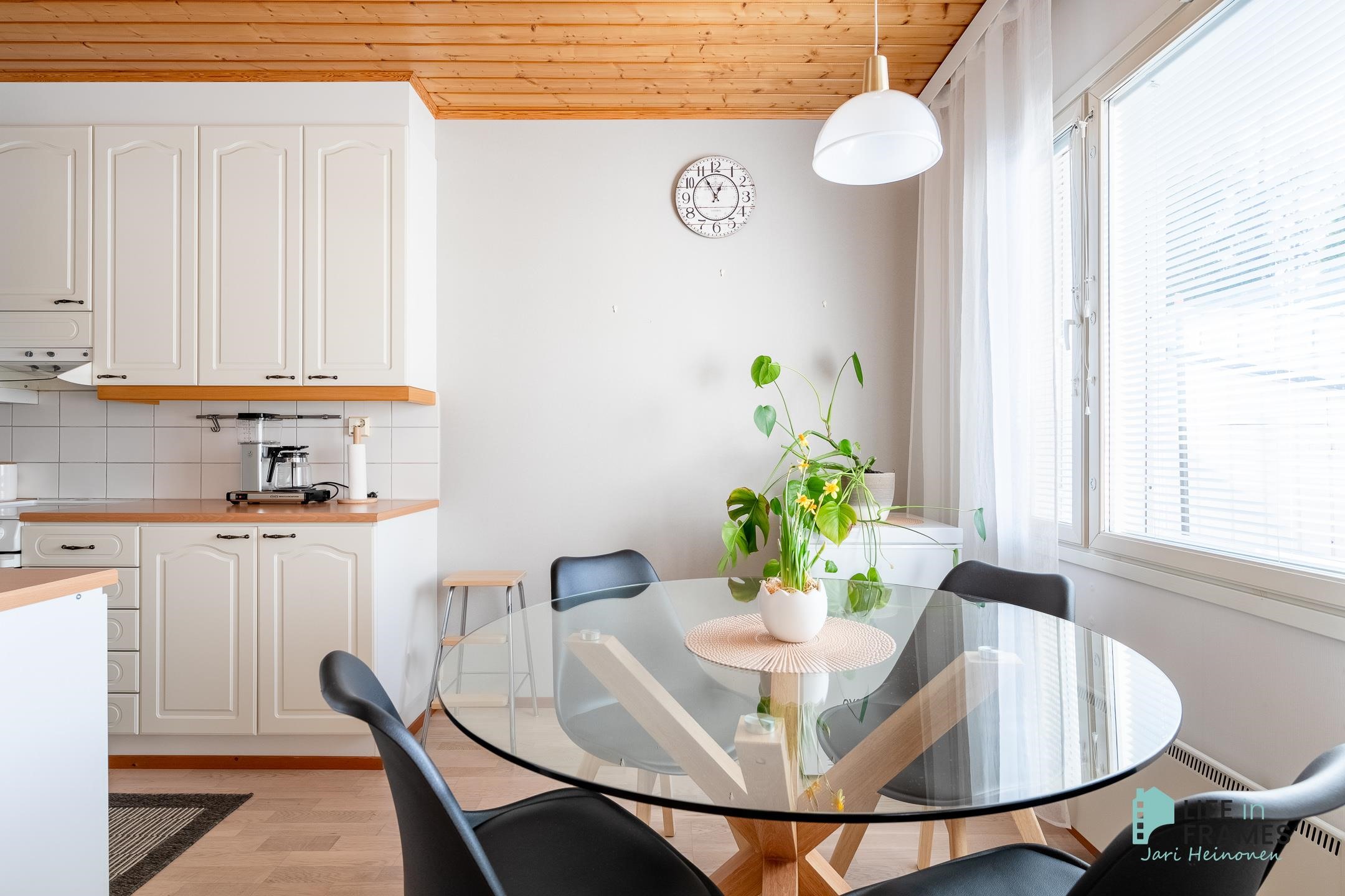 Tässä vuonna 1998 valmistuneessa rivitaloasunnossa on hyvä pohjaratkaisu - valoisat huoneet, paljon säilytystilaa ja jokaiselle toiminnolle omat tilat. Keittiö on siisti ja nykyaikainen ja ruokapöydälle on oma paikka ikkunan ääressä. Olohuone on keittiön ja ruokailutilan yhteydessä ja oleskelutilat jatkuvat reilunkokoiselle katetulle terassille. Olohuoneen varaava takka tuo sekä lämpöä että tunnelmaa asuntoon. Aamuauringon puolella sijaitsevan makuuhuoneen yhteydessä on hyvänkokoinen vaatehuone ja lisää säilytystilaa on myös eteisen kaapistoissa. Omassa saunassa kelpaa rentoutua päivän päätteeksi. Asuntoon kuuluu myös autokatospaikka ja ulkovarasto.