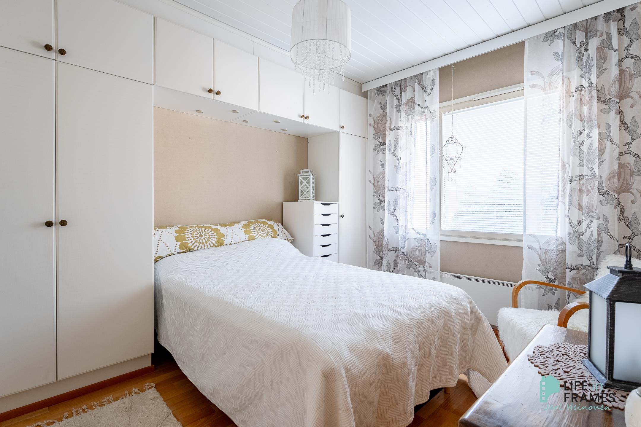 Huonetilat: seinät: tapetti, lattia: parketti tai laminaatti.