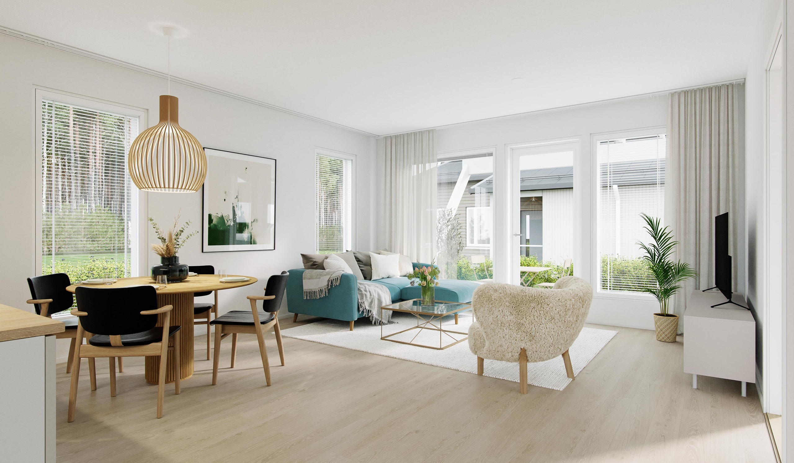 Lämmitysmuotona toimii energiatehokas maalämpö, ja vesikiertoinen lattialämmitys takaa miellyttävän tasaisen lämmön. Asuntojen olohuoneissa on lisäksi takkavaraus. Suuret, lähes lattiaan asti ulottuvat ikkunat tuovat koteihin valoa ja avaruutta. Jokaisella asunnolla on terassi, johon on mahdollista saada valokate lisätyönä. Huoneistojen sisäänkäynnin yhteydessä on oma ulkovarasto. Jokaisessa kodissa on myös käytännöllinen arkieteinen, joka tuo arkeen selkeyttä ja sujuvuutta.