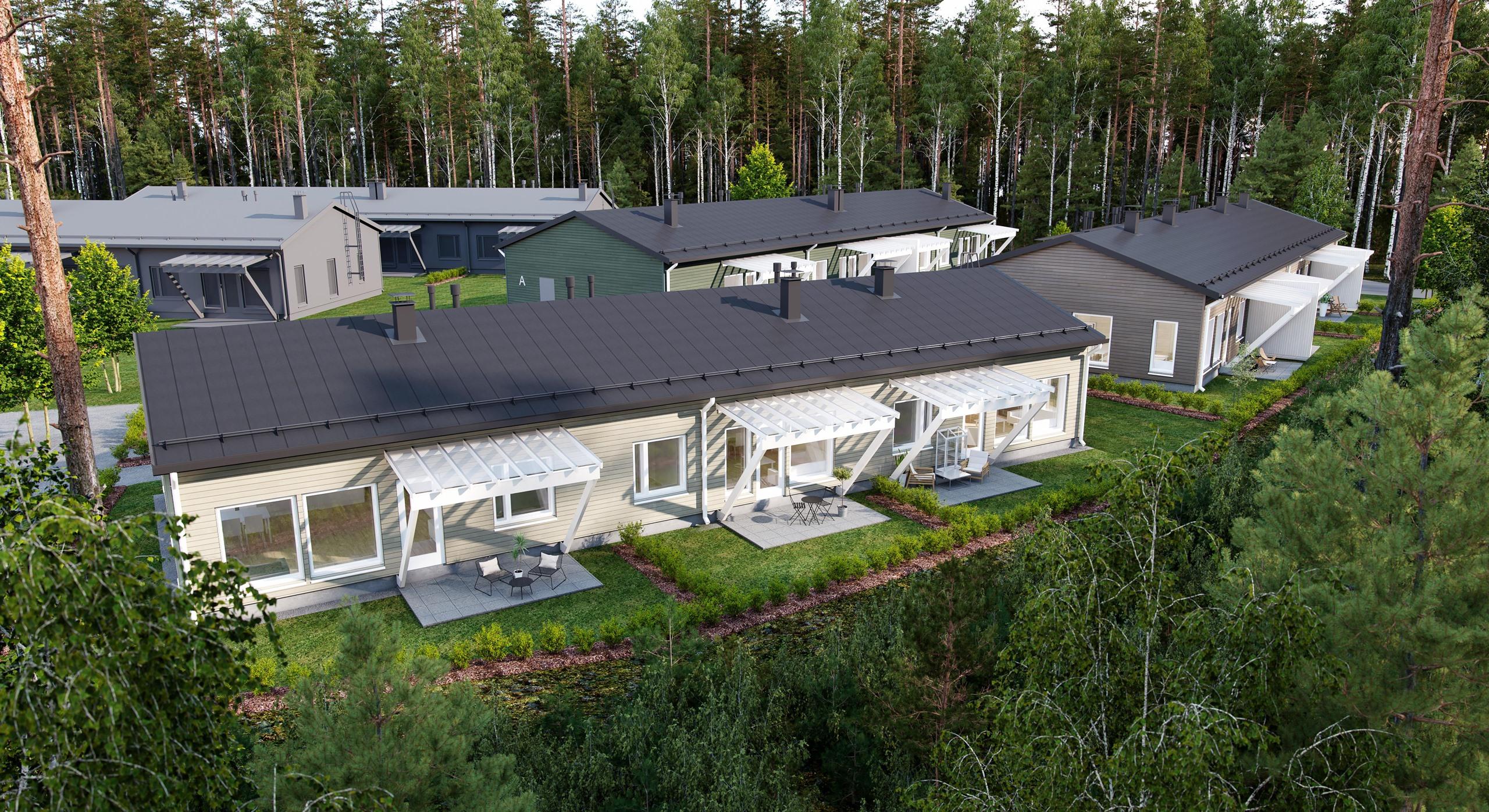 - Puu. Perustukset toteutetaan betonirakenteisina. Alapohja on maanvarainen lämpöeristetty teräsbetonilaatta. Huoneistojen väliset seinät ovat äänieristettyjä puurunkoisia kipsilevyseiniä. Rakennusten ulkoseinät ovat puurakenteisia ja lämmöneristettyjä. Julkisivut ovat puuverhottuja. Yläpohja on puurakenteinen ja puhallusvillaeristetty.
