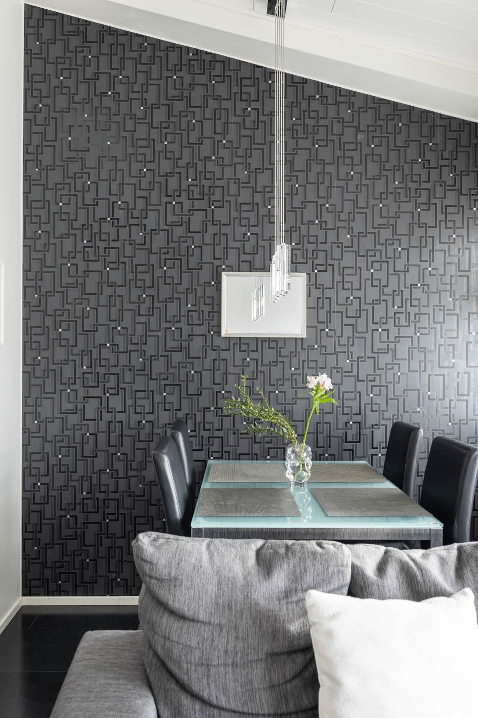 Keittiö: Laminaattilattia, seinät maalattu. Olohuone: Laminaattilattia, seinät maalattu ja tapetoitu. Makuutilat ja varastotilat parvella: Laminaattilattia, seinät maalattu. Kodinhoitohuone: Laattalattia, seinät maalattu. Sauna: Laattalattia, seinät paneloitu. Kylpyhuone: Laattalattia ja -seinät. Eteinen: Laminaattilattia, seinät maalattu.
