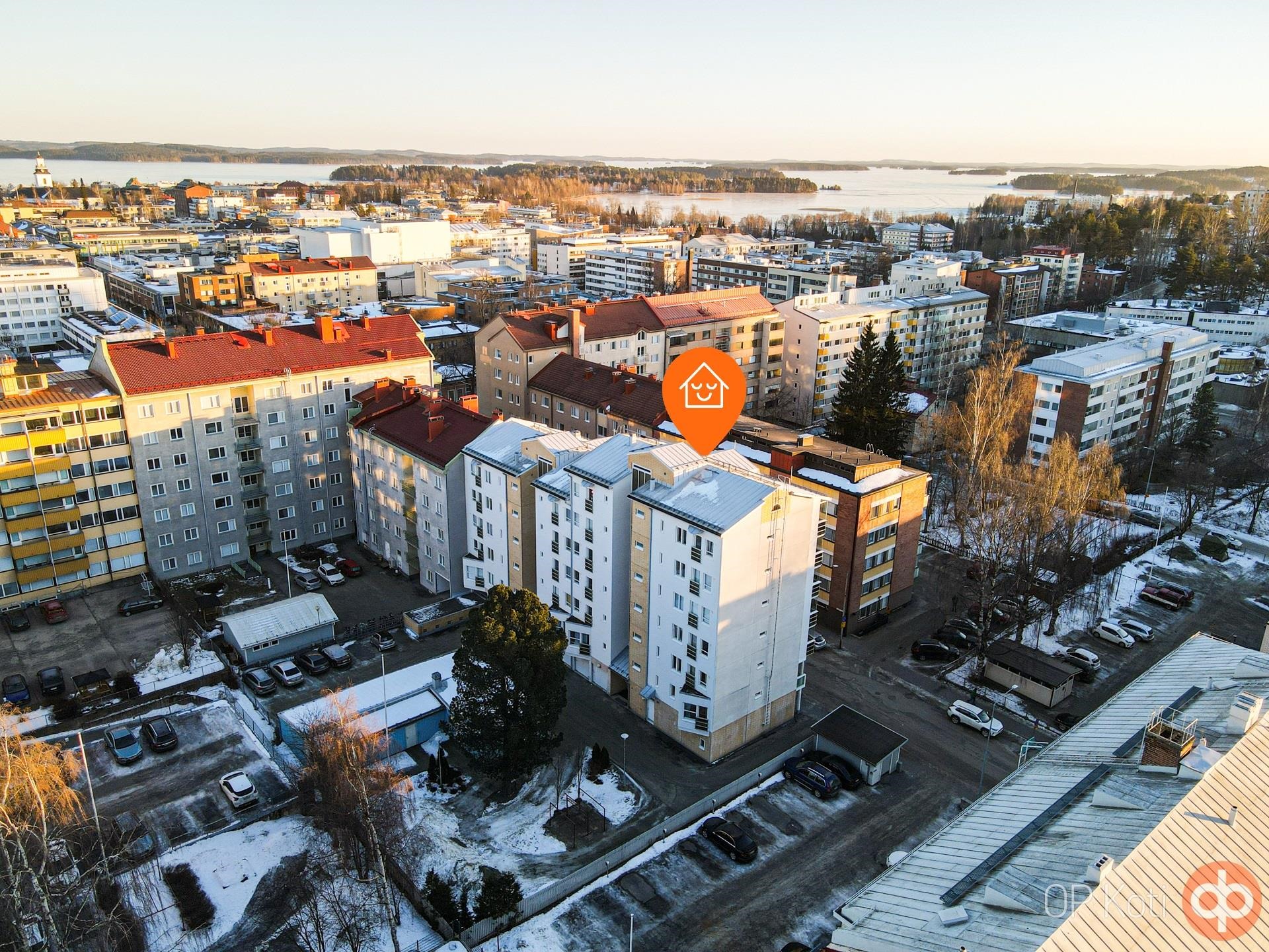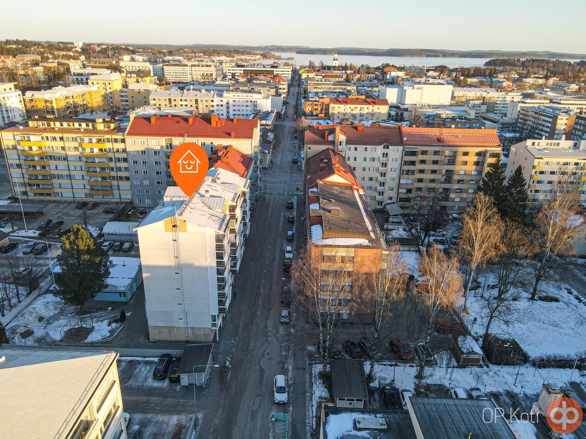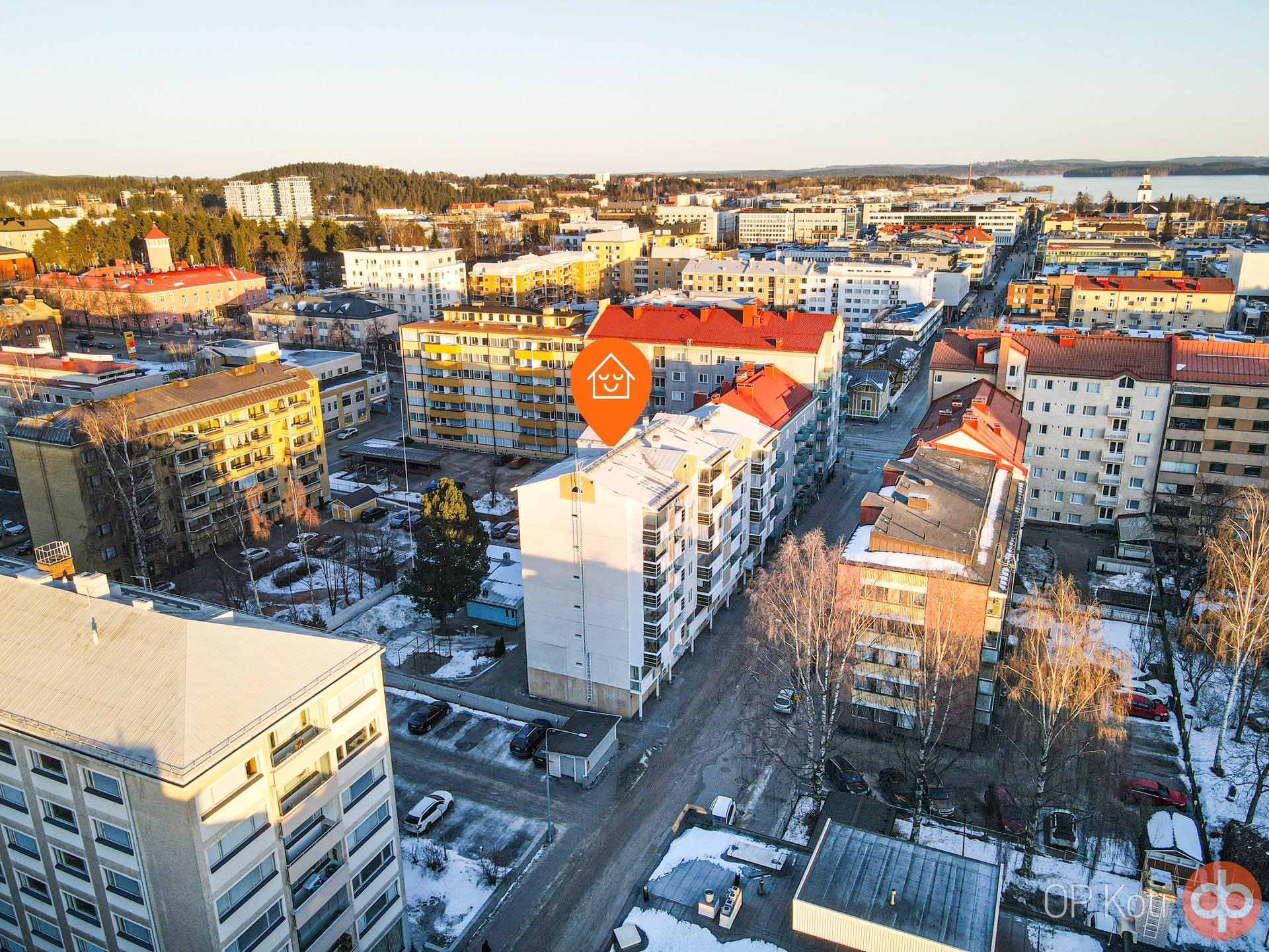 Taloyhtiö sijaitsee loistavalla paikalla Kauppakadulla, lähellä Valkeisenlampea ja kivenheiton päässä torin palveluista. Viereisessä talossa on italialainen ravintola ja pieni lähikauppakin vain 100 metrin päässä.