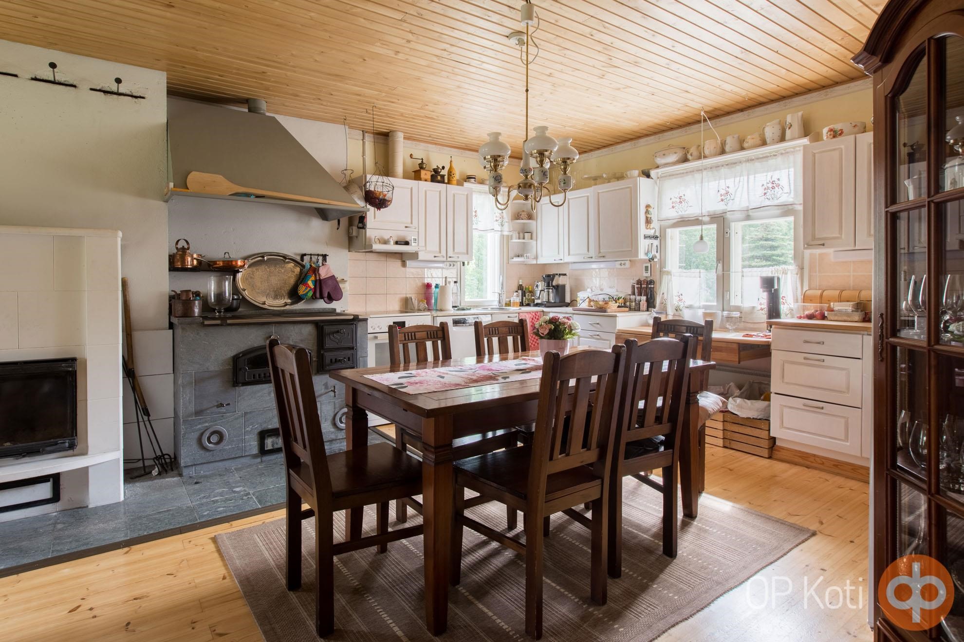 - Jääkaappi keittiössä ja alakerrassa, keraaminen liesi, liesituuletin Huippuimurilla, leivinuuni Puuhellassa, astianpesukone, kaapistot, kiinteät valaisimet Uusittu 2024. Arkkupakastin 2x Alakerrassa
