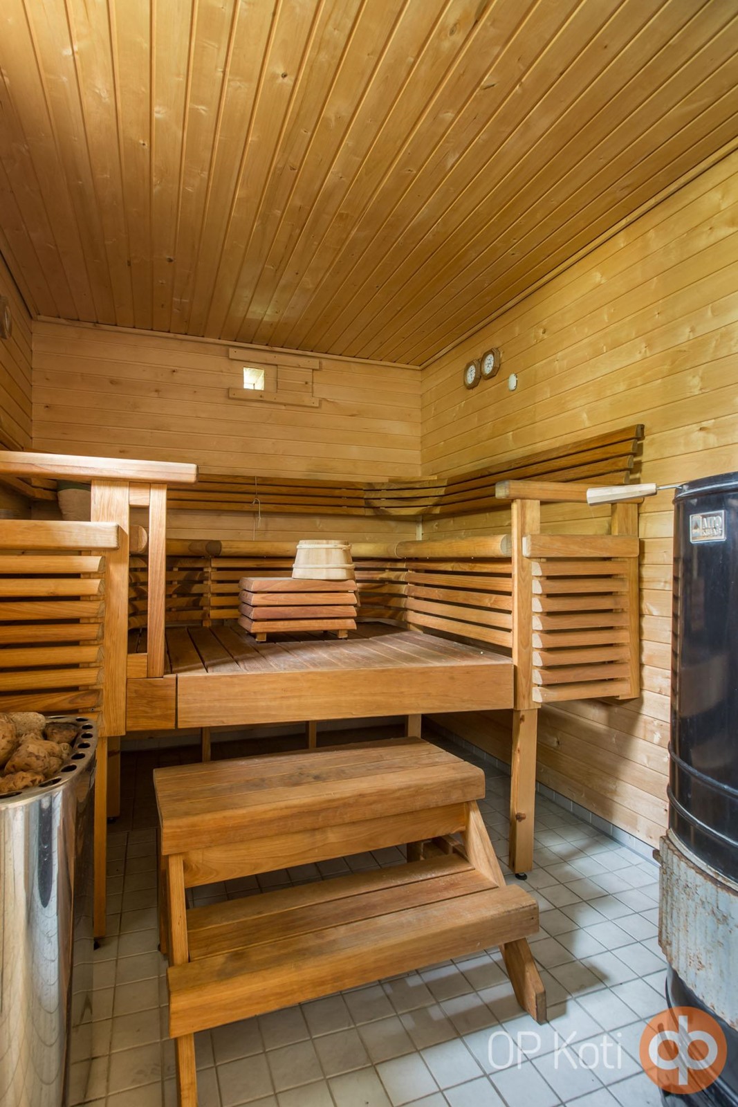 - Sauna Saunarakennuksessa, puukiuas, kylpyhuone Päärakenuksessa ja saunarakenuksessa, erillinen wc Päärakennuksen yläkerrassa, suihku Päärakenuksessa, peilikaappi Yläkerran erillinen wc, allaskaappi Yläkerran erillinen wc, pesukoneliitäntä Kodinhoitohuoneessa, lattialämmitys Kodinhoitohuoneessa, pesuhuoneessa, takkahuoneessa, viherhuoneessa ja saunarakennuksessa kaikissa huoneissa, kiinteät valaisimet. Aitokiuas