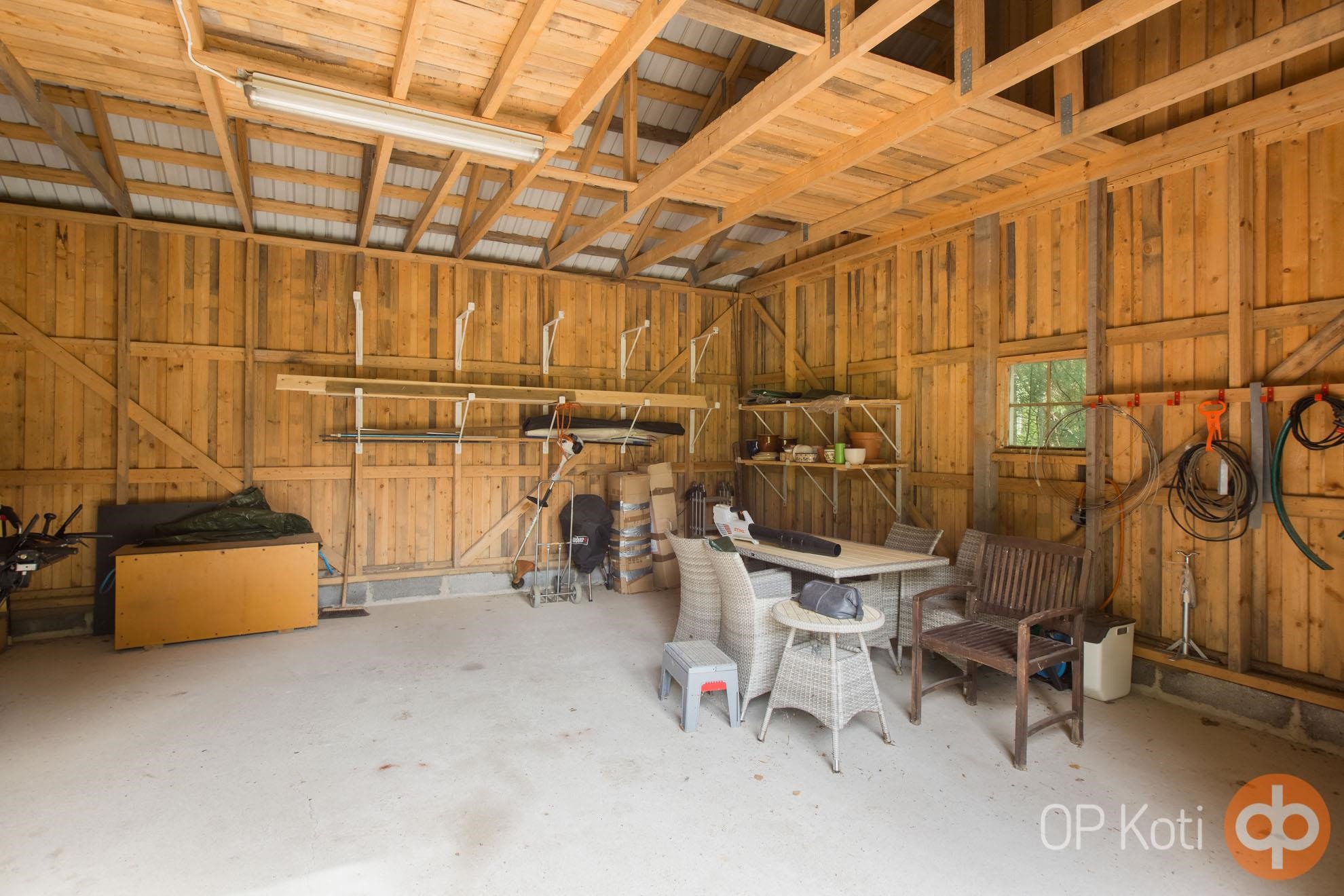 Päärakennuksen lisäksi voit nauttia pitkistä kesäilloista omassa grillibistrossasi, joka on rakennettu vanhaan navettaan. Tämä tila tarjoaa ainutlaatuisen ympäristön ajanviettoon. Vieraille on oma mökki, jossa on ruuanlaittomahdollisuudet ja poltto wc, mikä takaa mukavan vierailun. Pihapiirissä on myös erillinen saunarakennus tuvalla, jossa lattialämmitys tuo lisämukavuutta saunomiseen. Lisäksi löydät kiinteistöltä kalustovajan, puuliiterin, autotallin ja useamman auton autokatoksen. Tilaa riittää kaikille tarpeillesi, olipa kyseessä sitten harrastusvälineet tai autojen säilytys.