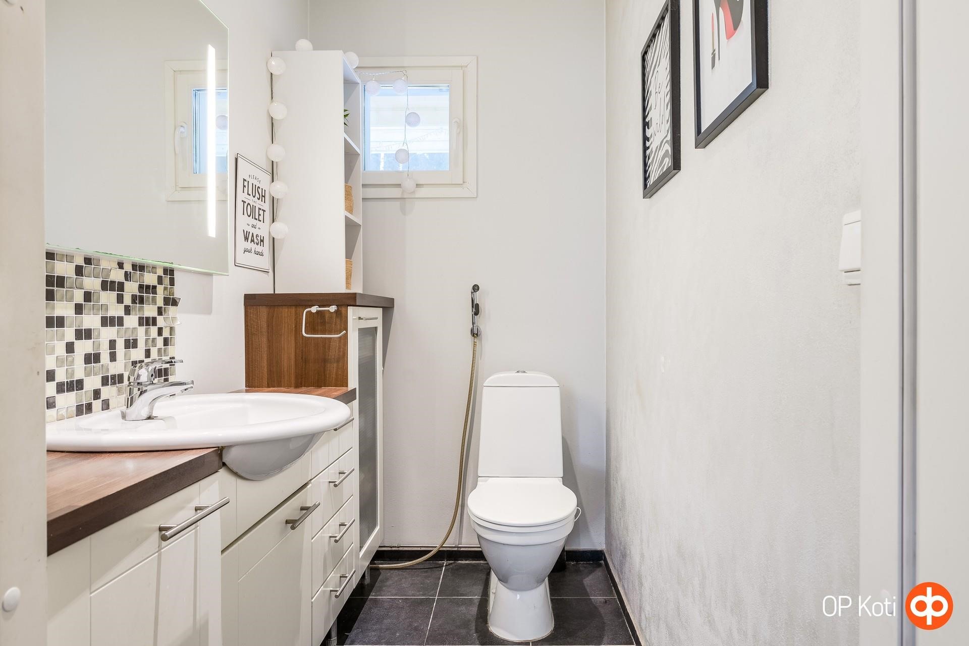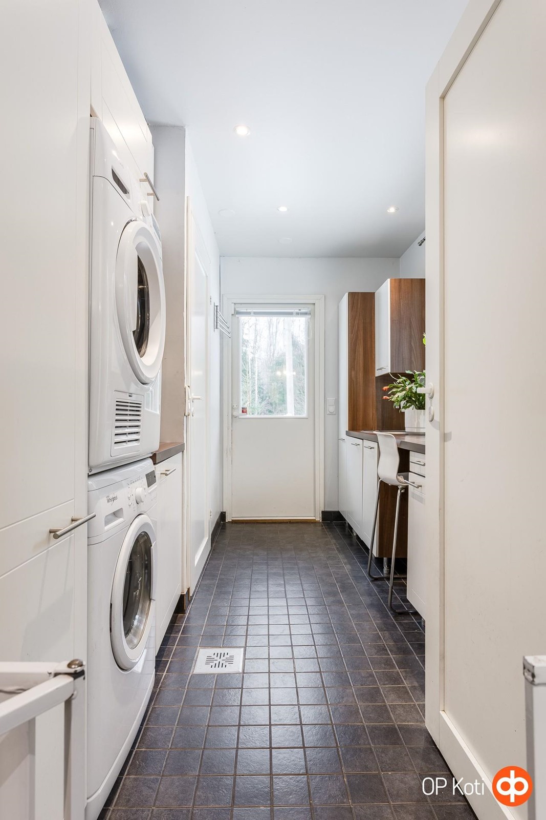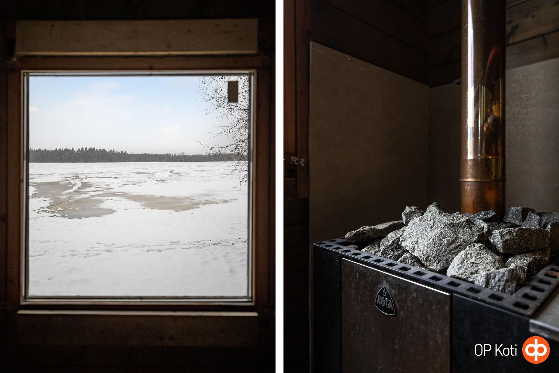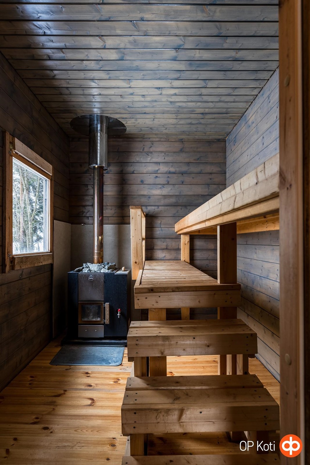 - Sauna sisäsauna ja rantasauna, sähkökiuas (sisäsaunassa), puukiuas (rantasaunassa), kylpyhuone, erillinen wc, suihku (2 kpl), peilit (valopeili), kaapit, allaskaappi, pesukoneliitäntä (khh:ssa), lattialämmitys.