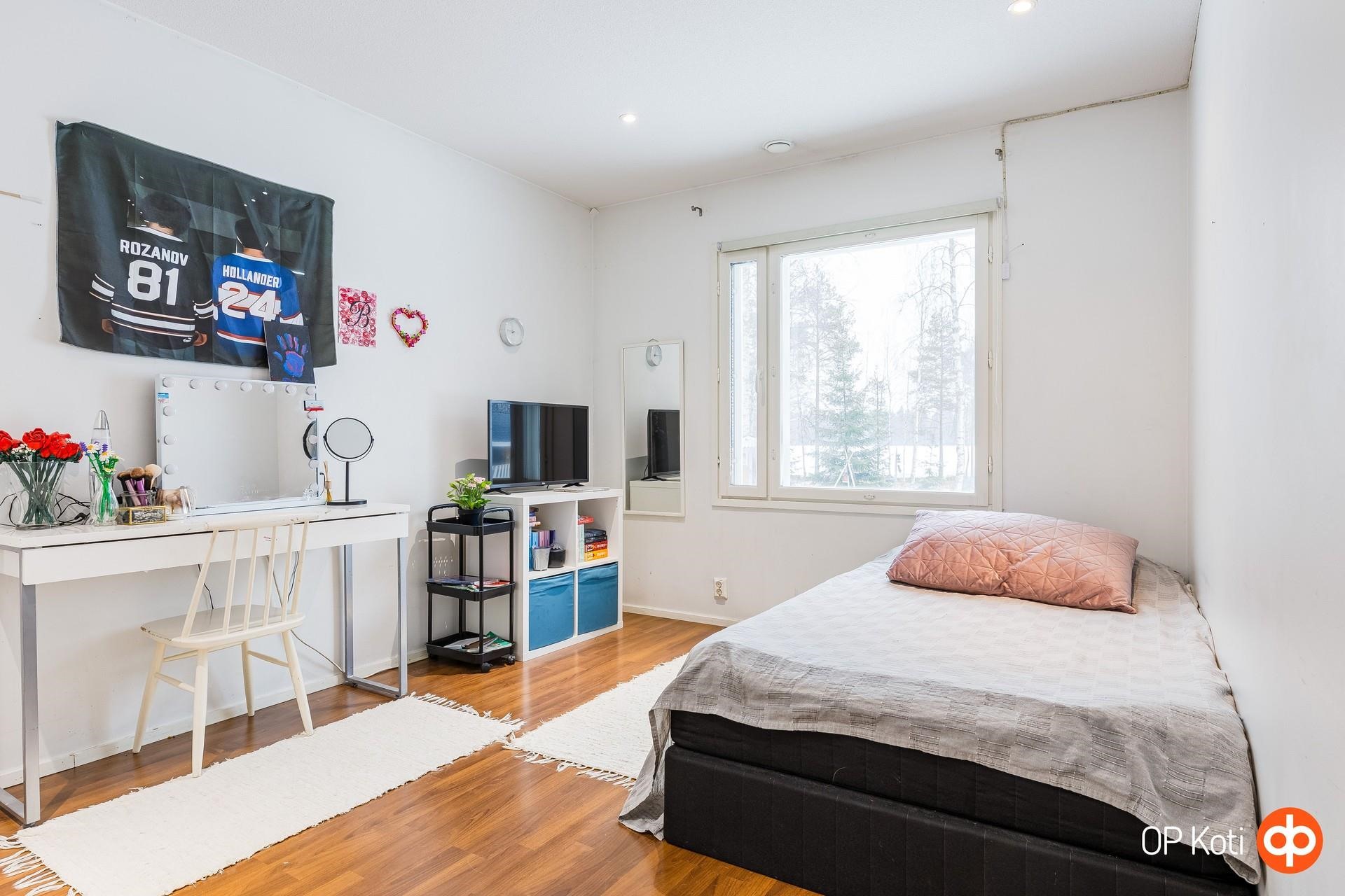 Keittiö: Laatta/seinät maalattu. Olohuone: Laminaatti/seinät maalattu, osa tapetoitu. Makuuhuone 1: Laminaatti/seinät maalattu. Makuuhuone 2: Laminaatti/seinät maalattu. Makuuhuone 3: Laminaatti/seinät maalattu. Kodinhoitohuone: Laattalattia/seinät maalattu. Sauna: Laatta/seinät paneloitu. Kylpyhuone: Laatta/kaakeli. Eteinen: Laatta/maalattu. Wc: Laatta/seinät maalattu.