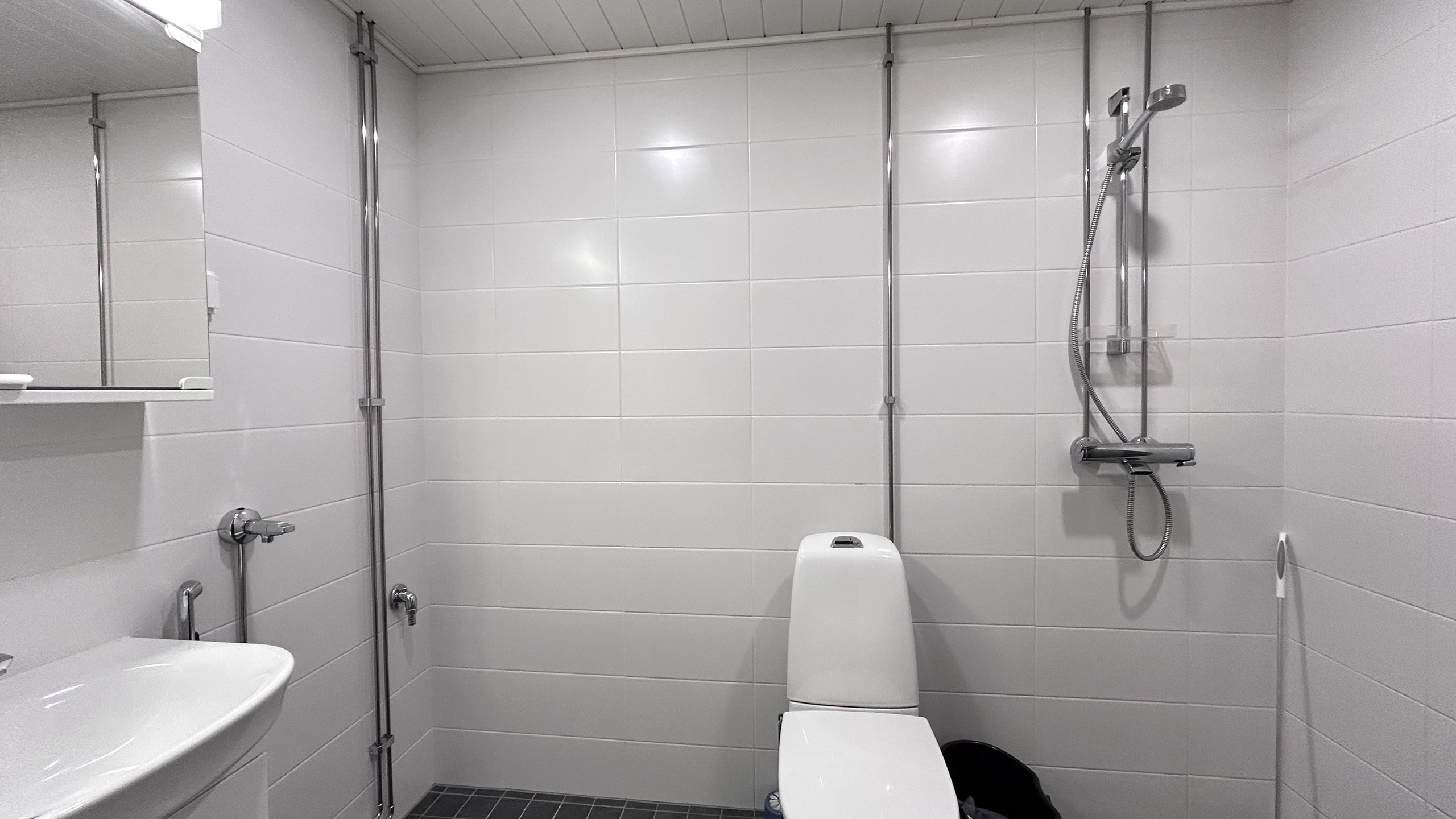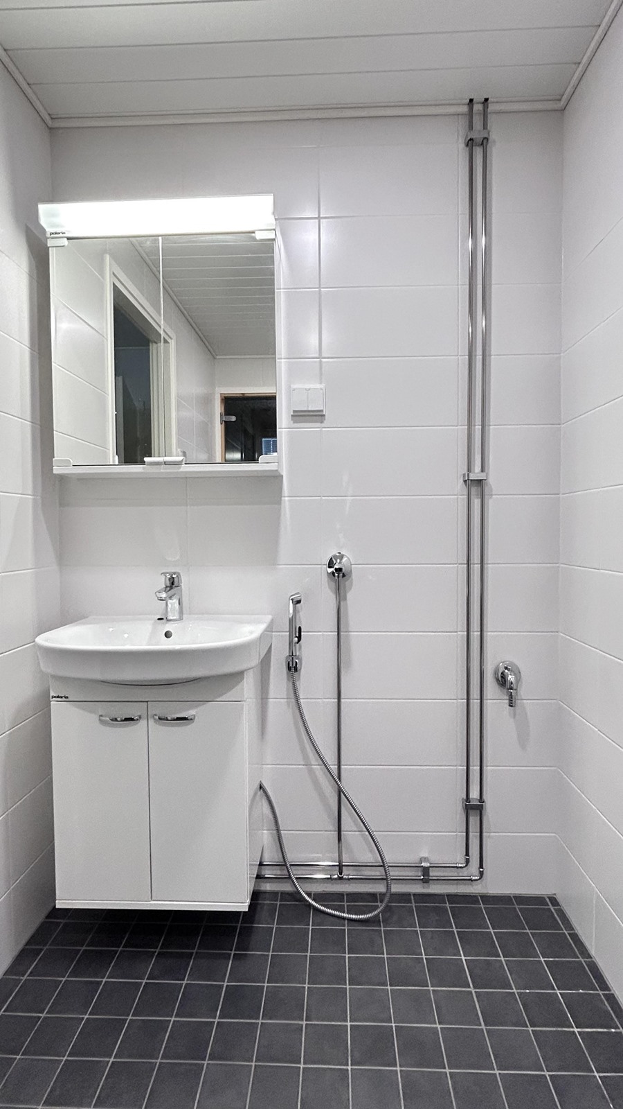 - Sauna, sähkökiuas, suihku, peilikaappi, allaskaappi, pesukoneliitäntä, lattialämmitys. Kylpyhuone remontoitu 2025