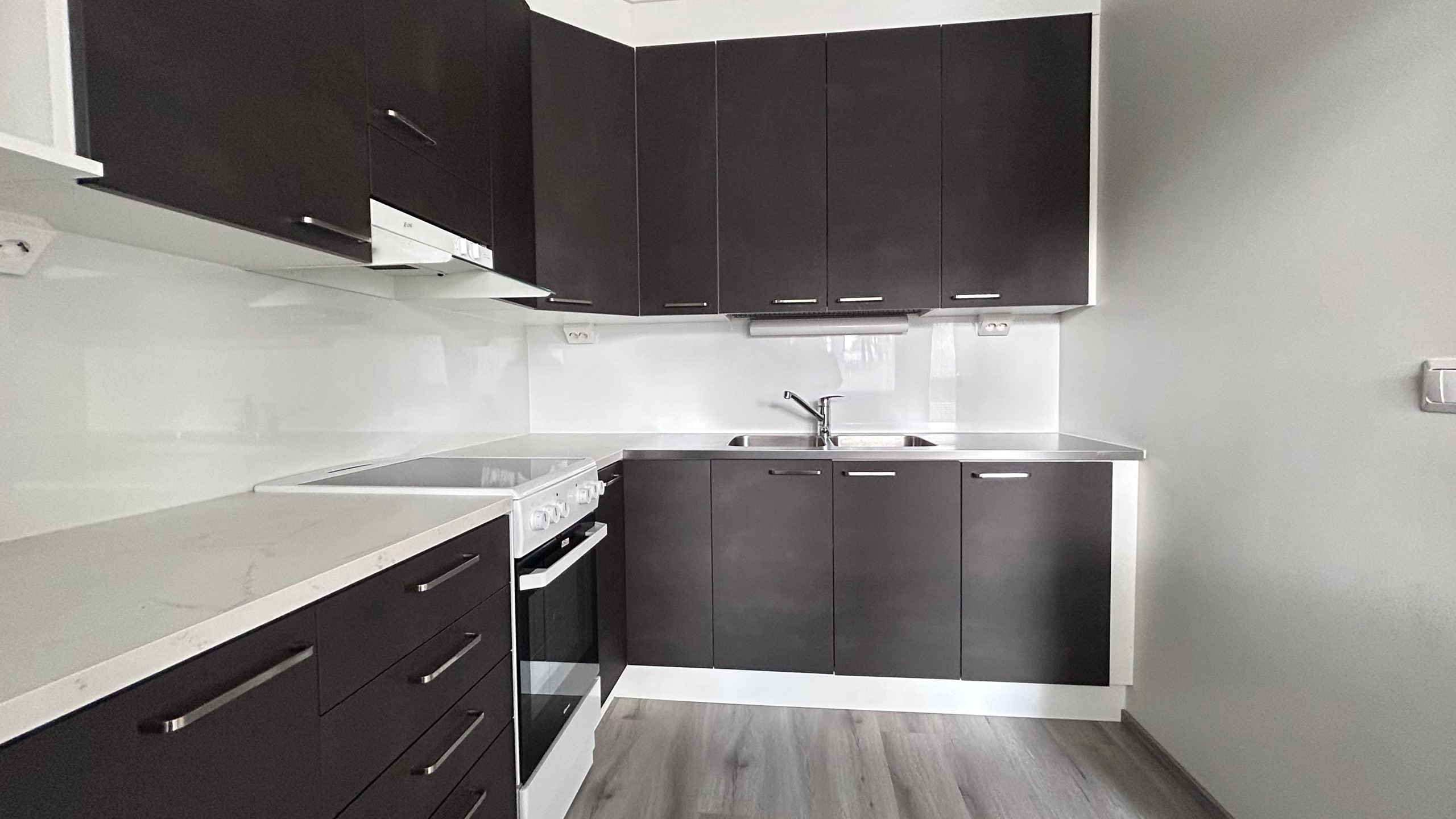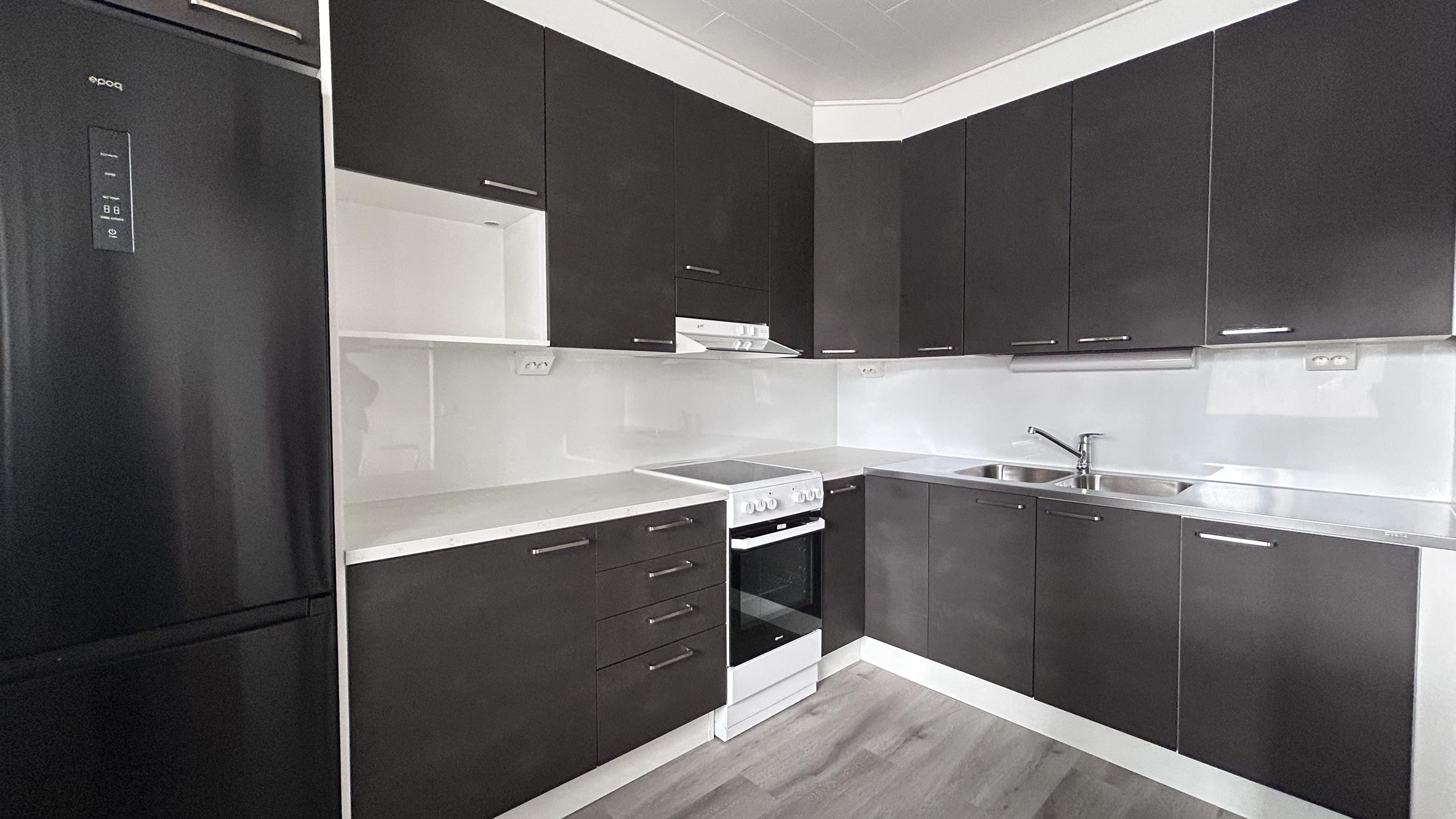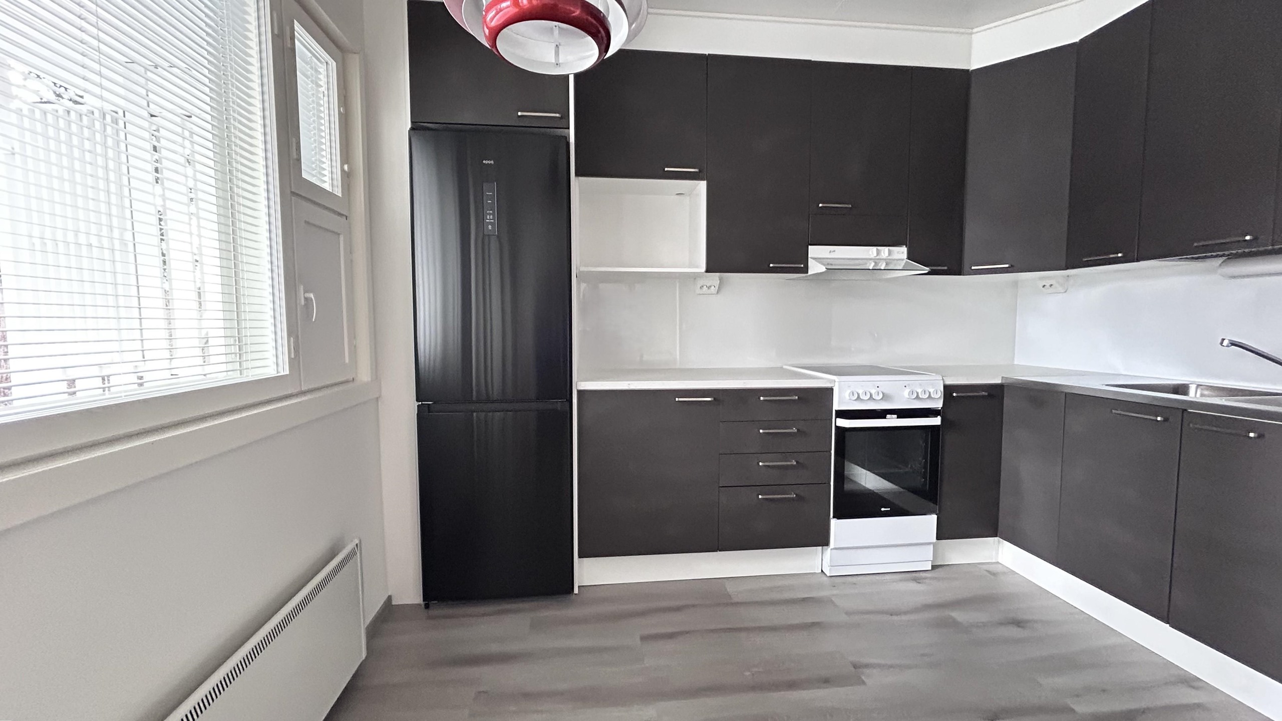 - Jääkaappipakastin, lattialiesi, keraaminen liesi, astianpesukone, kaapistot, keittiö remontoitu 2025.