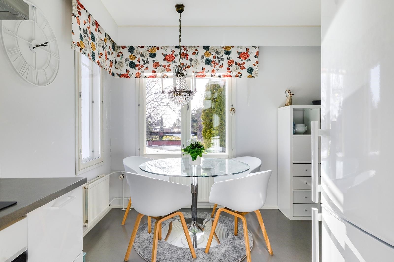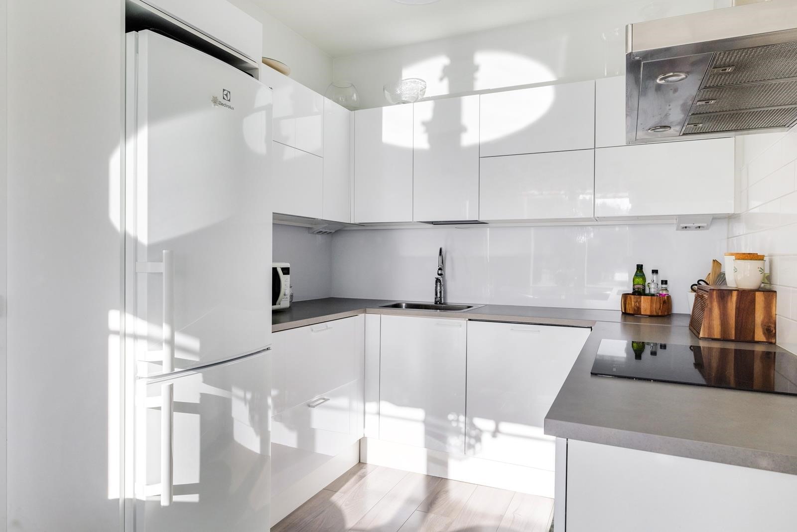 - Jääkaappipakastin, erillisuuni, induktioliesi, liesituuletin, astianpesukone integroitu. Keittiö uusittu vuonna 2016
